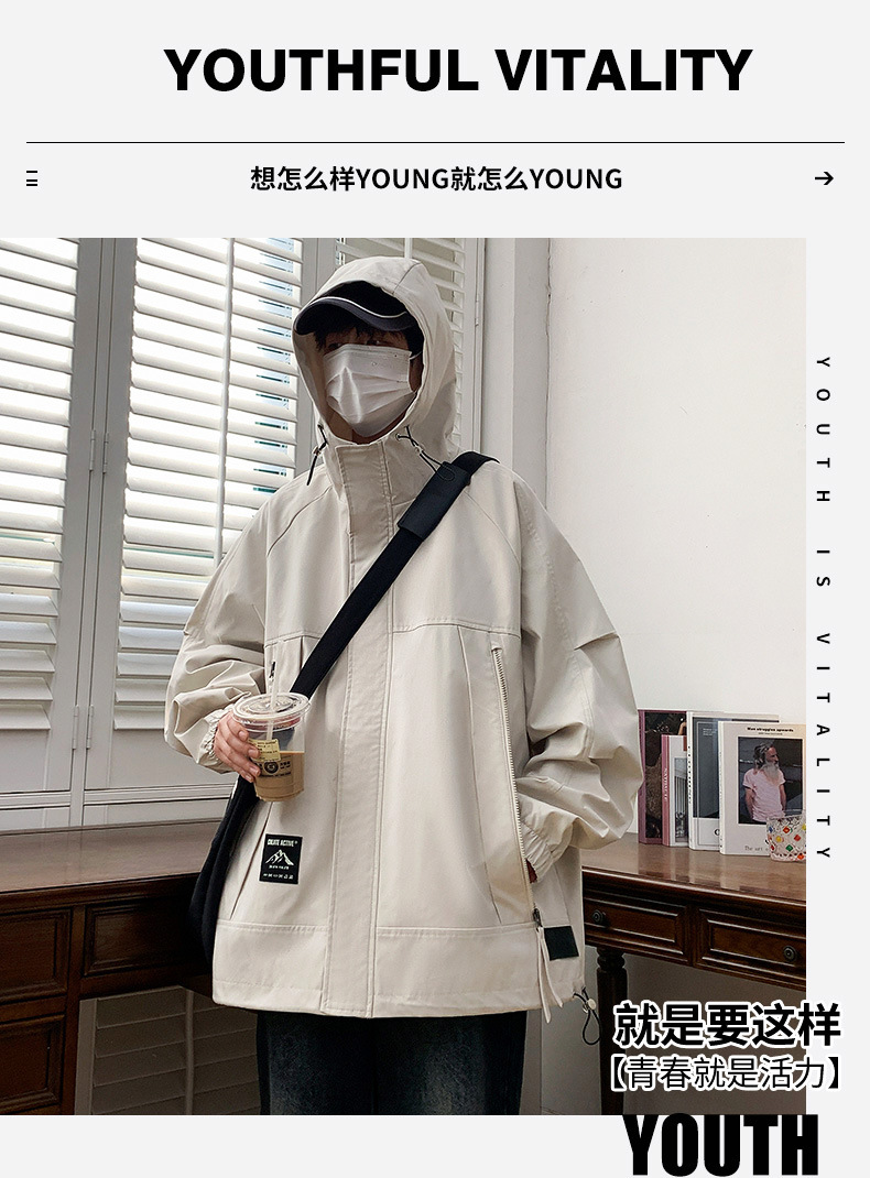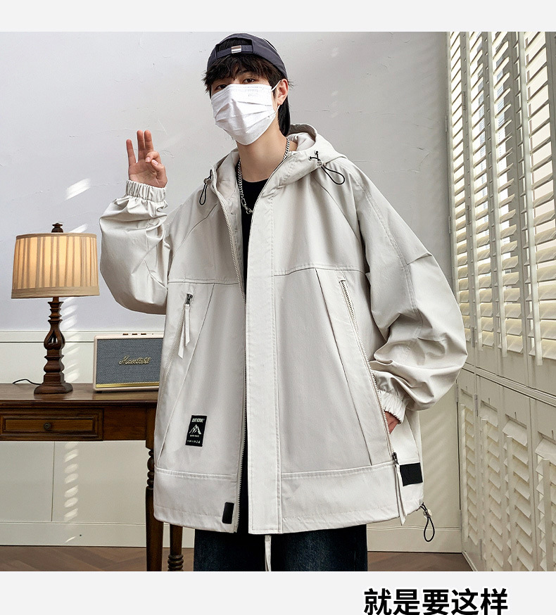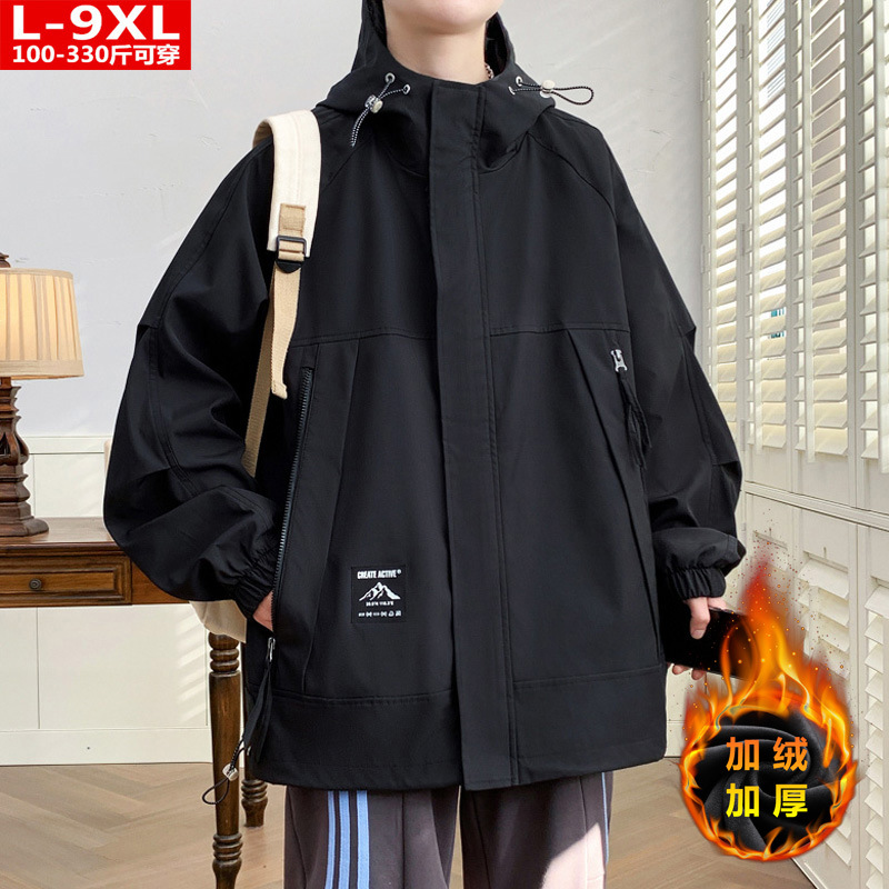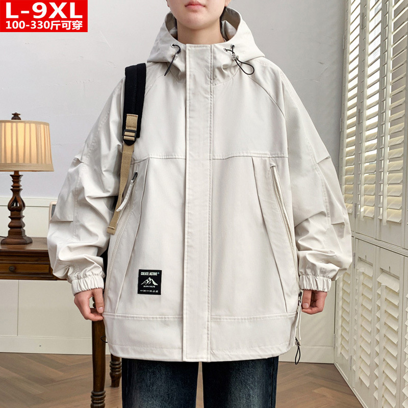 봄과 가을 트렌디 한 품질의 남성용 잘 생긴 올 매치 후드 재킷 뚱뚱한 남자 플러스 사이즈 플러스 사이즈 느슨한 캐주얼 재킷