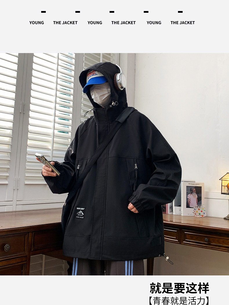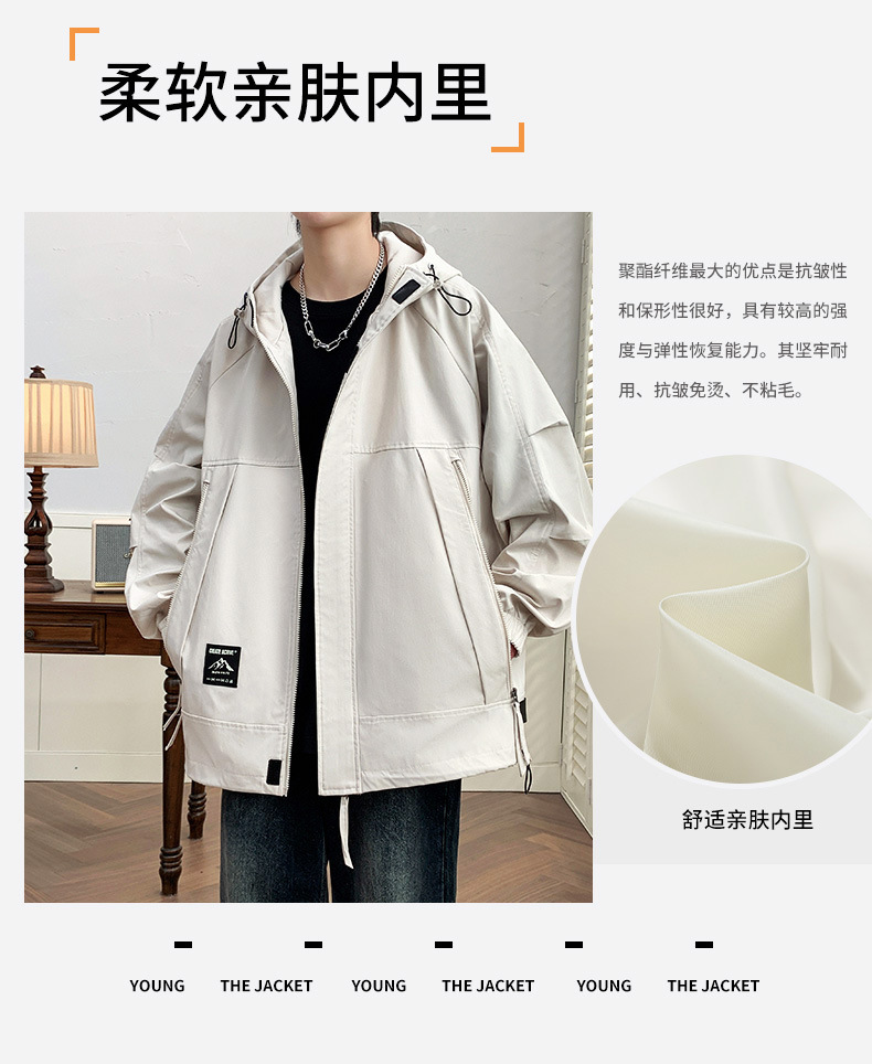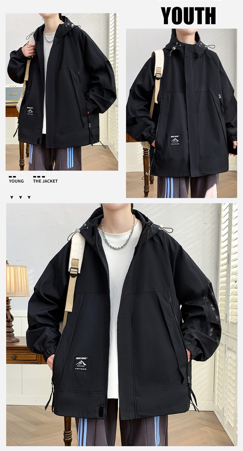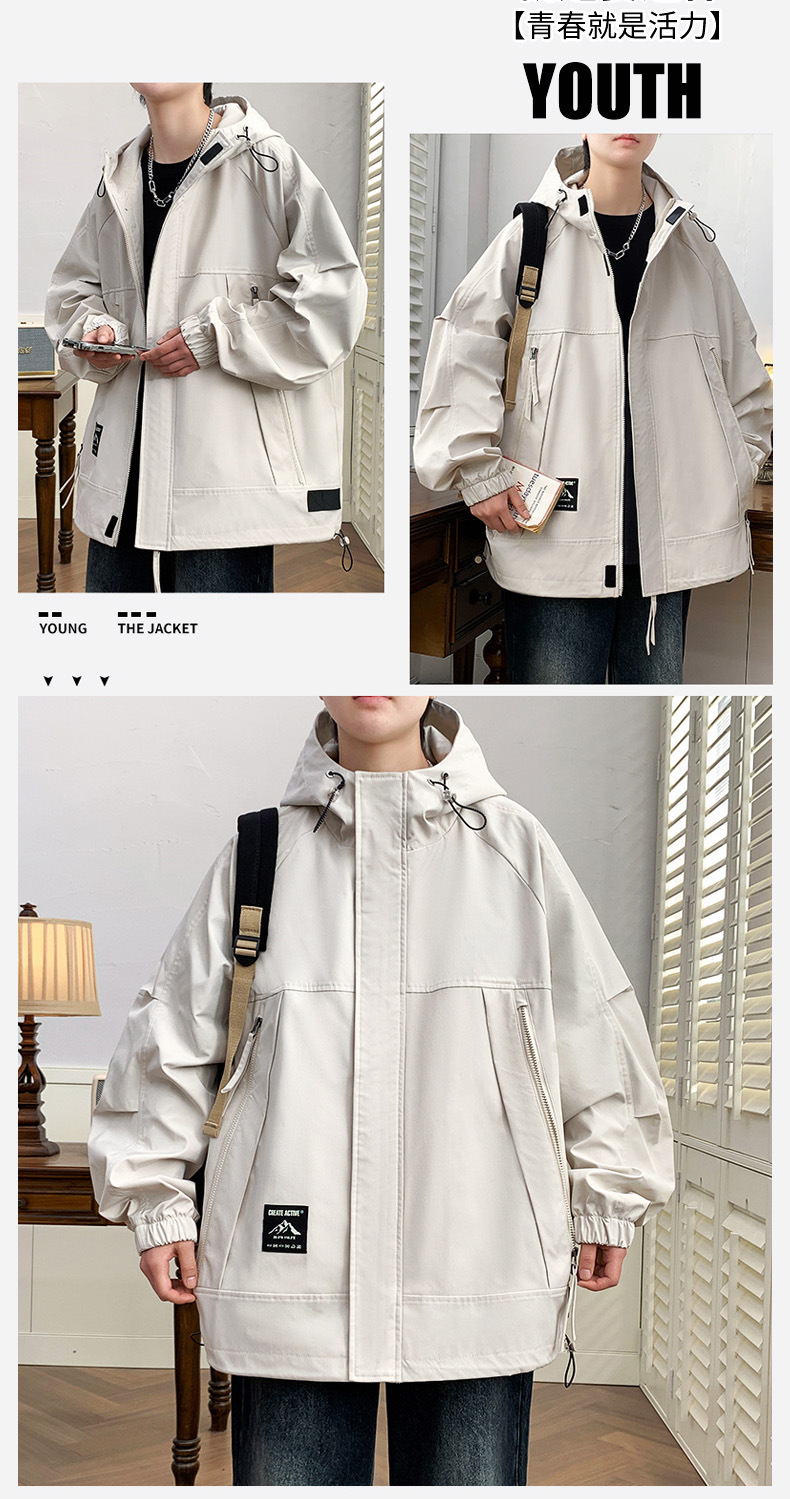 봄과 가을 트렌디 한 품질의 남성용 잘 생긴 올 매치 후드 재킷 뚱뚱한 남자 플러스 사이즈 플러스 사이즈 느슨한 캐주얼 재킷