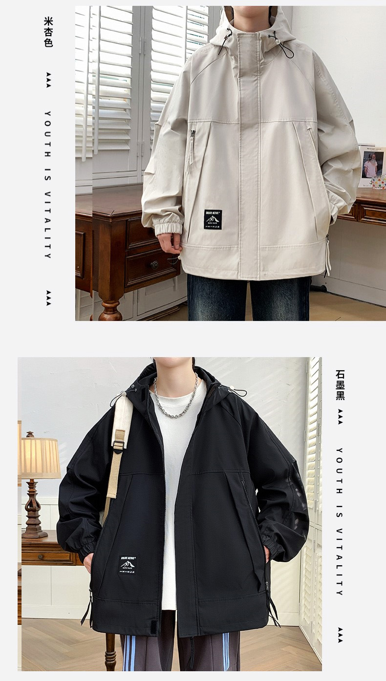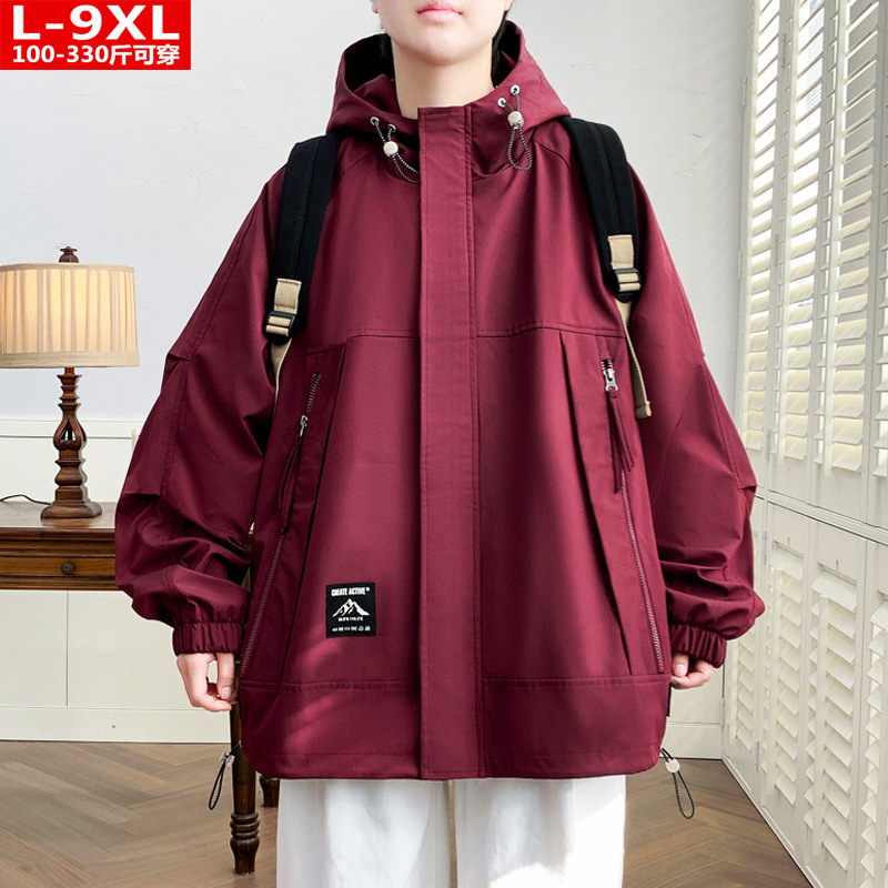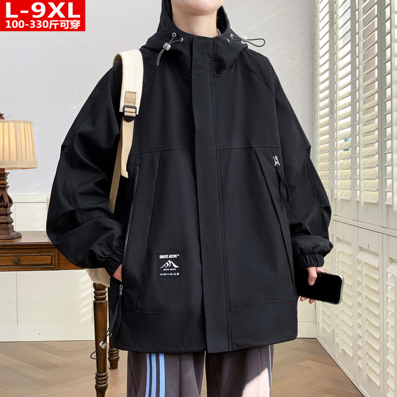 봄과 가을 트렌디 한 품질의 남성용 잘 생긴 올 매치 후드 재킷 뚱뚱한 남자 플러스 사이즈 플러스 사이즈 느슨한 캐주얼 재킷스토어 가기
