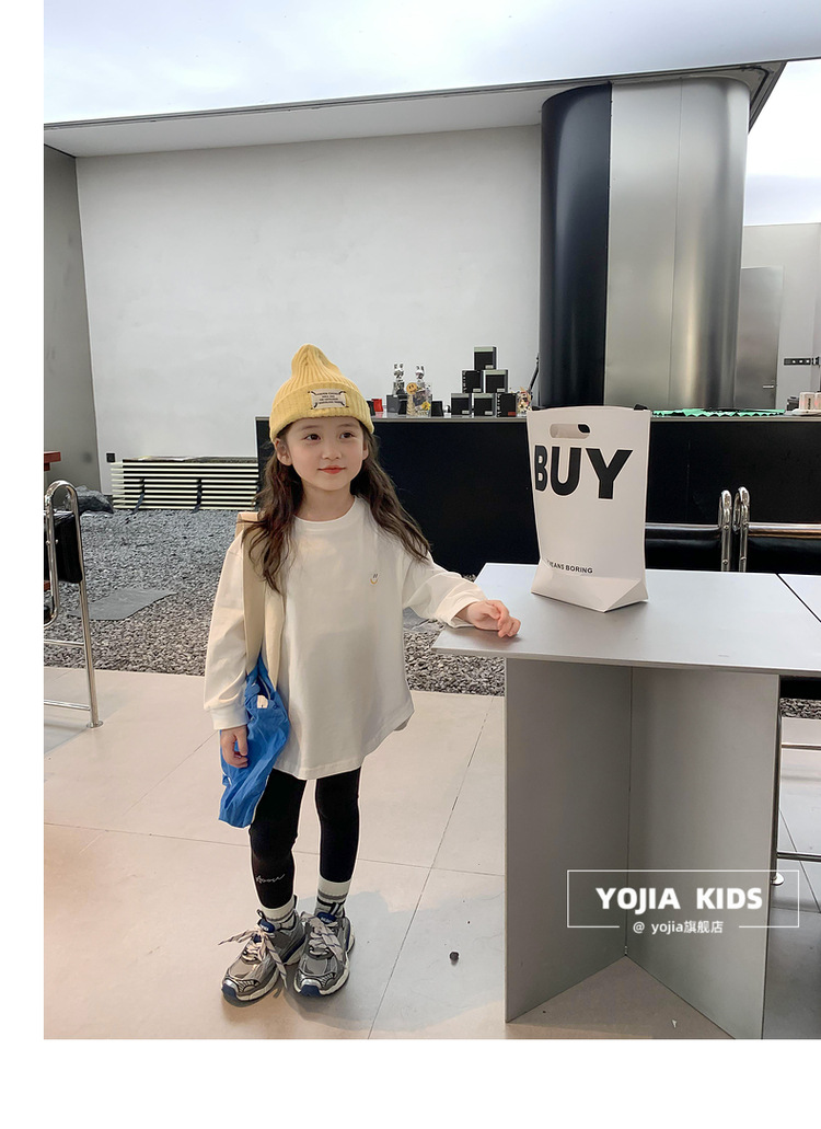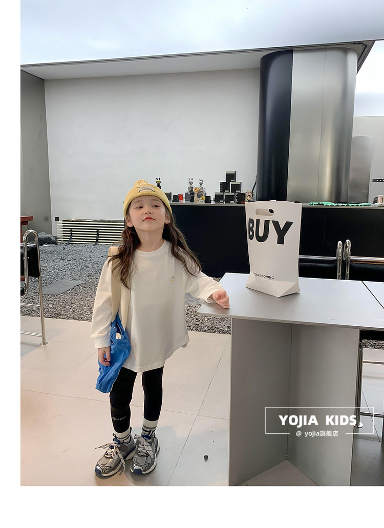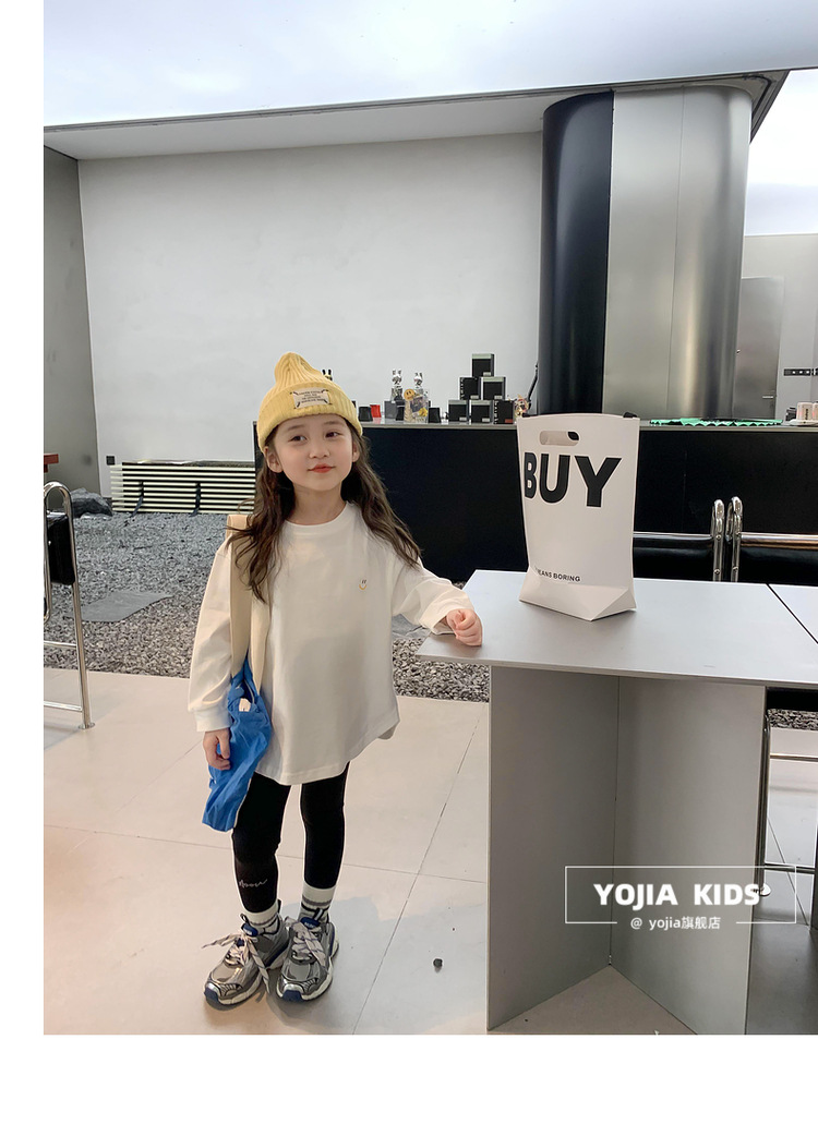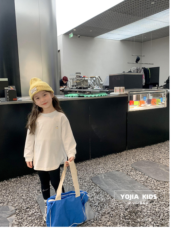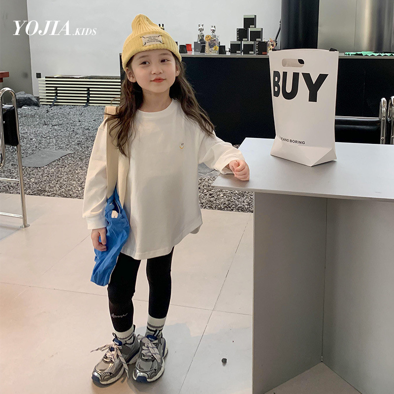 소녀 긴팔 티셔츠 봄과 가을 2023 새로운 스타일 서양식 느슨한 어린 소녀의 최고 가을 흰색 아동베이스 셔츠스토어 가기