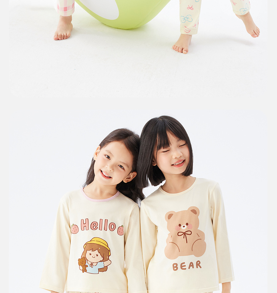 여자 잠옷 2025 새로운 순수 면화 속옷 세트 어린이 봄, 가을 긴팔 가정 의류 큰 어린이 가을 옷과 가을 바지스토어 가기
