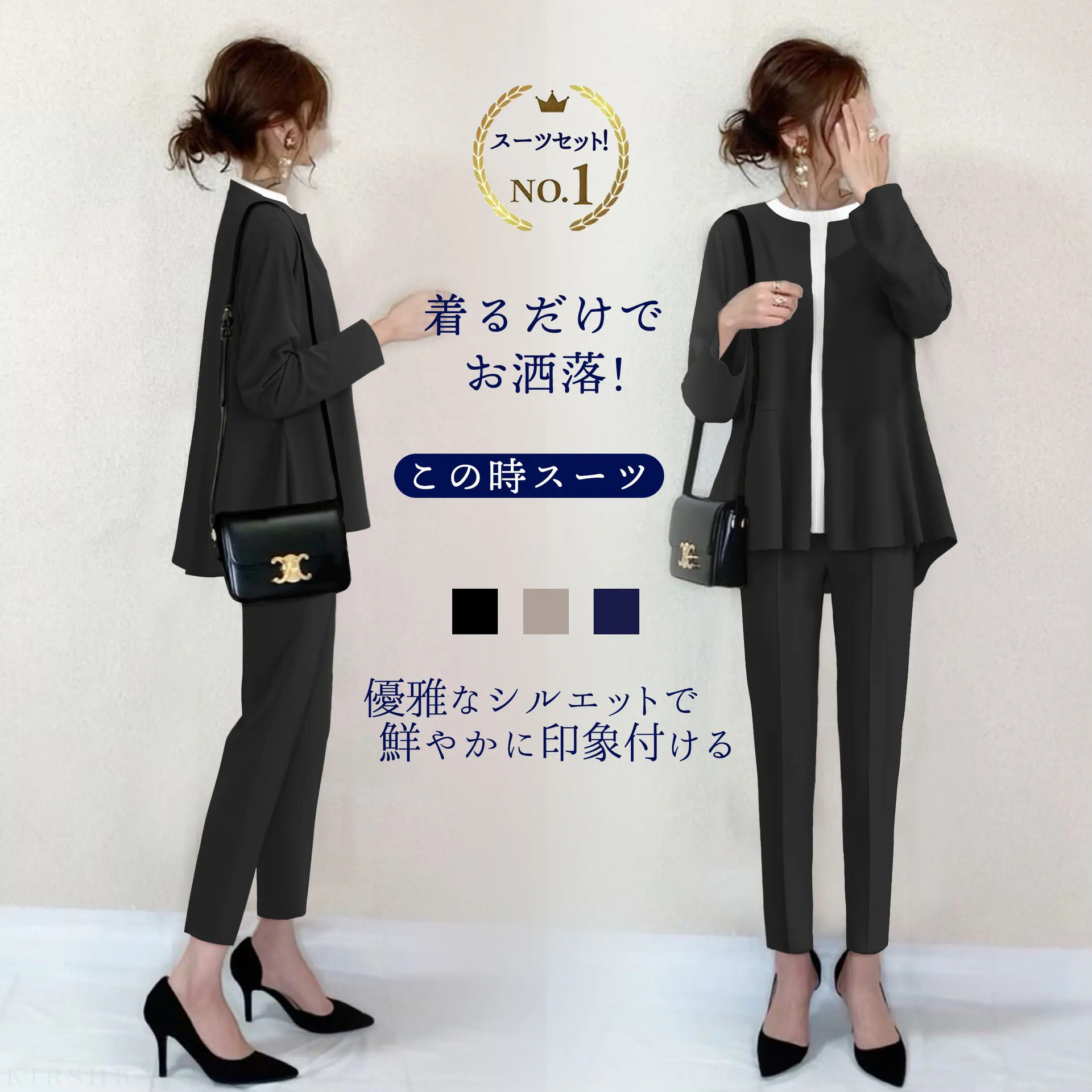 재고 있음 좋은 원단 2026 봄/여름 신상 여성복 일본식 라운드넥 밑단 배색 상의+긴바지 세트