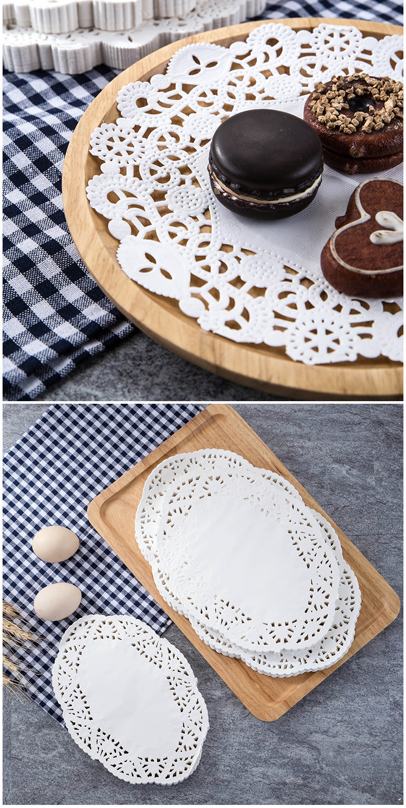 레이스 베이킹 종이 식품 등급 꽃 바닥 종이 둥근 타원형 꽃 종이 기름 흡수 종이 케이크 디저트 플레이트 종이