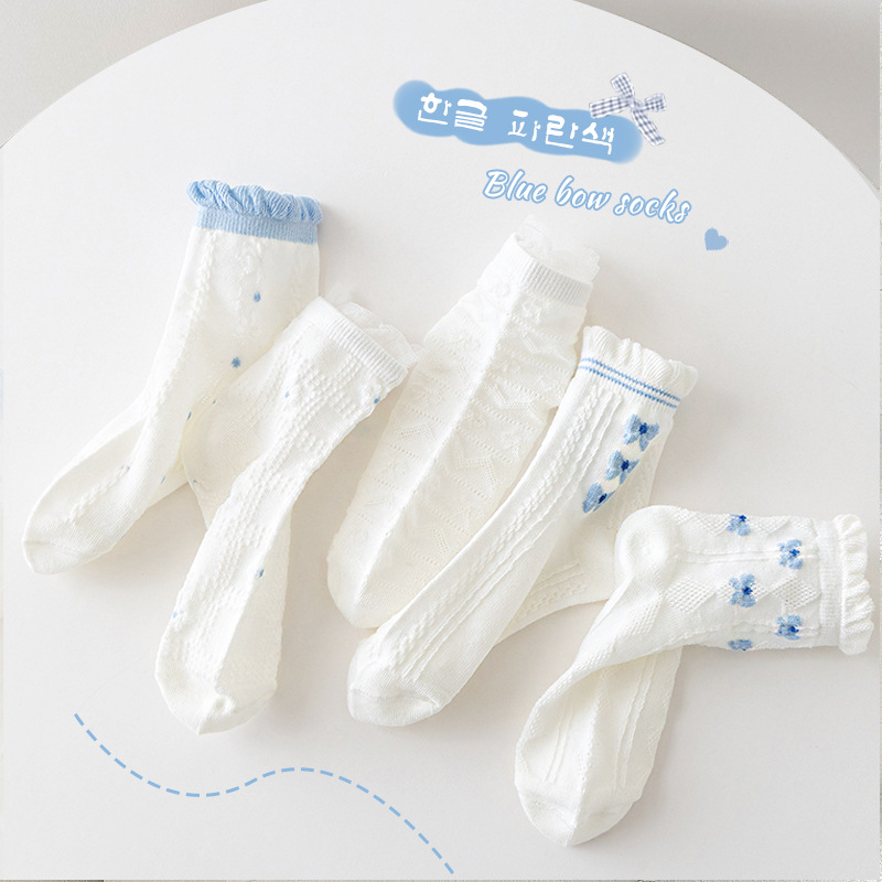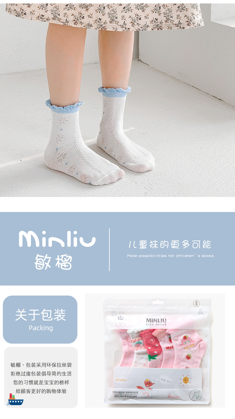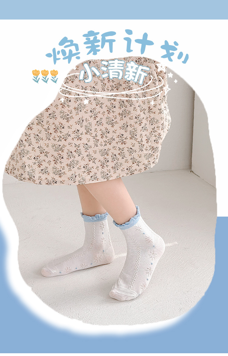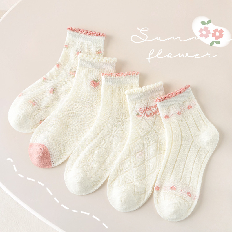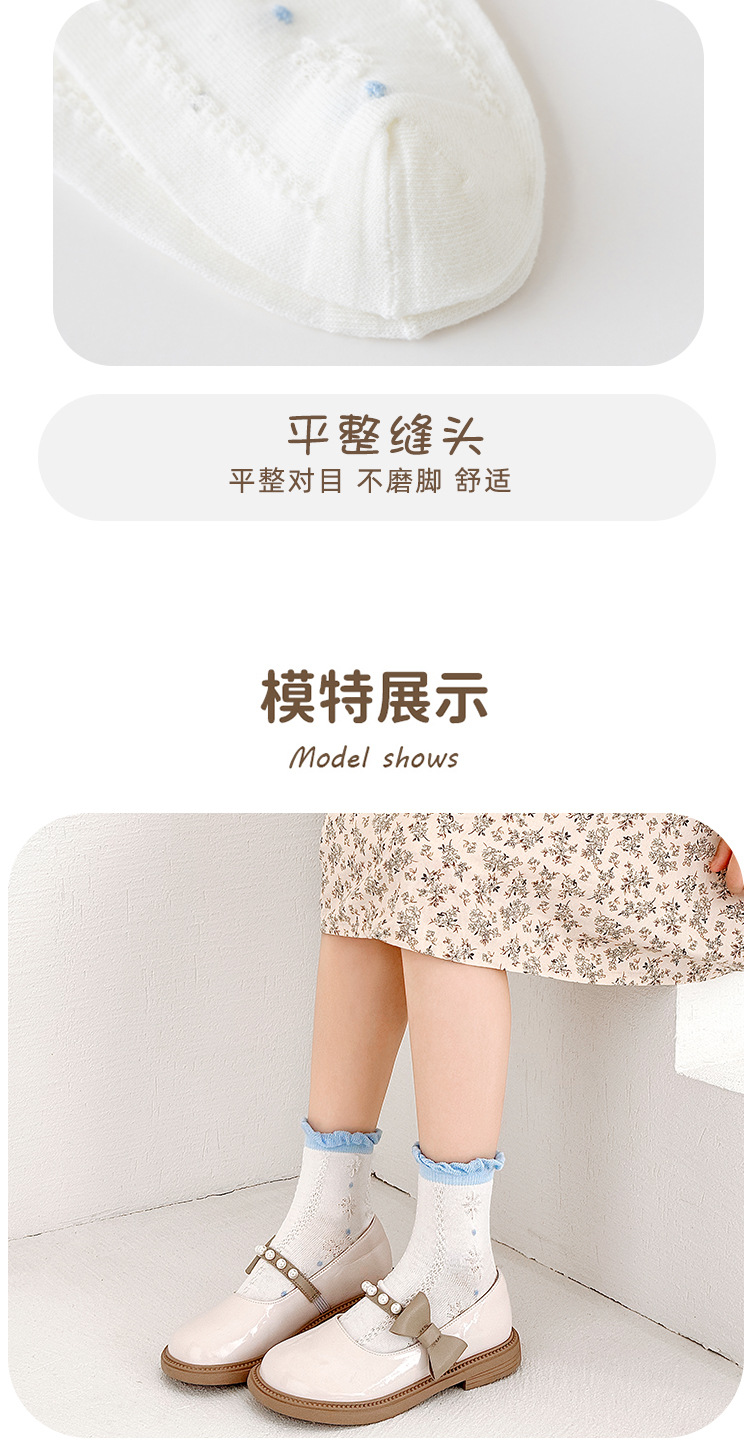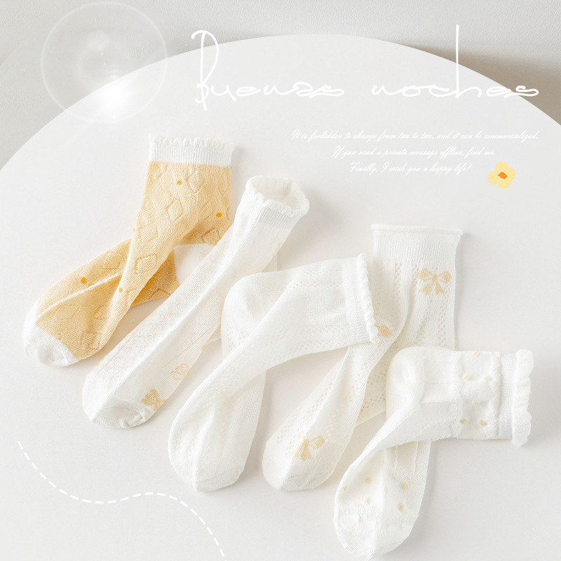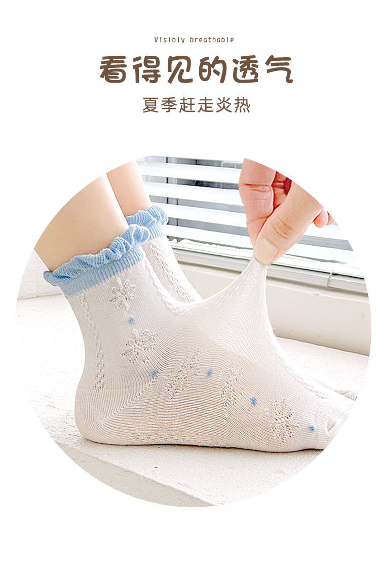 2024 여름 얇은 소녀 양말 메쉬 통기성 활 흰색 달콤한 미디어와 큰 어린이 공주 스타일 어린이 양말