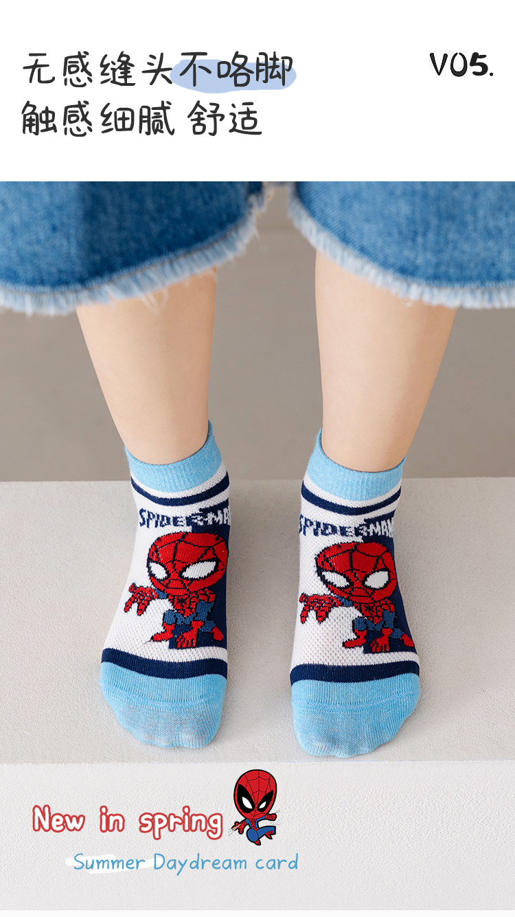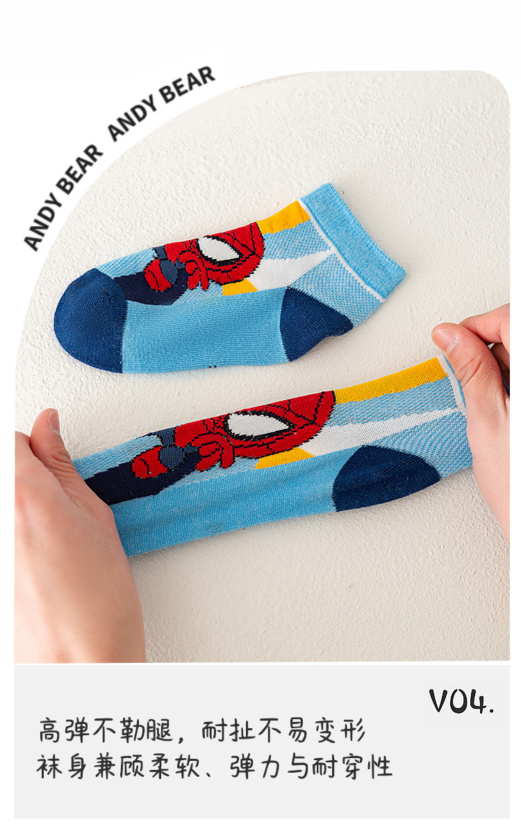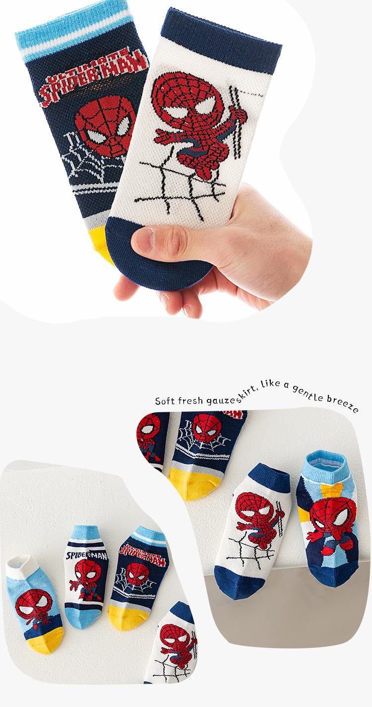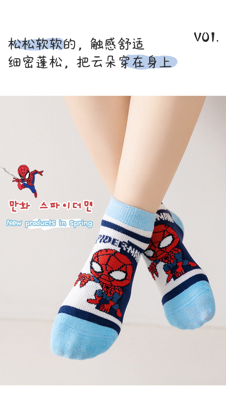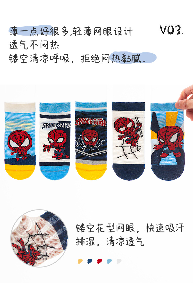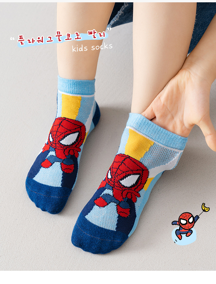 봄과 여름 새로운 어린이 양말 코튼 클래스 소년과 소녀 만화 스파이더 맨 1-12 세 메쉬 양말 공장 도매