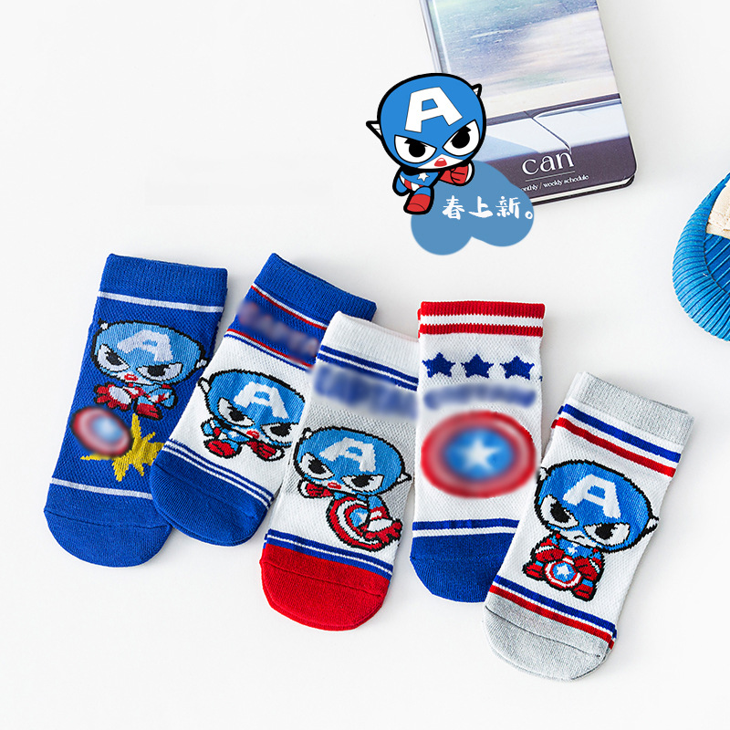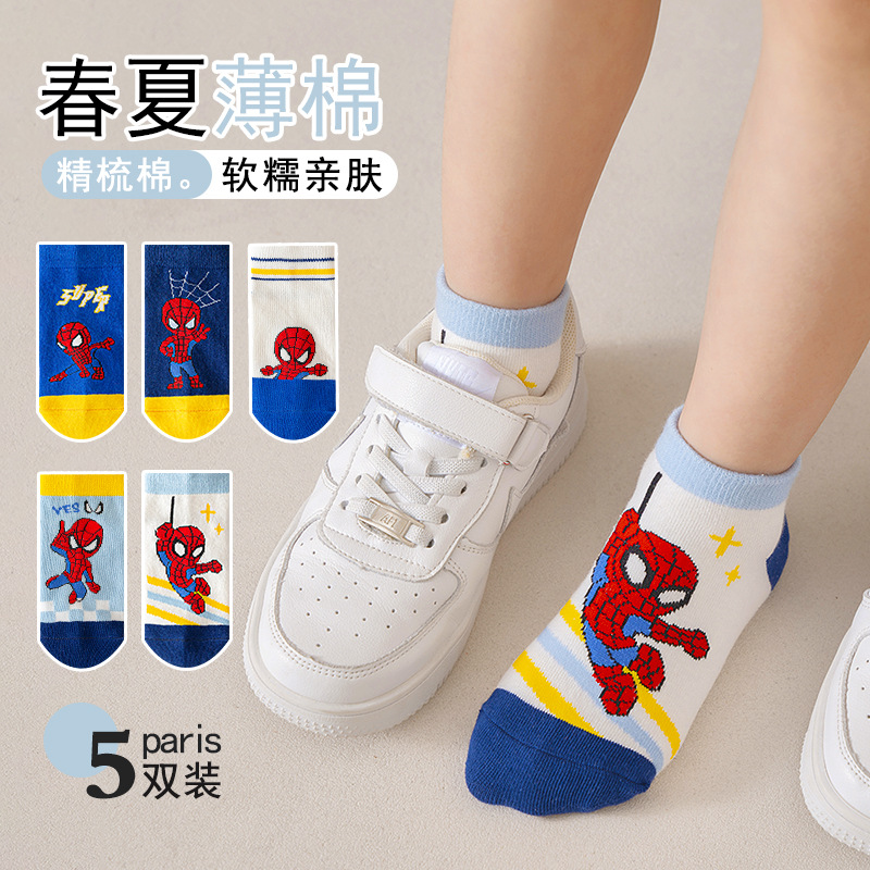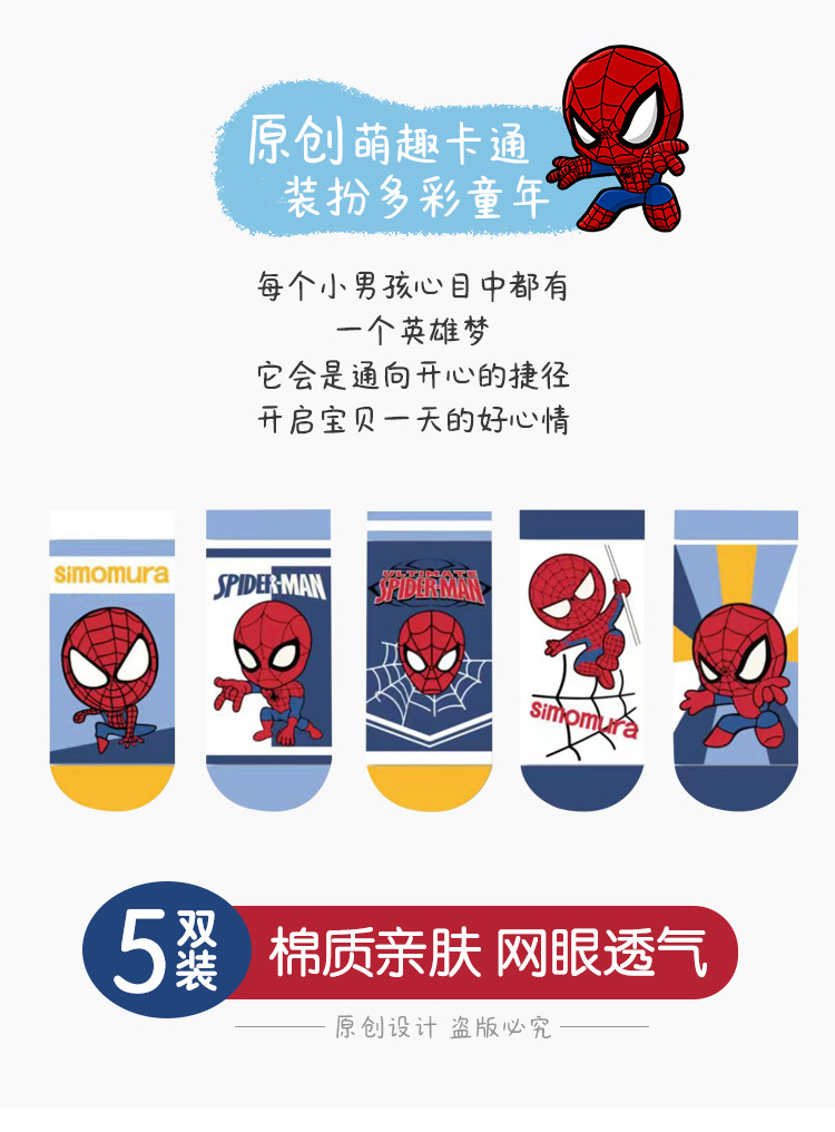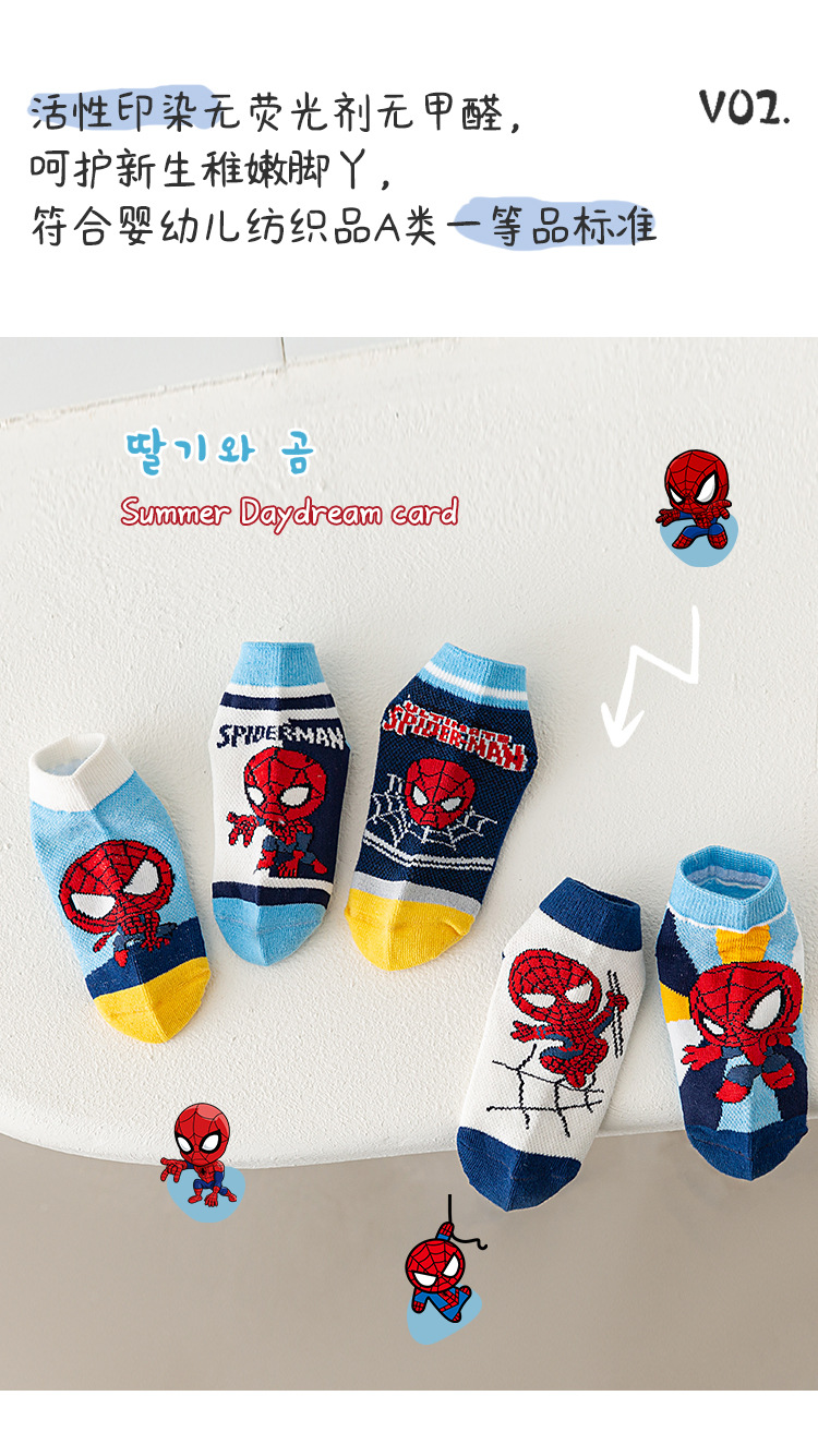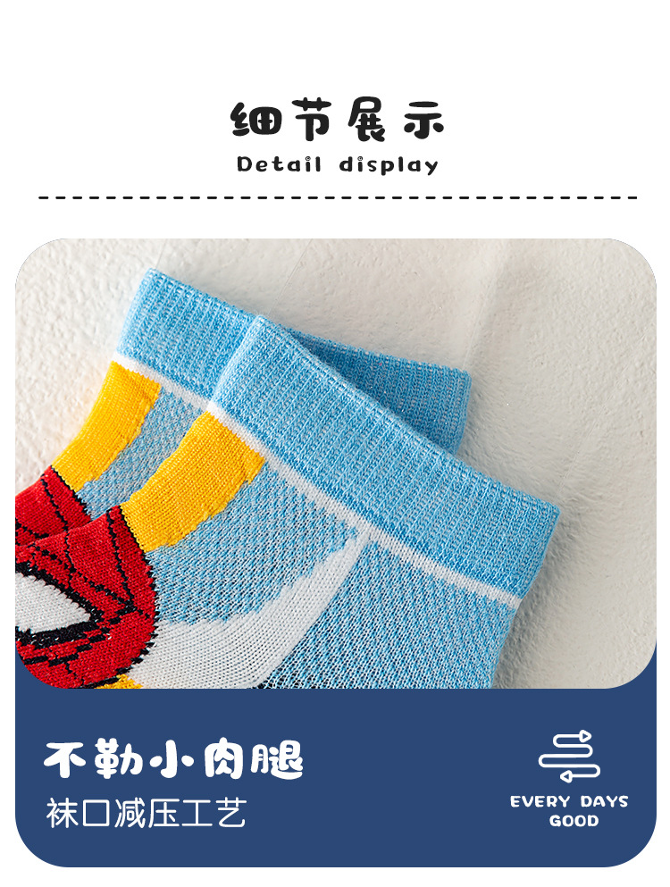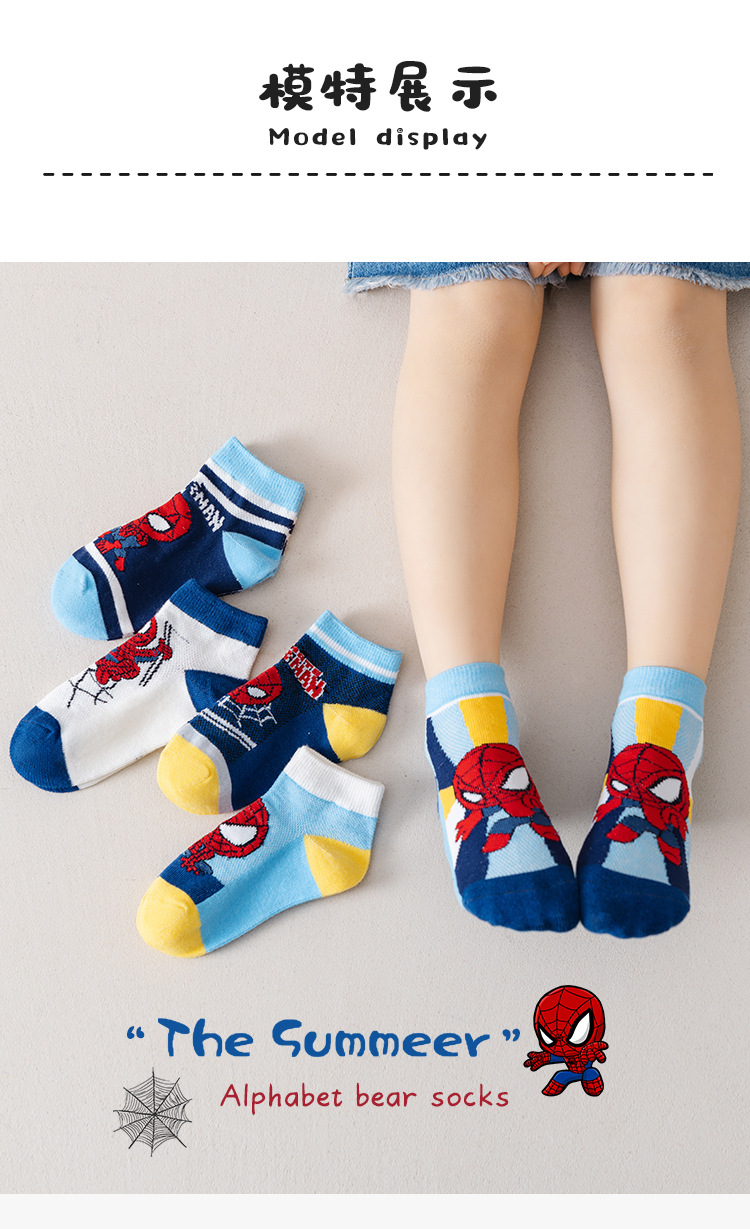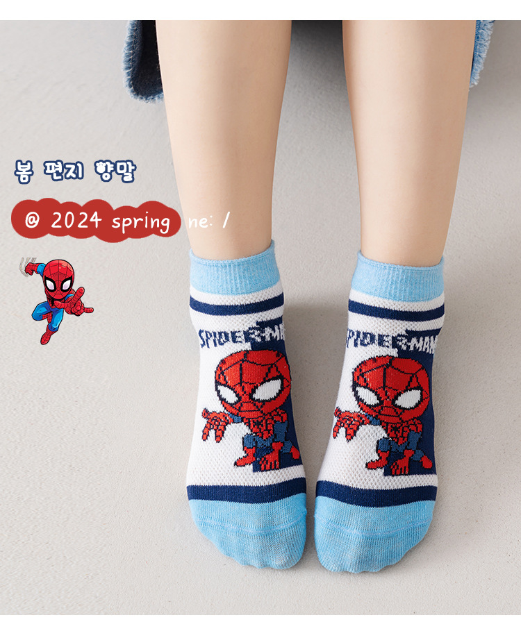 봄과 여름 새로운 어린이 양말 코튼 클래스 소년과 소녀 만화 스파이더 맨 1-12 세 메쉬 양말 공장 도매