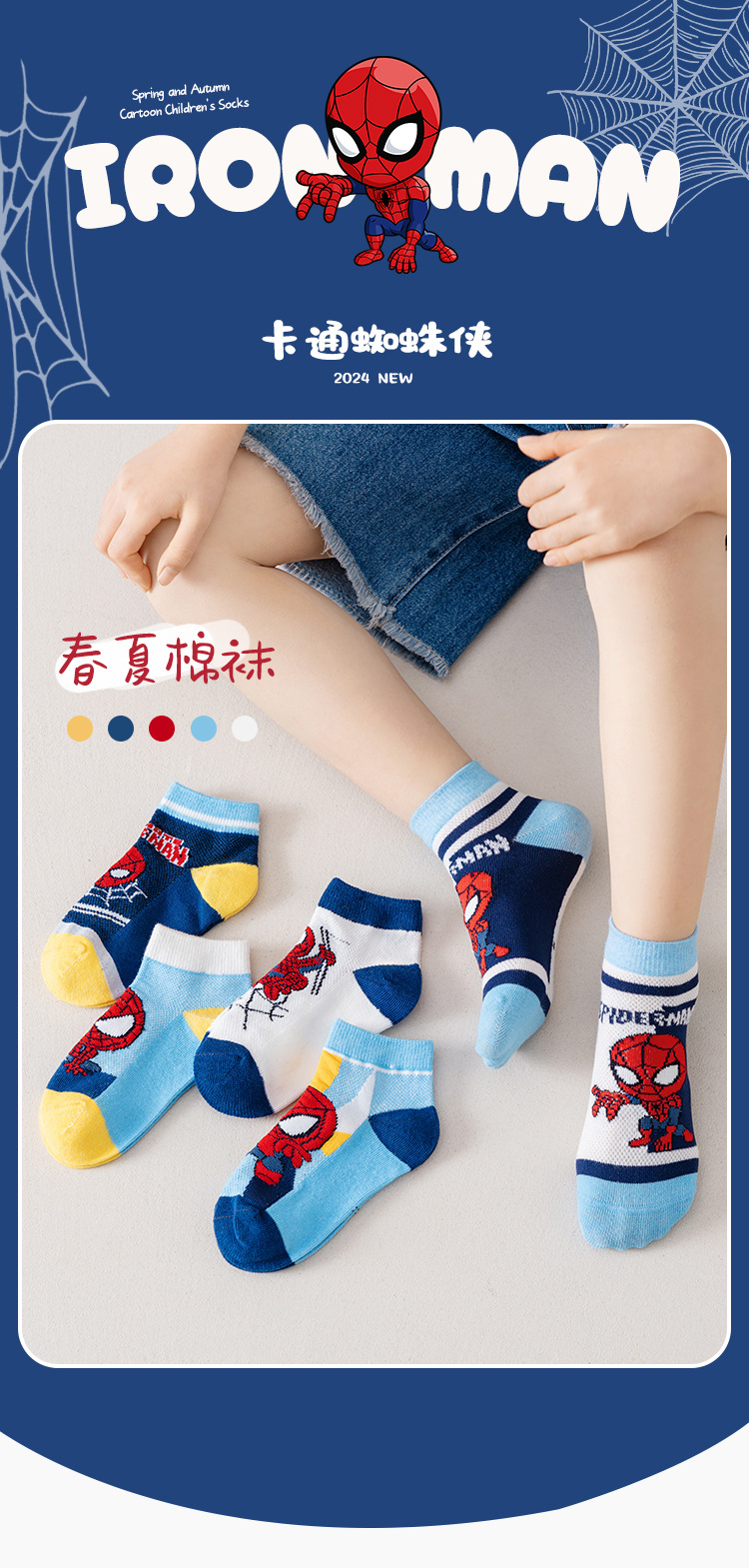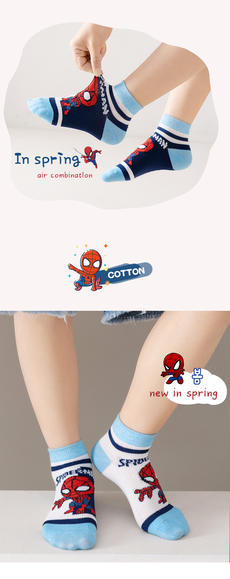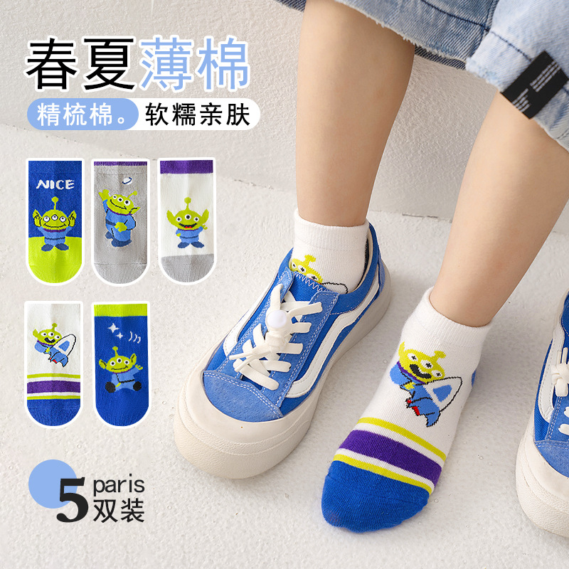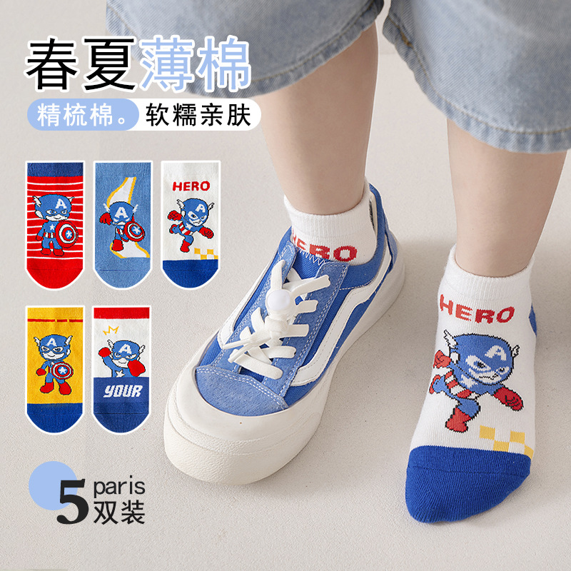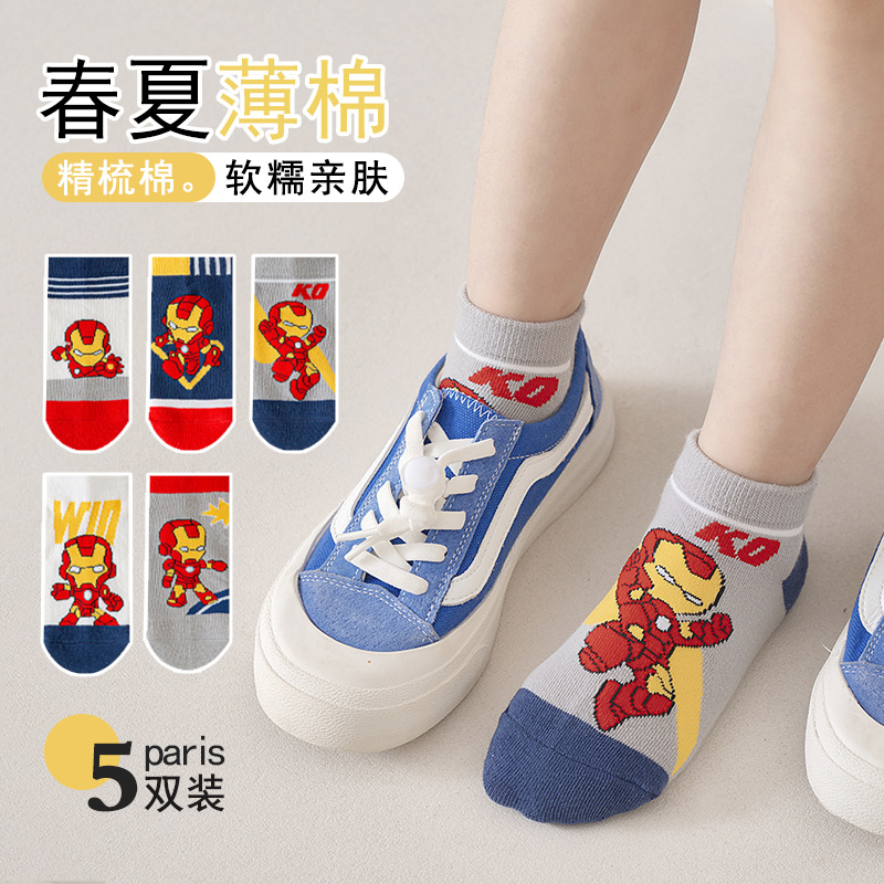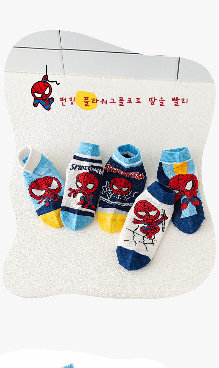 봄과 여름 새로운 어린이 양말 코튼 클래스 소년과 소녀 만화 스파이더 맨 1-12 세 메쉬 양말 공장 도매