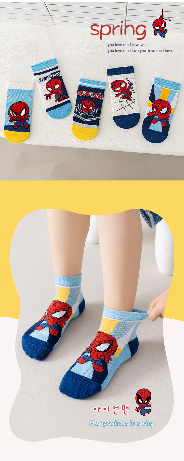 봄과 여름 새로운 어린이 양말 코튼 클래스 소년과 소녀 만화 스파이더 맨 1-12 세 메쉬 양말 공장 도매스토어 가기