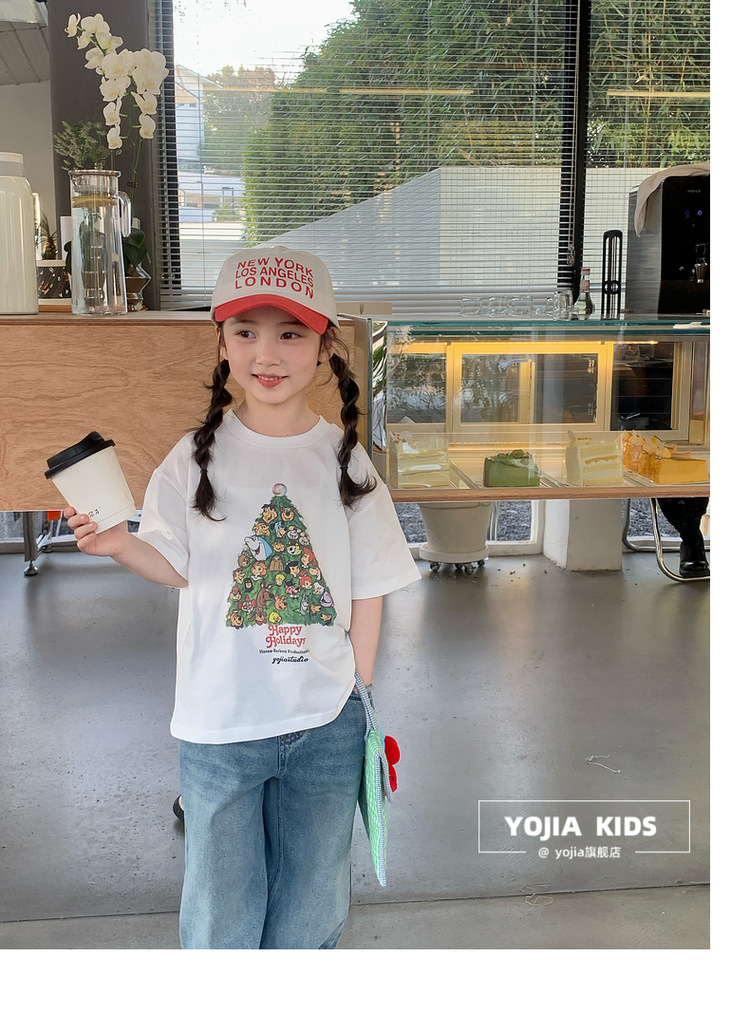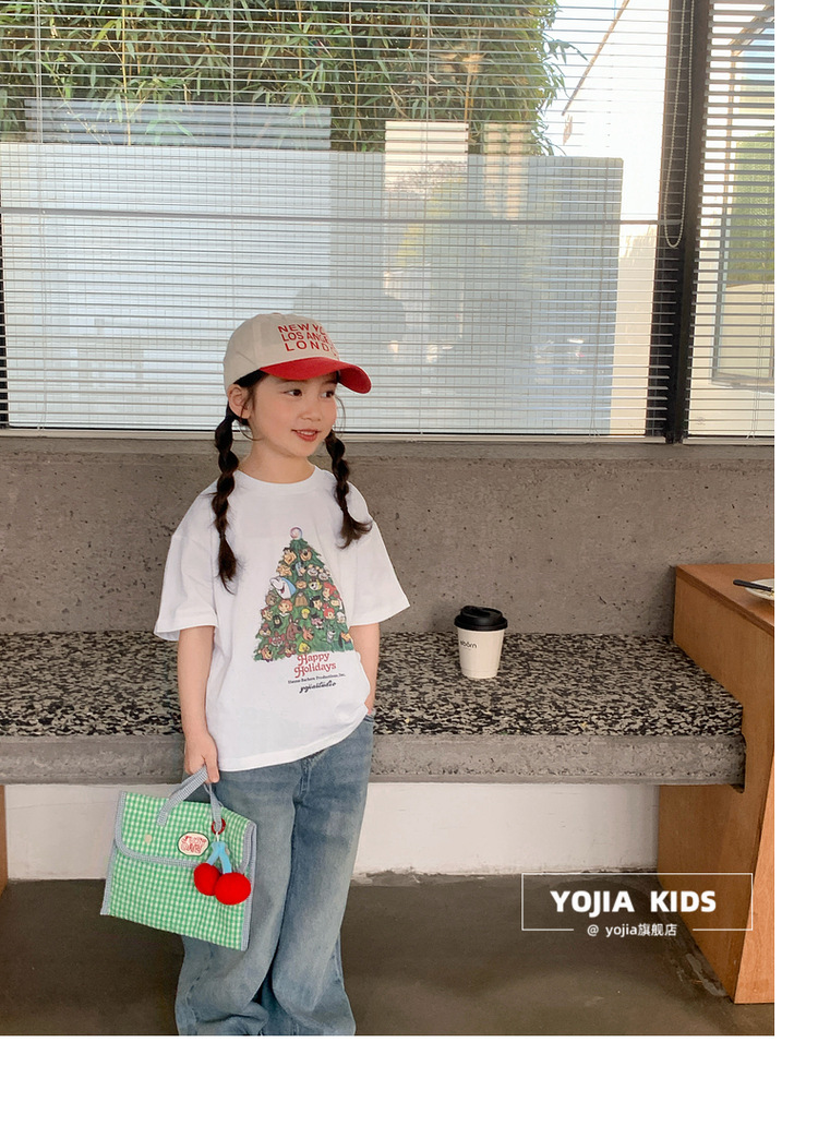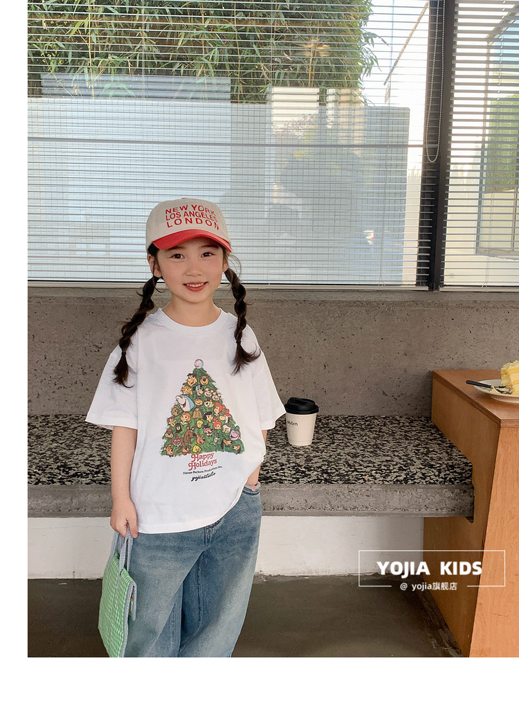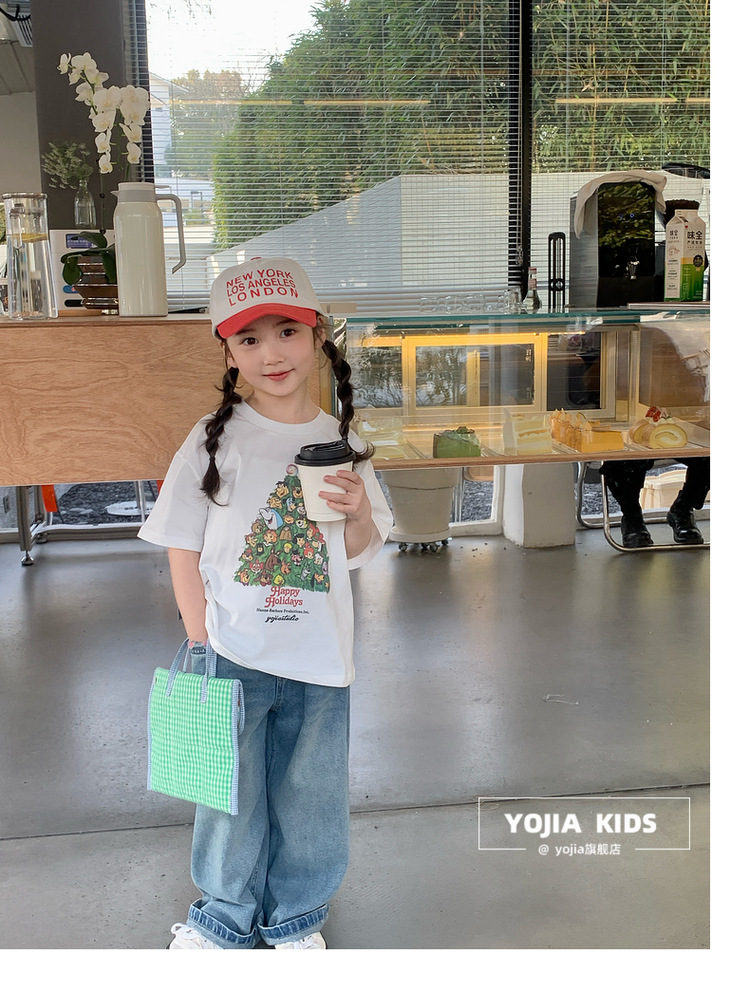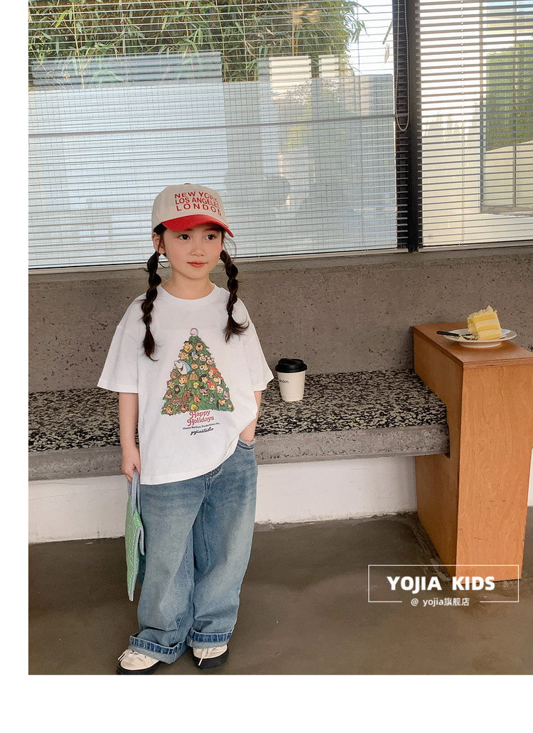 YOJIA 소녀의 넓은 다리 바지 봄과 가을 바지 봄 스트레이트 다리 바지 어린이 대형 어린이 느슨한 청바지 서양식스토어 가기