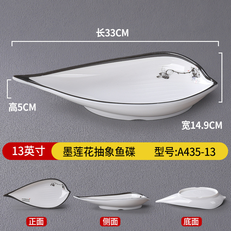 • 13 인치 잉크 연꽃 추상 생선 요리 A435-13