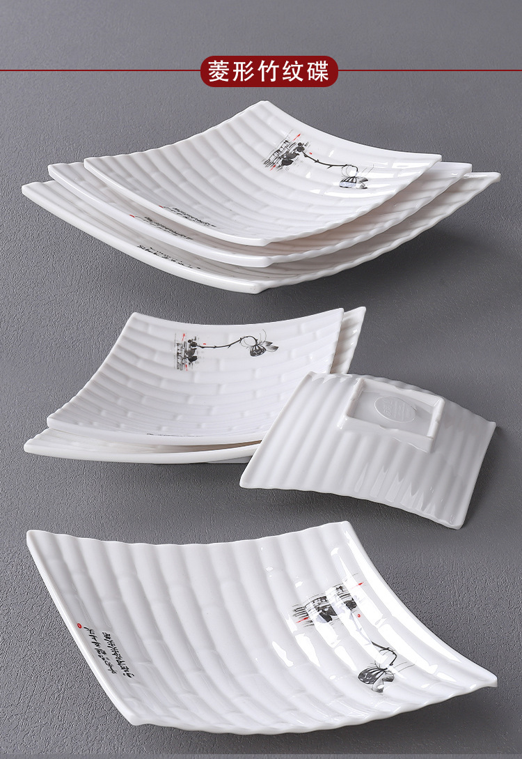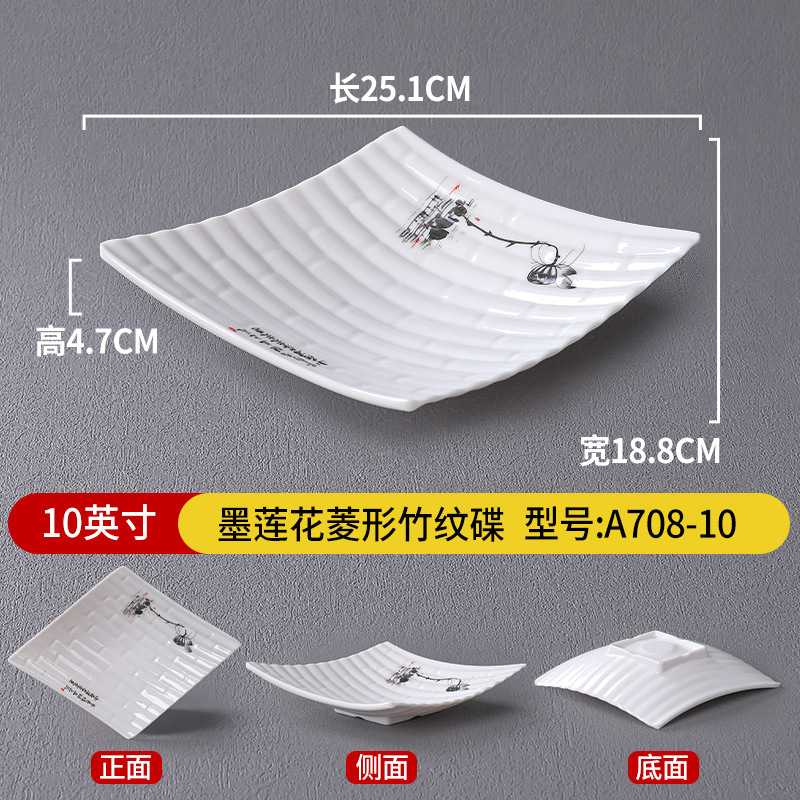• 10 인치 잉크 연꽃 다이아몬드 모양의 대나무 패턴 접시 A708-10