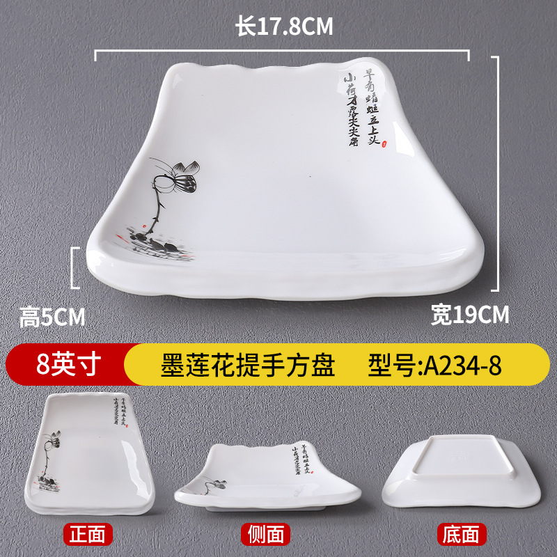 • 8 인치 잉크 연꽃 손잡이 사각형 판 A234-8