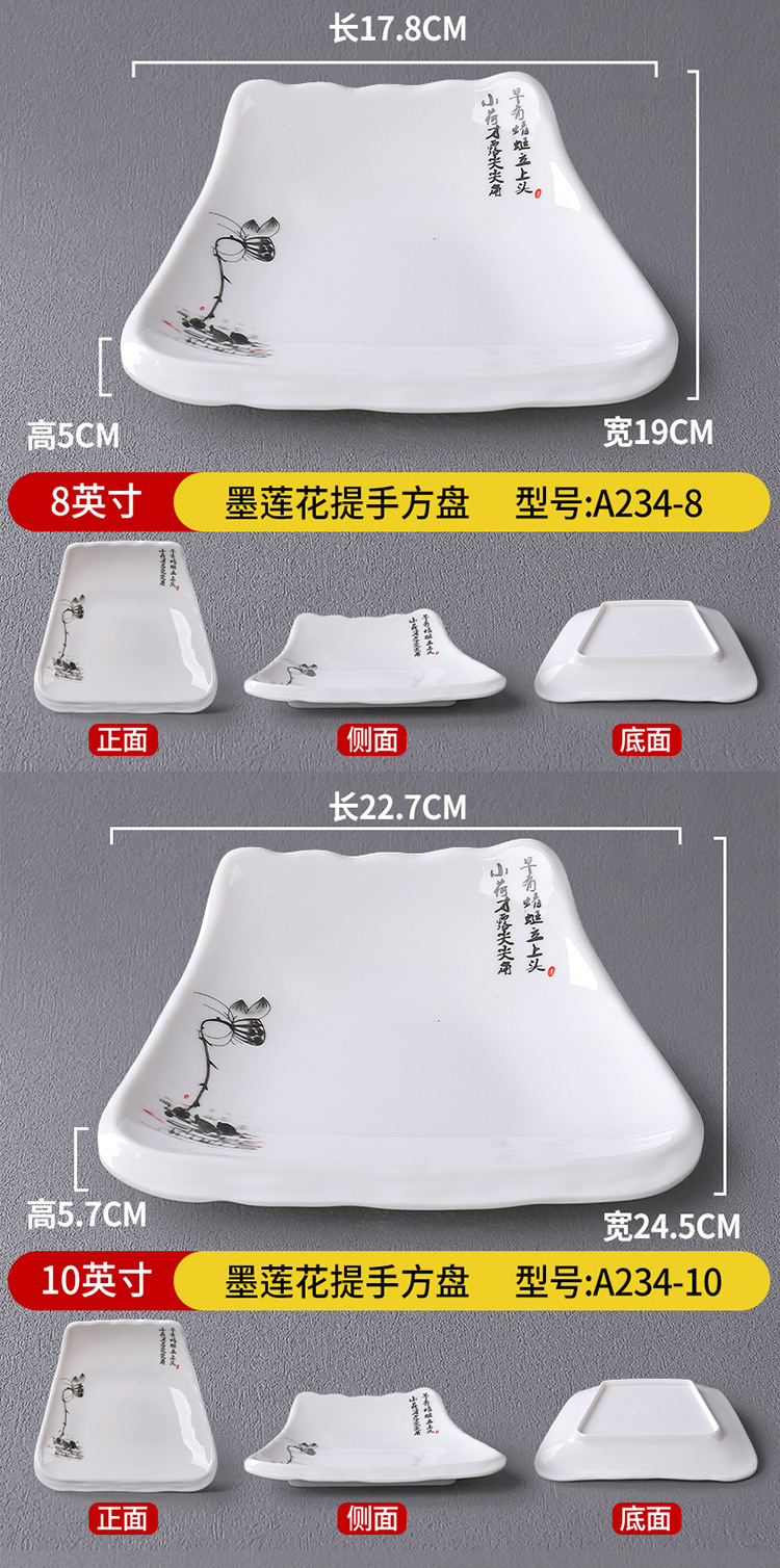 • 10 인치 잉크 연꽃 손잡이 사각형 판 A234-10