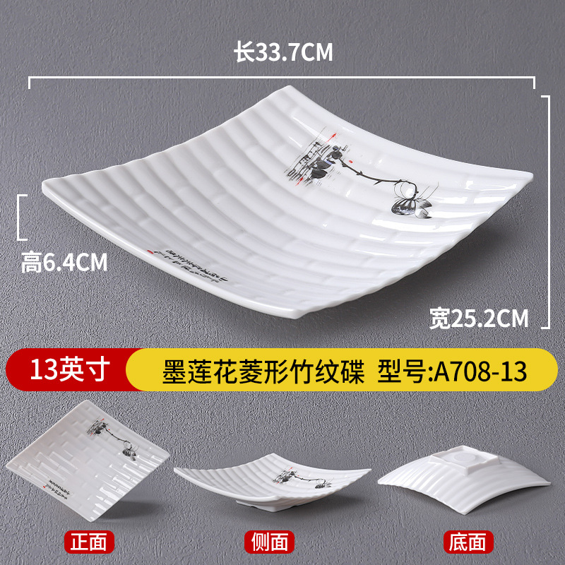 • 13 인치 잉크 연꽃 다이아몬드 모양의 대나무 패턴 접시 A708-13