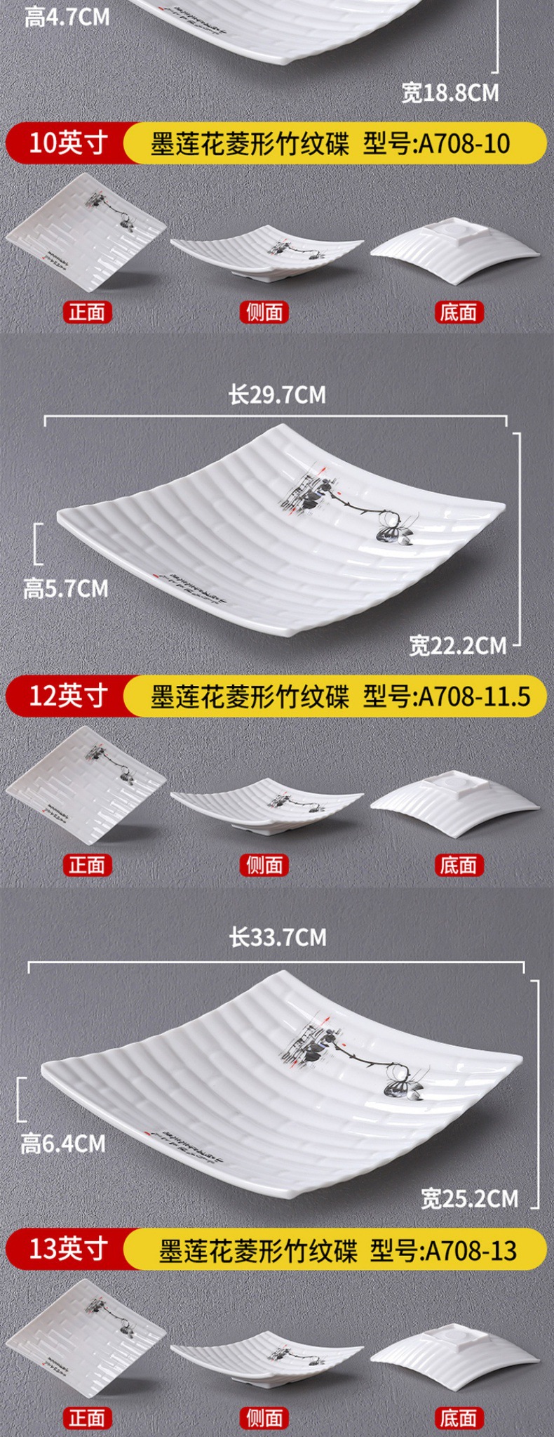 • 12 인치 잉크 연꽃 다이아몬드 모양의 대나무 패턴 접시 A708-11.5