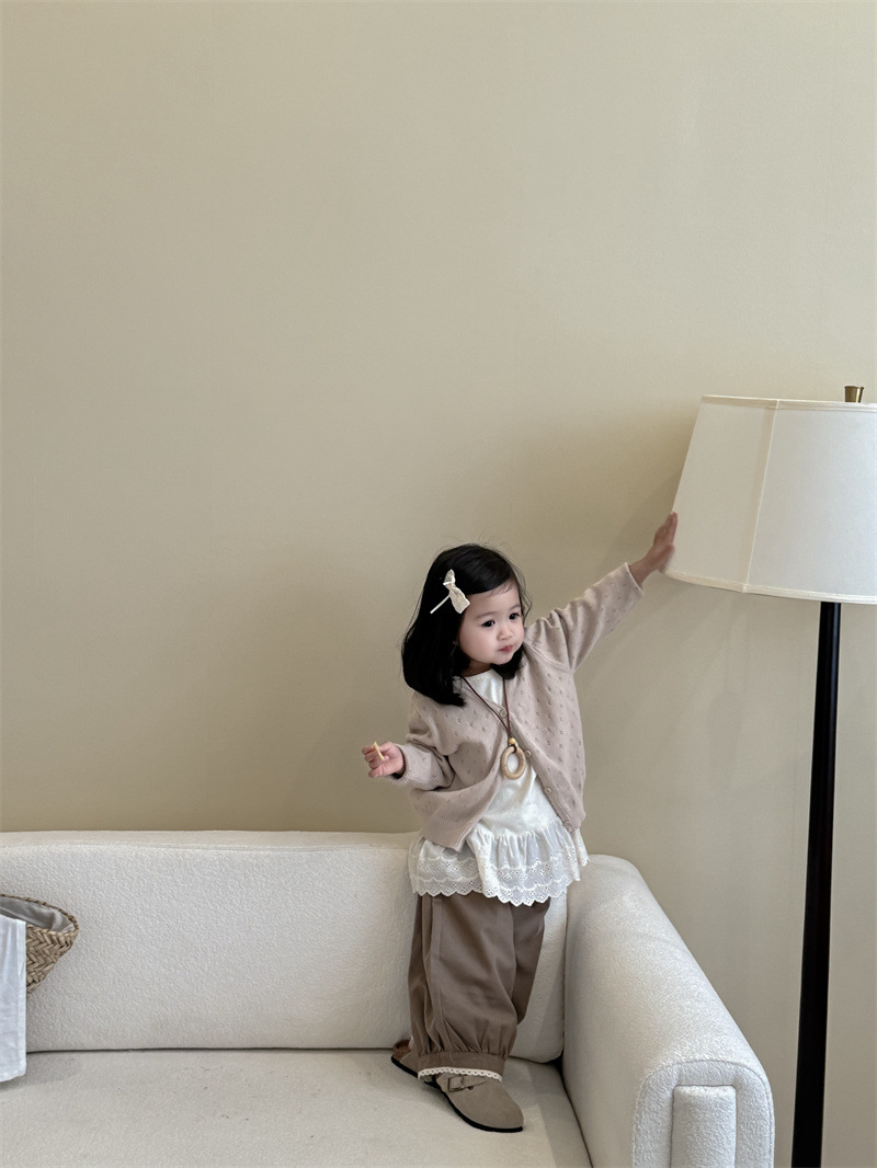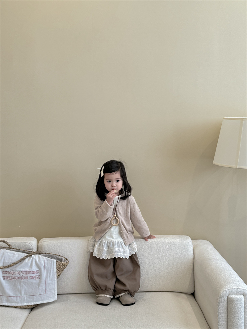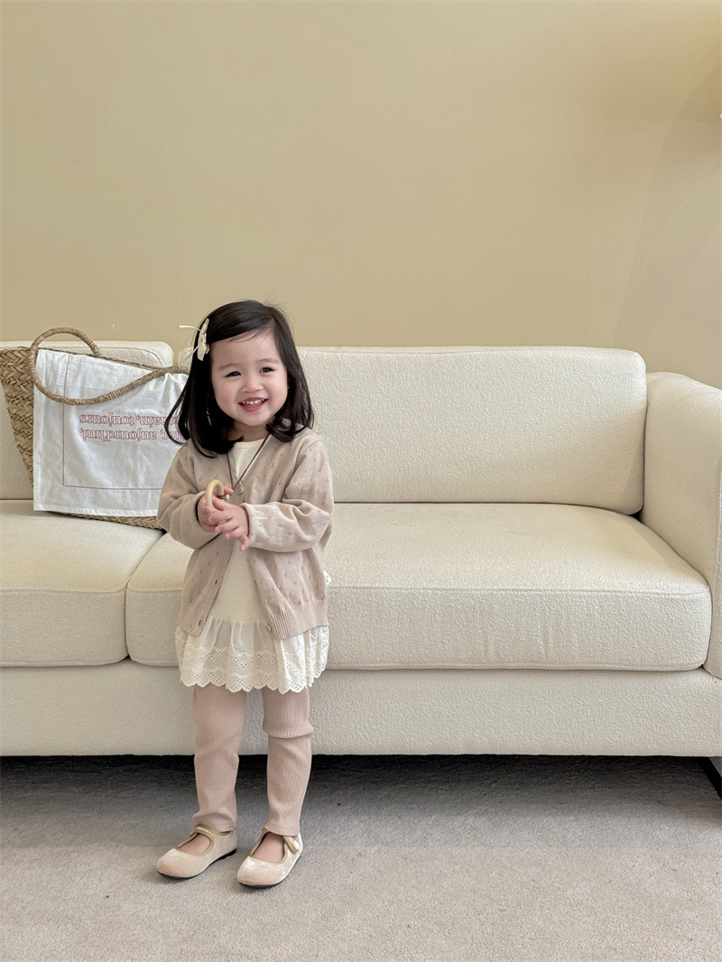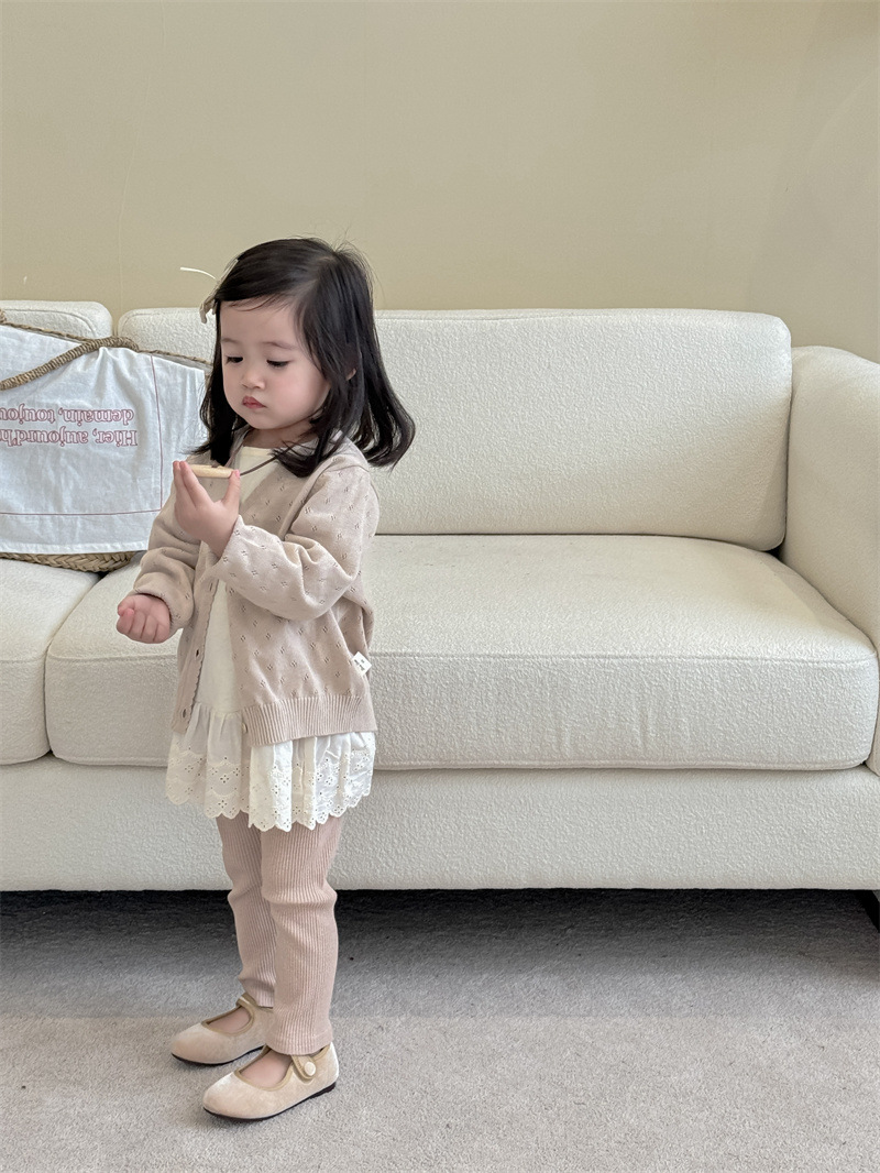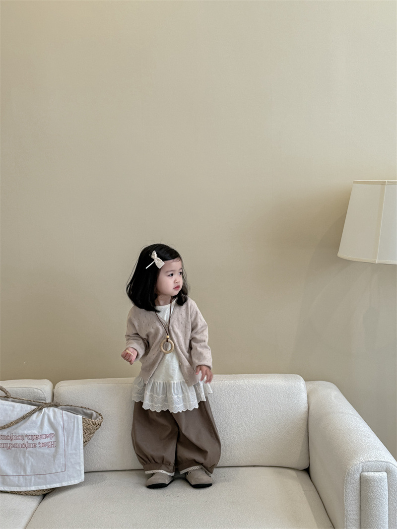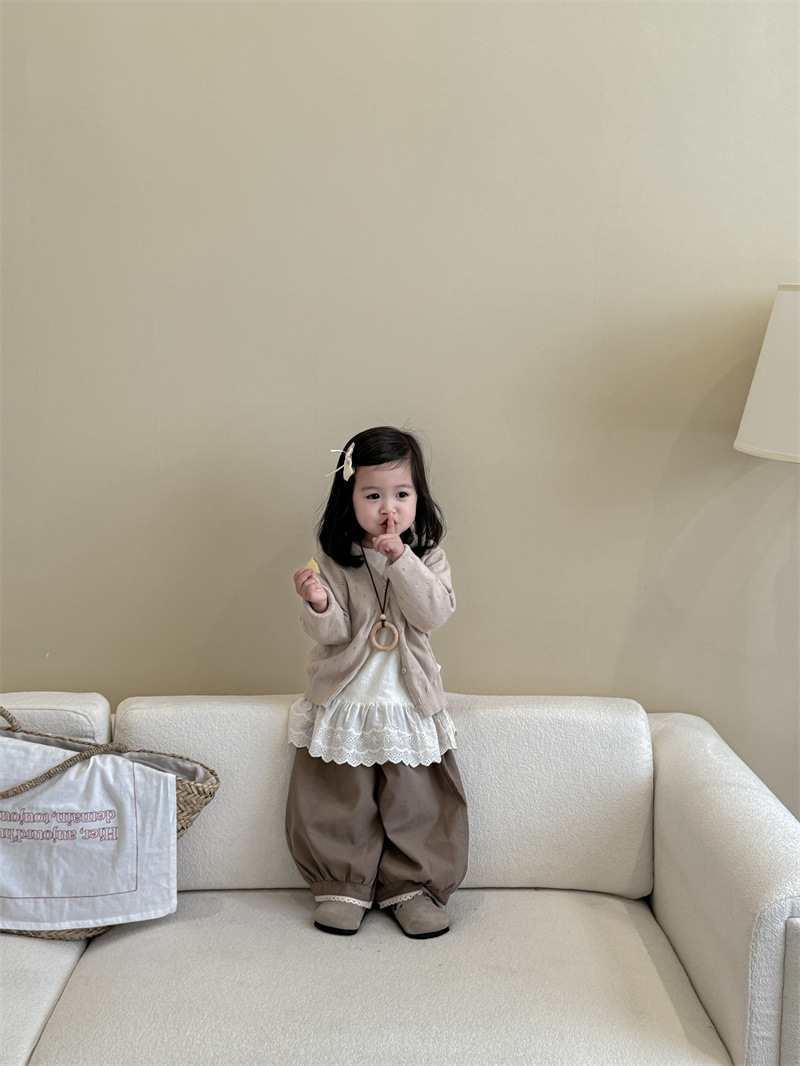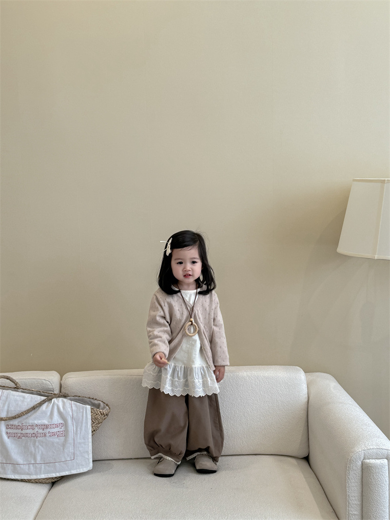 재고정리, 반품 및 교환 불가【합리적인 주문】봄철 여아 니트 가디건+레이스 트리밍 이너웨어