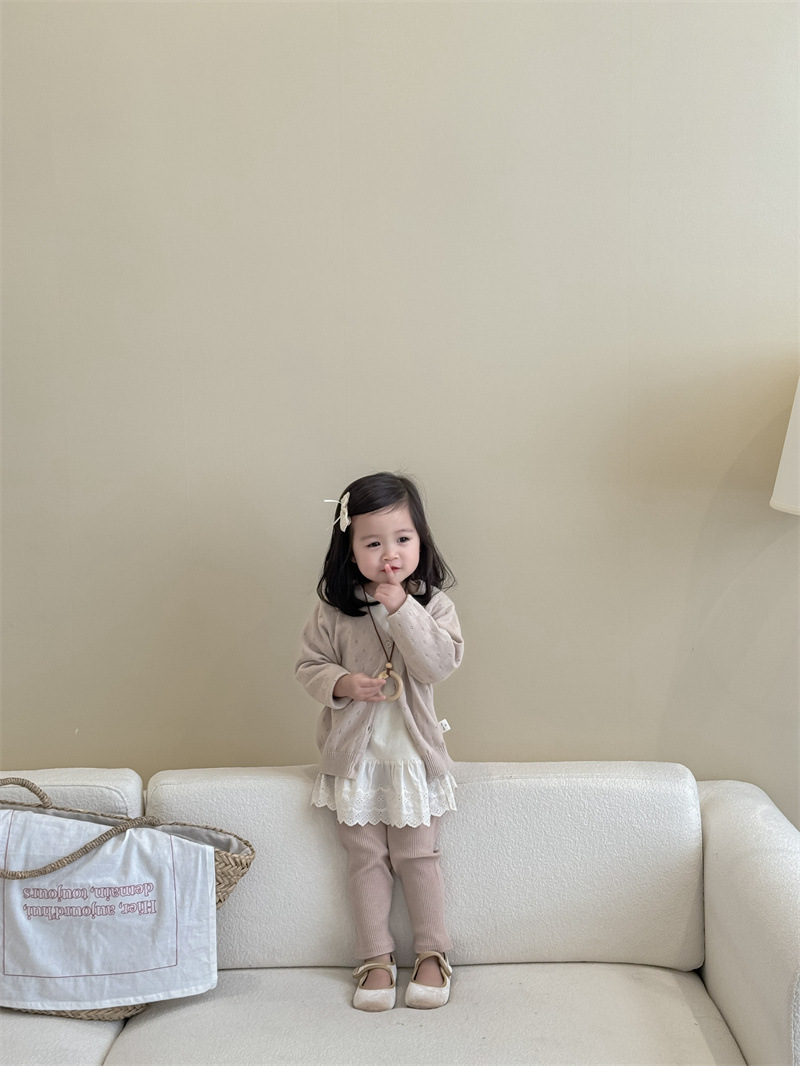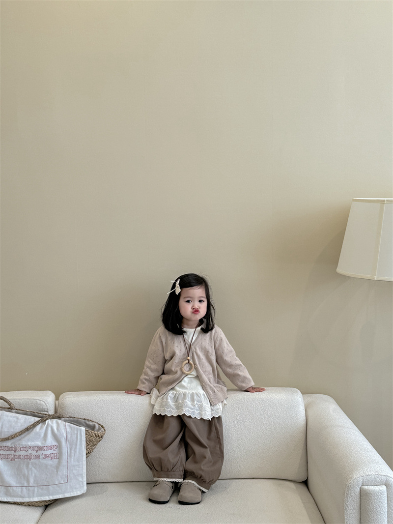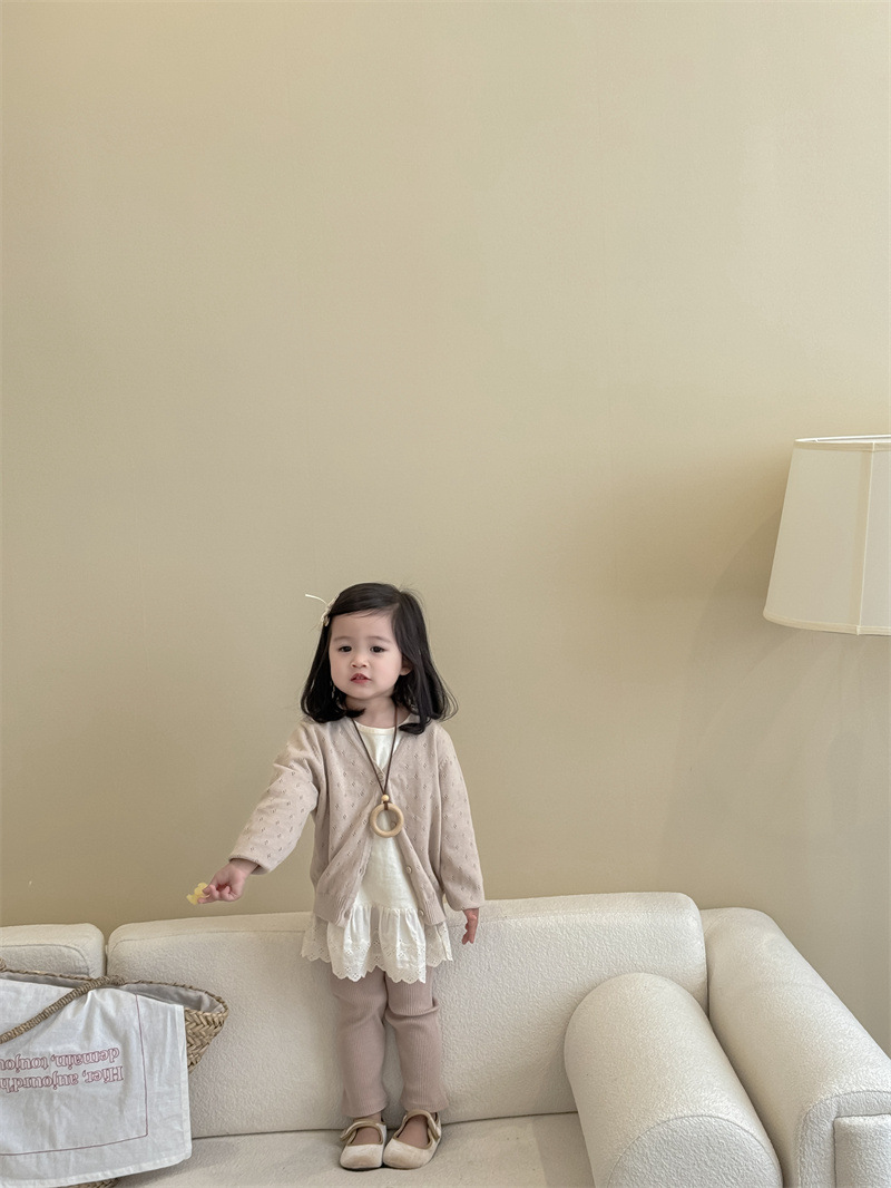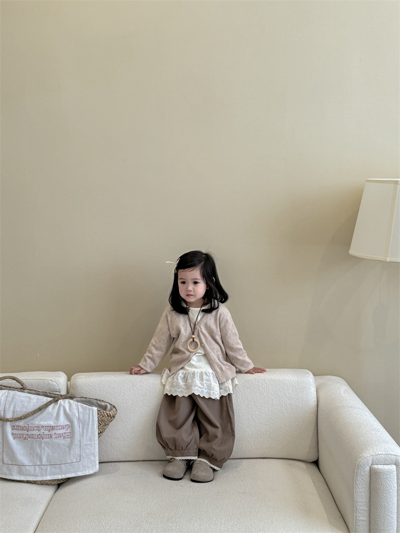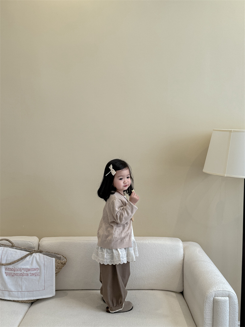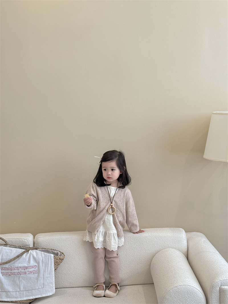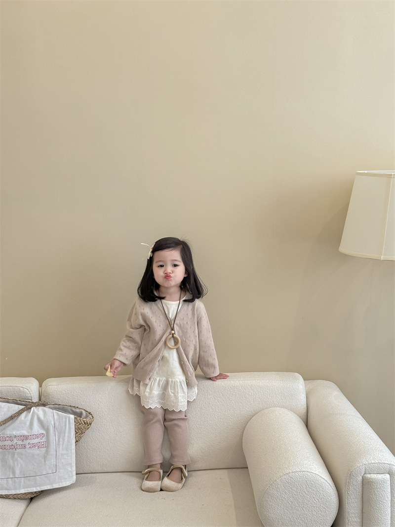 재고정리, 반품 및 교환 불가【합리적인 주문】봄철 여아 니트 가디건+레이스 트리밍 이너웨어
