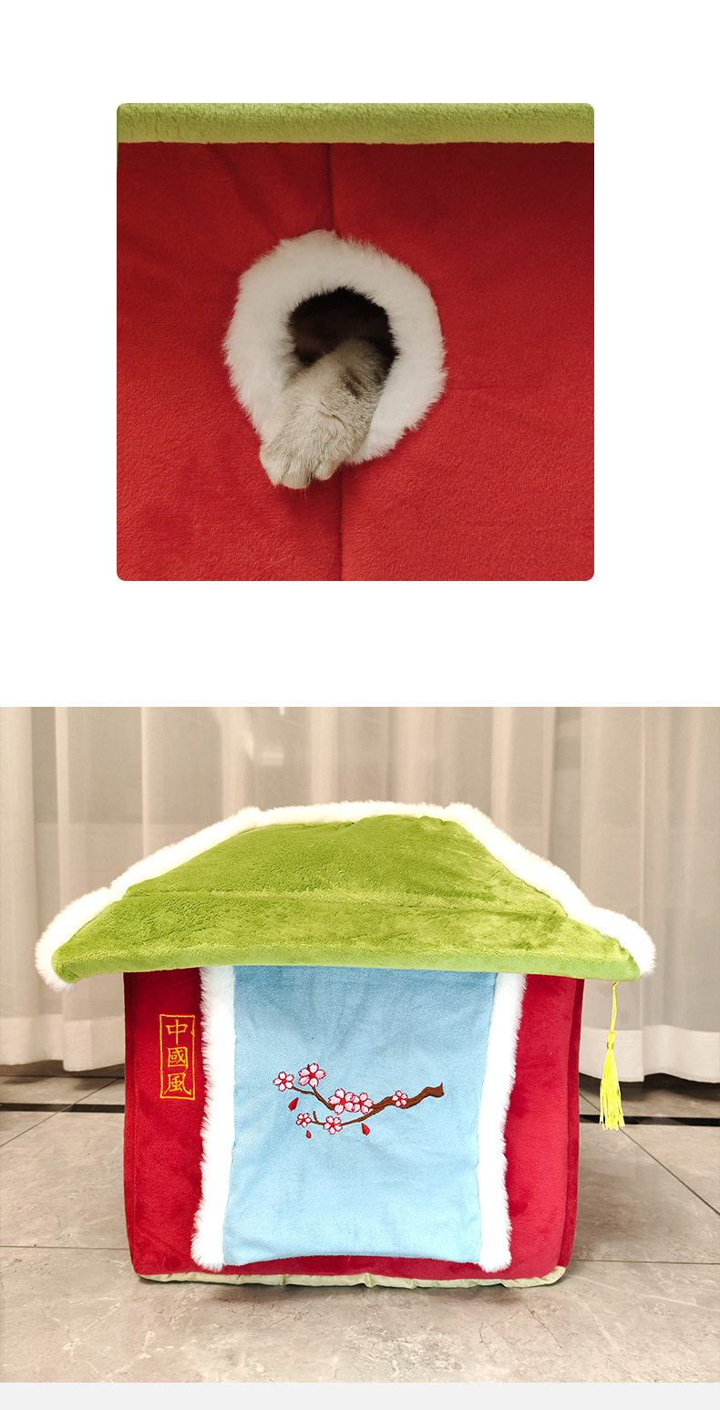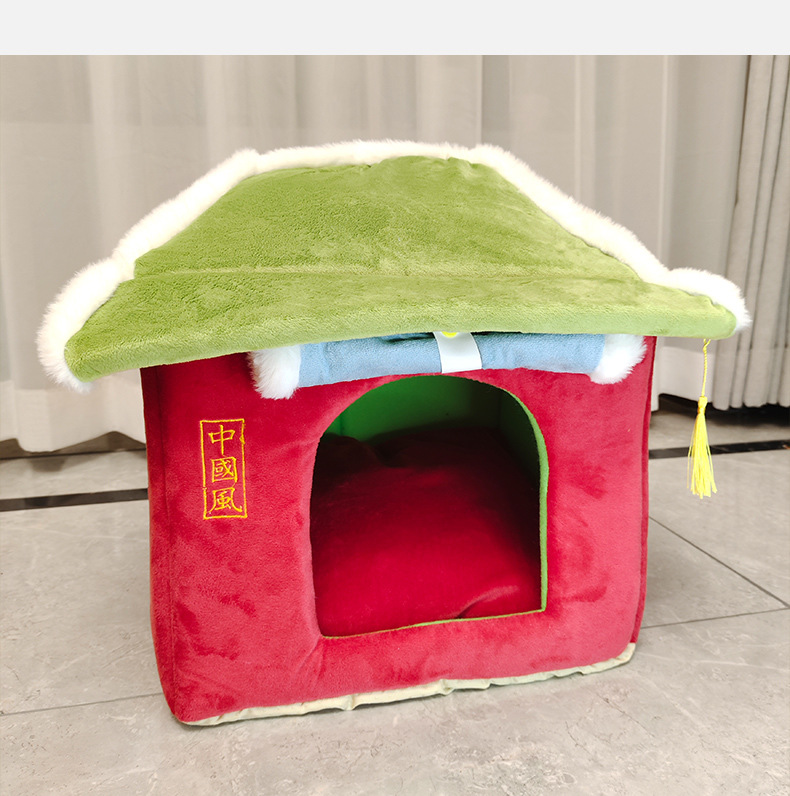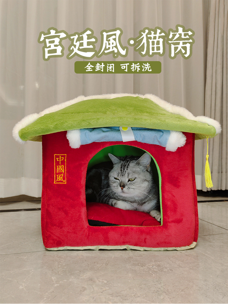 국가 스타일 고양이 둥지 완전히 밀폐 된 고양이 집 작은 개집 개집 잠자는 매트 겨울 따뜻한 일본 고양이 둥지 제거 가능하고 빨 수 있습니다.