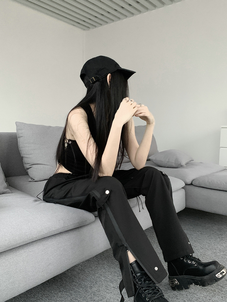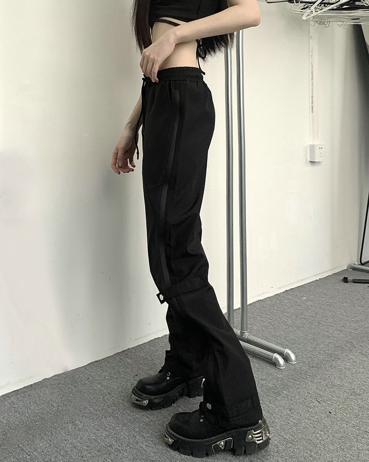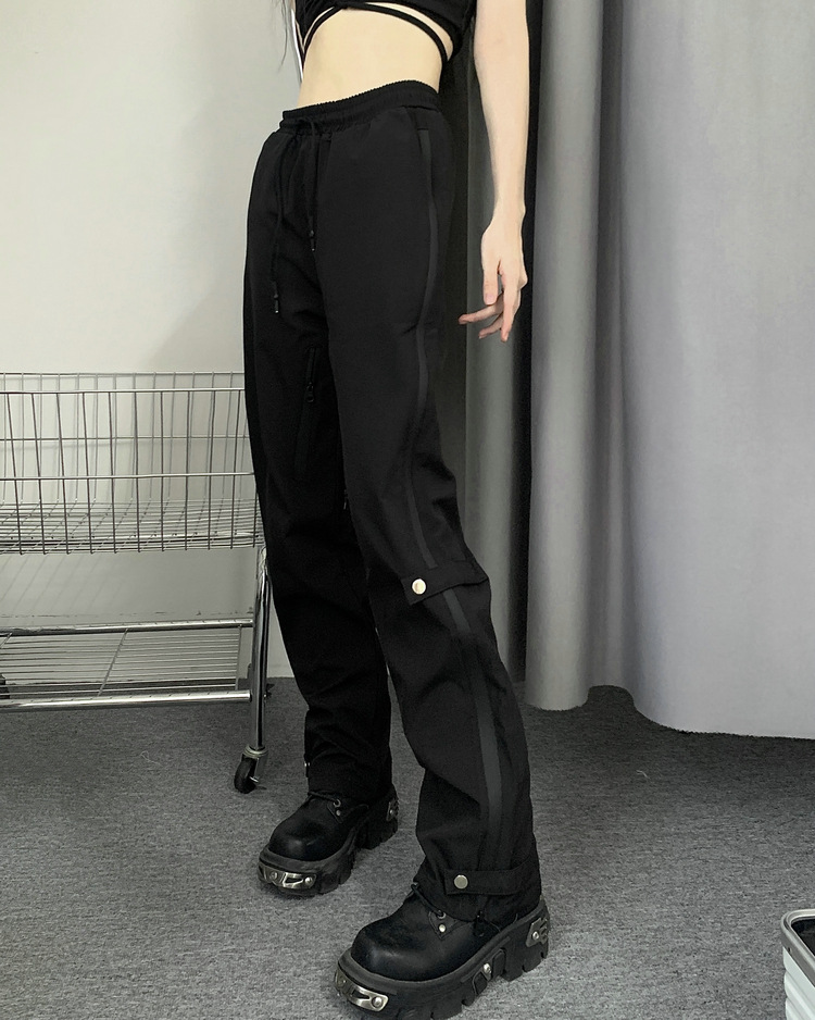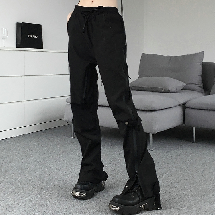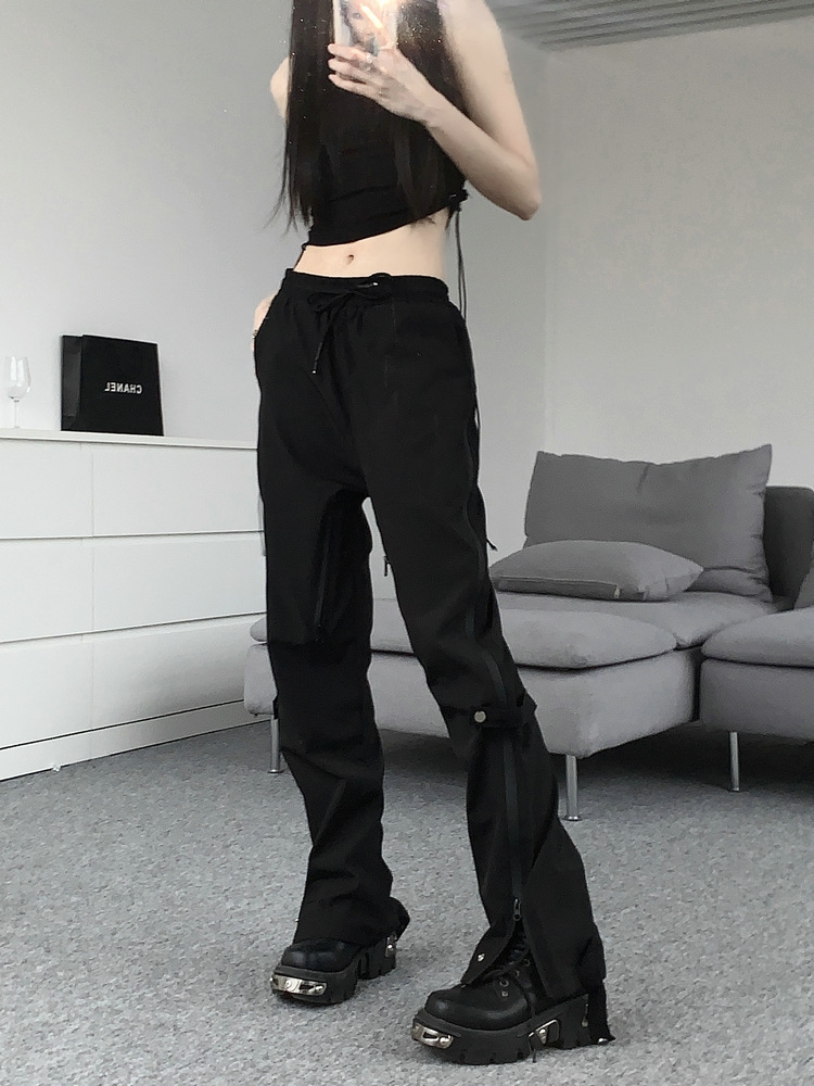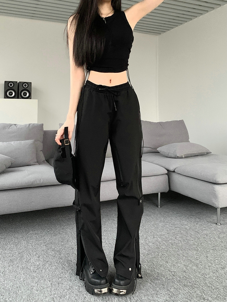레트로 스트리트 스타일 팬츠, 인스 트렌드 브랜드, 지퍼 디테일, 일자핏, 키높이 효과, 약간의 플레어, 하이 스트리트 기능성 바이브 팬츠, 여성용, 슬림핏