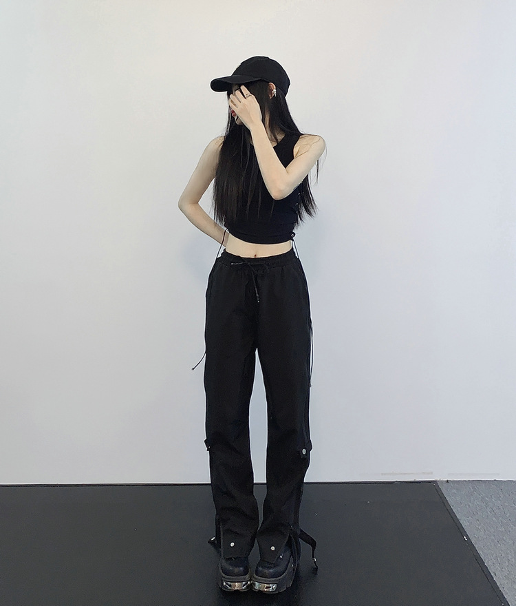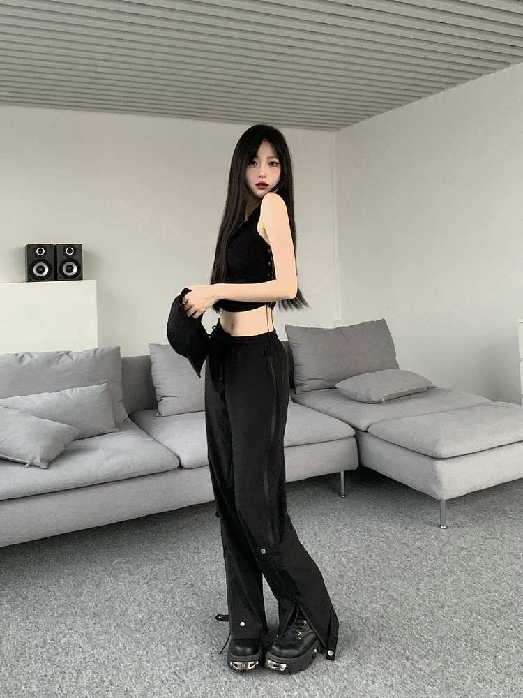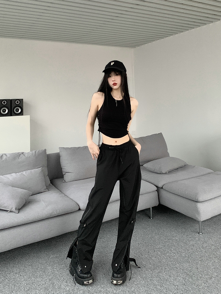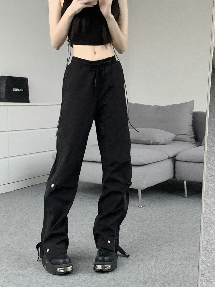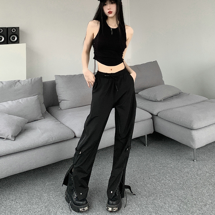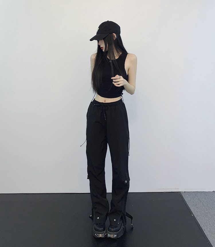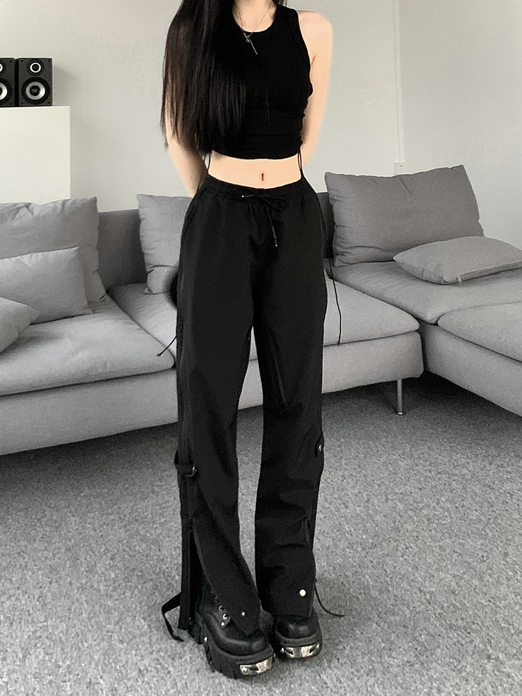 레트로 스트리트 스타일 팬츠, 인스 트렌드 브랜드, 지퍼 디테일, 일자핏, 키높이 효과, 약간의 플레어, 하이 스트리트 기능성 바이브 팬츠, 여성용, 슬림핏
