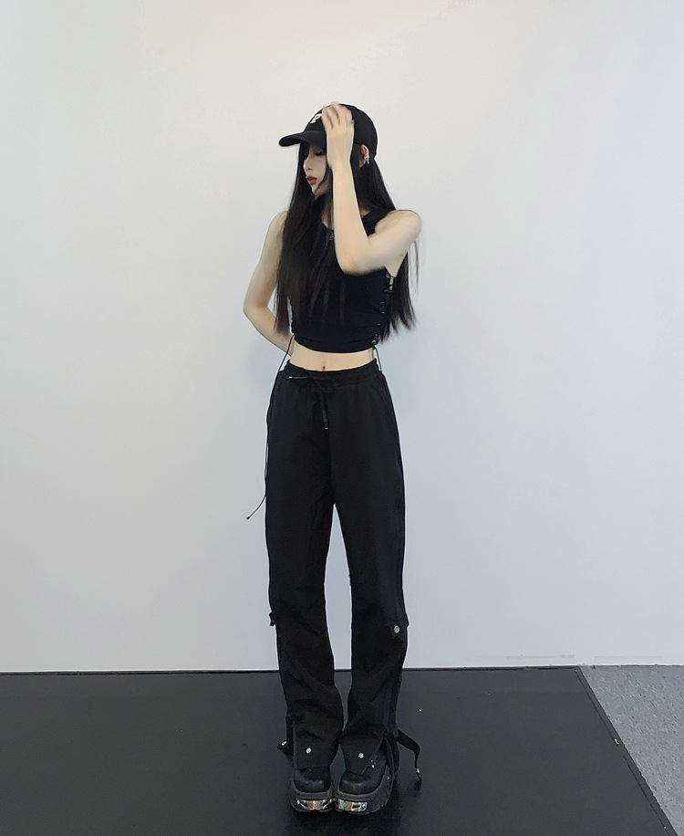 레트로 스트리트 스타일 팬츠, 인스 트렌드 브랜드, 지퍼 디테일, 일자핏, 키높이 효과, 약간의 플레어, 하이 스트리트 기능성 바이브 팬츠, 여성용, 슬림핏스토어 가기
