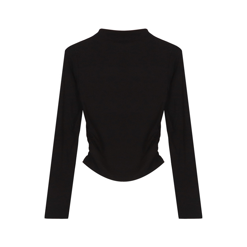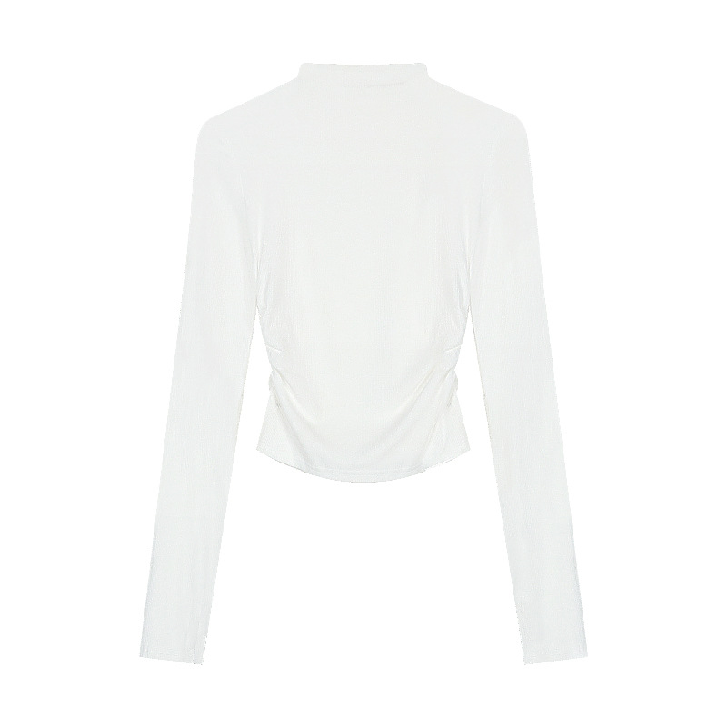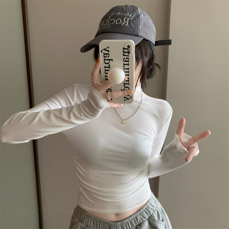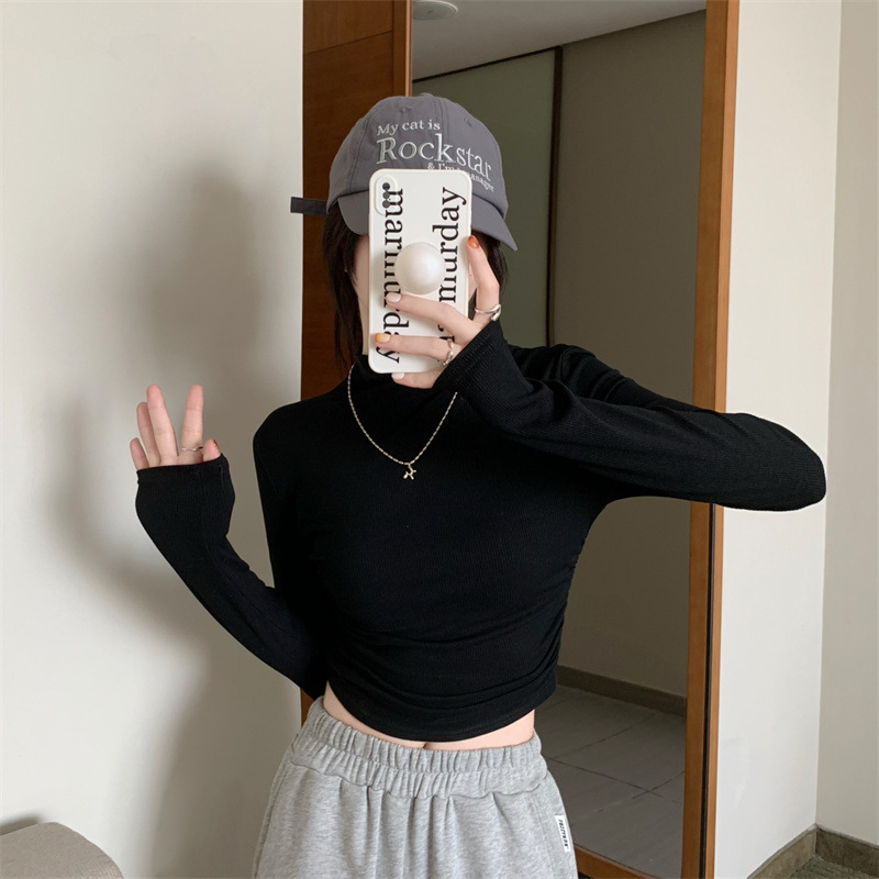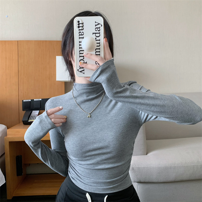 여성을위한 회색 긴팔 티셔츠 봄 2025 새로운 슬림 피트 주름 핫 소녀 하프 터틀넥 셔츠 탑 트렌디스토어 가기