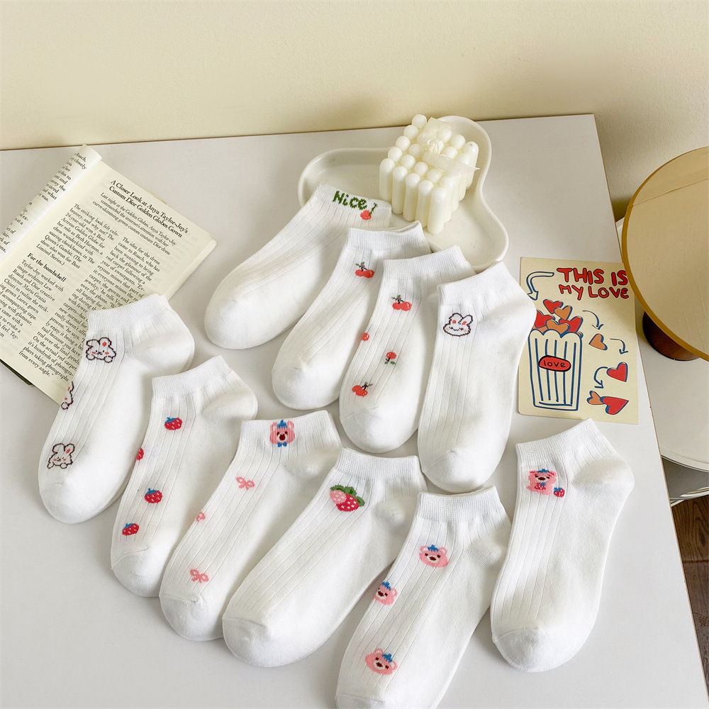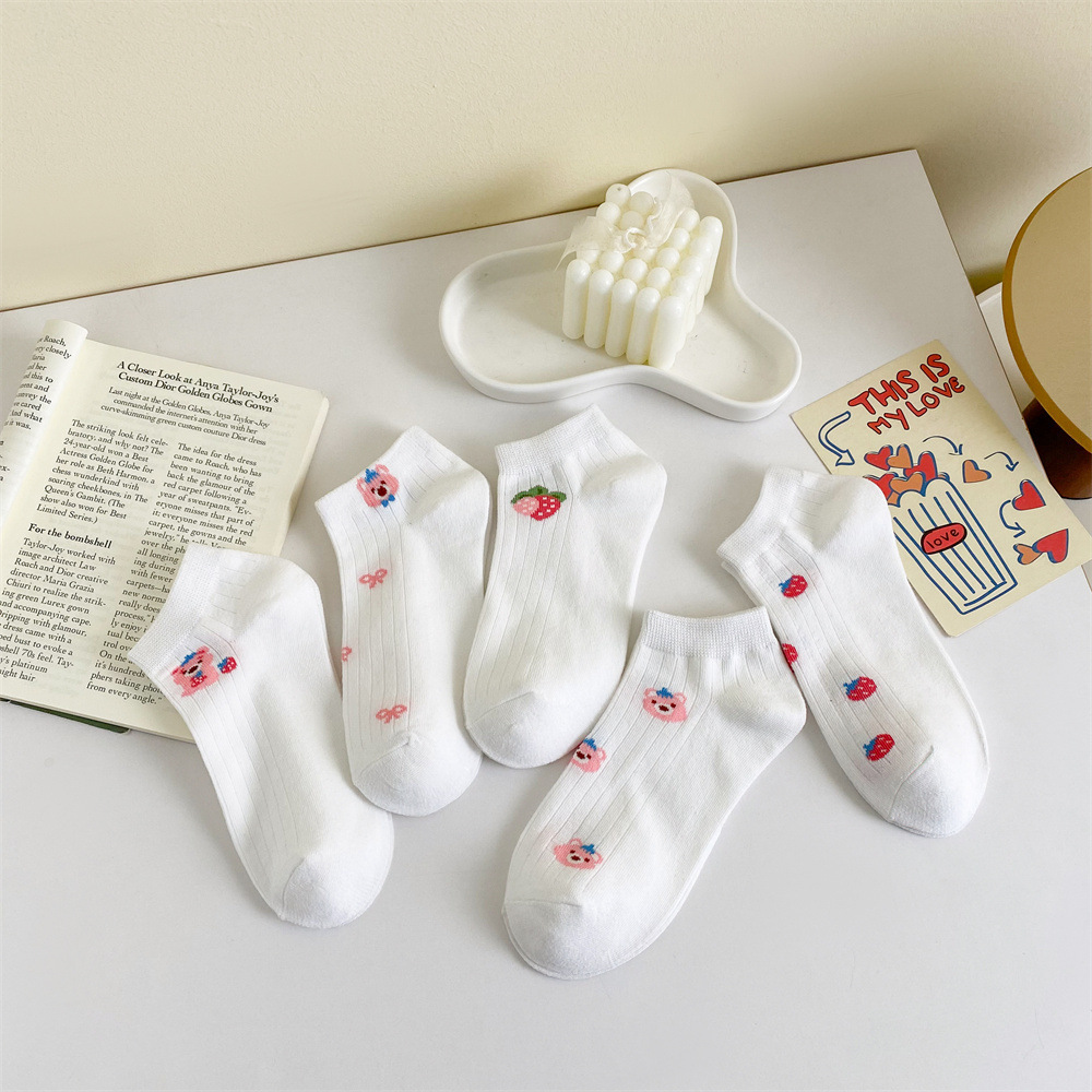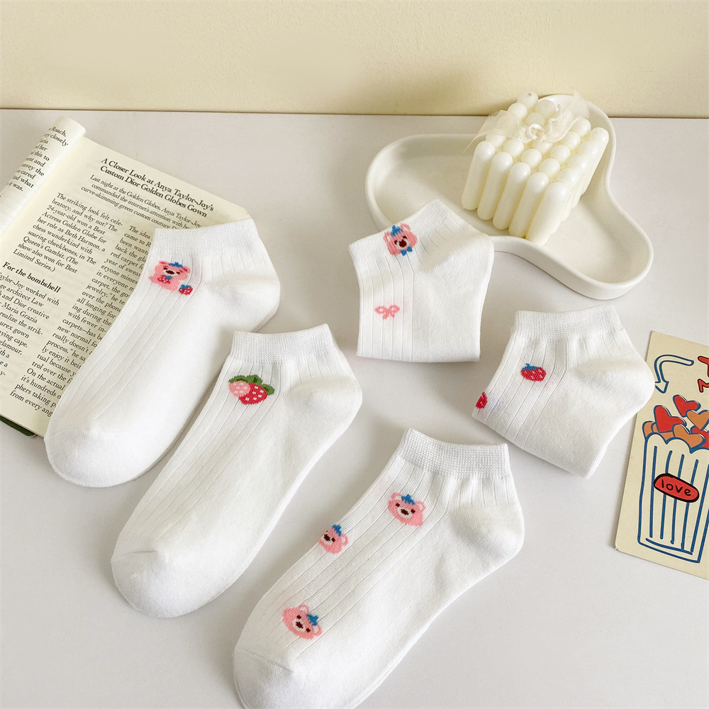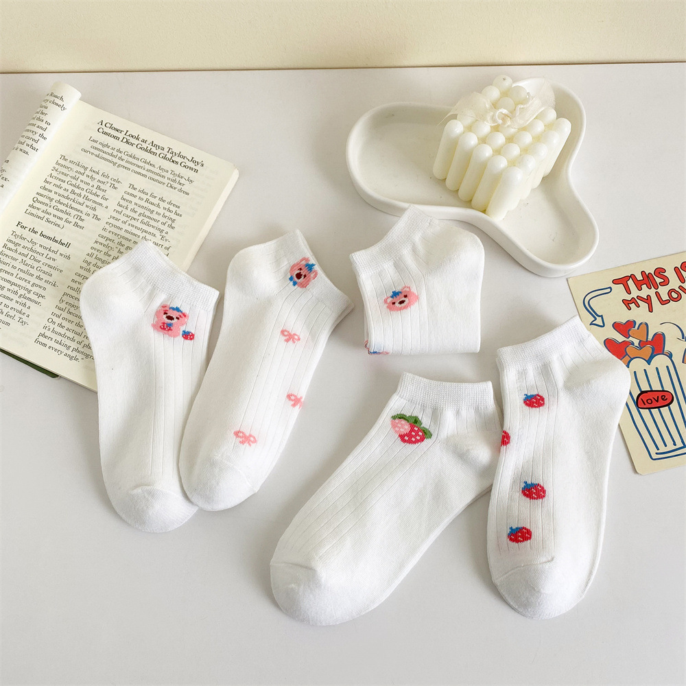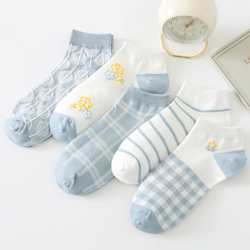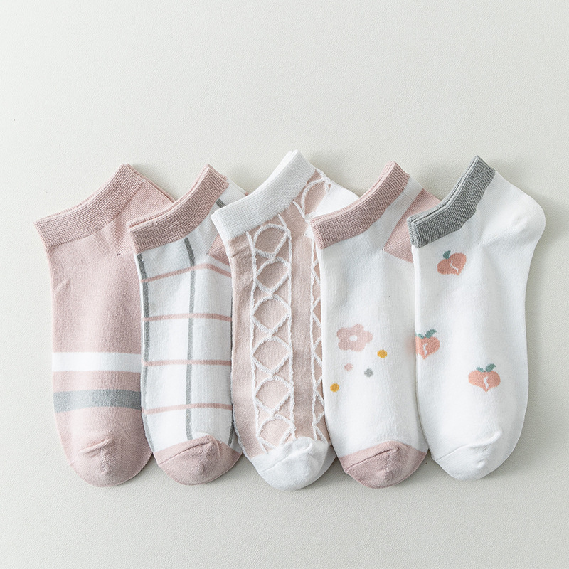 이른 봄 새로운 올 매치 로우 컷 양말면 양말 여성의 신선한 핑크 작은 꽃 줄무늬 프레피 스타일 여성 보트 양말스토어 가기