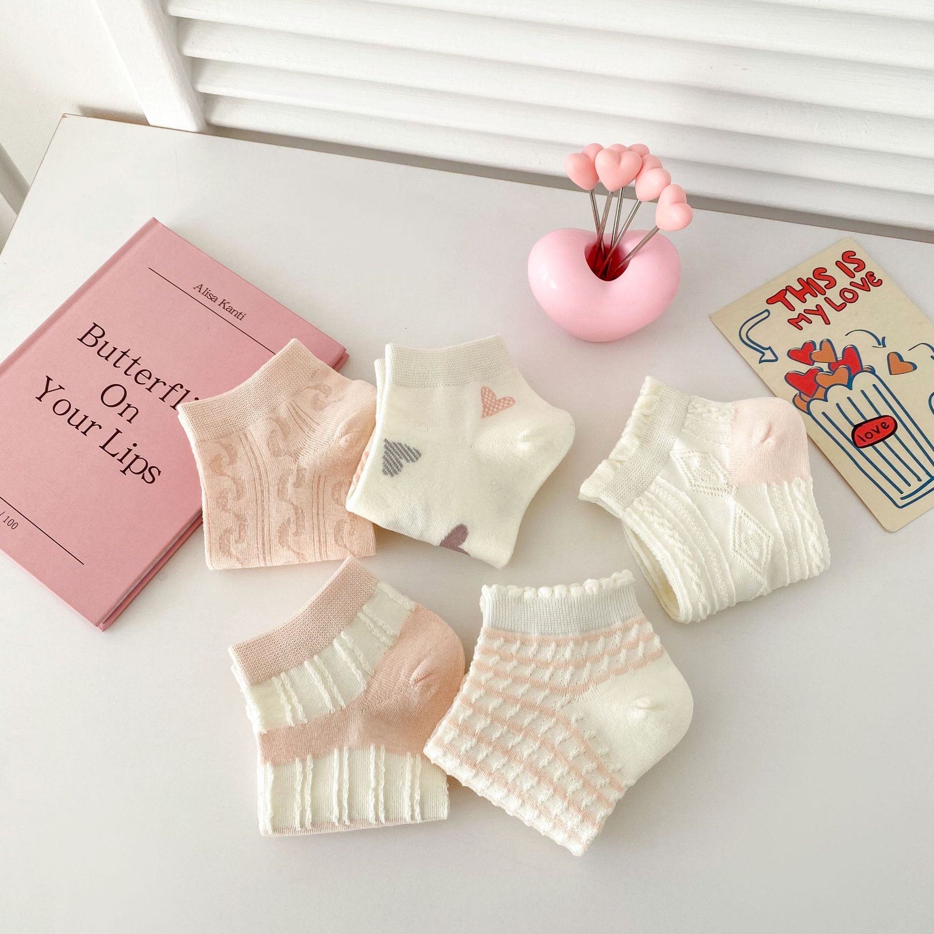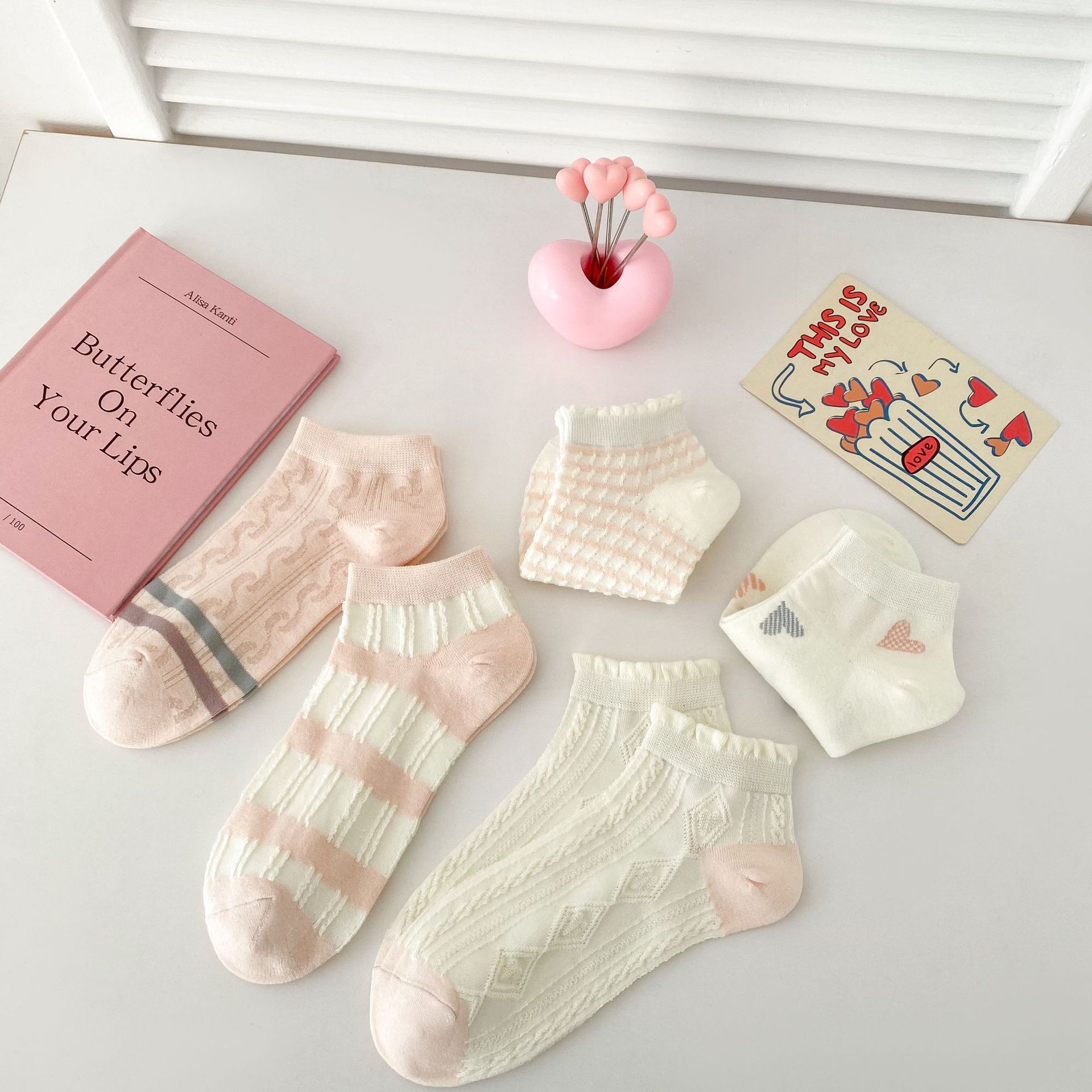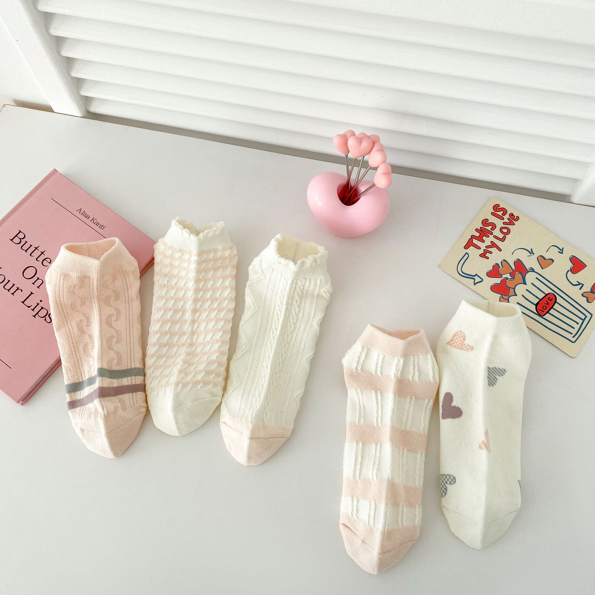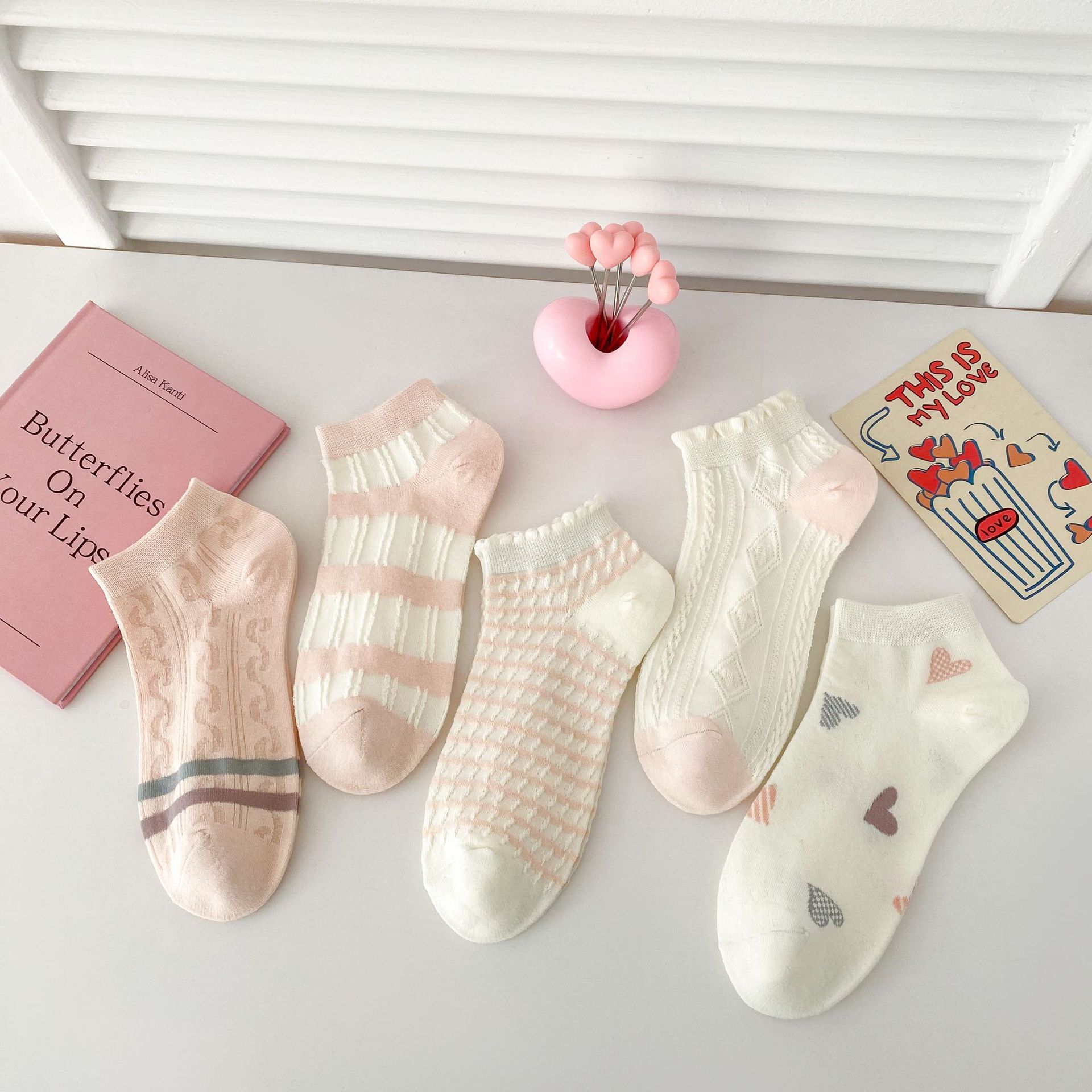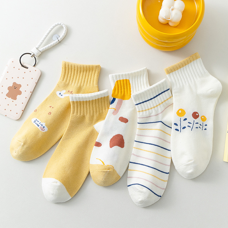이른 봄 새로운 올 매치 로우 컷 양말면 양말 여성의 신선한 핑크 작은 꽃 줄무늬 프레피 스타일 여성 보트 양말스토어 가기
