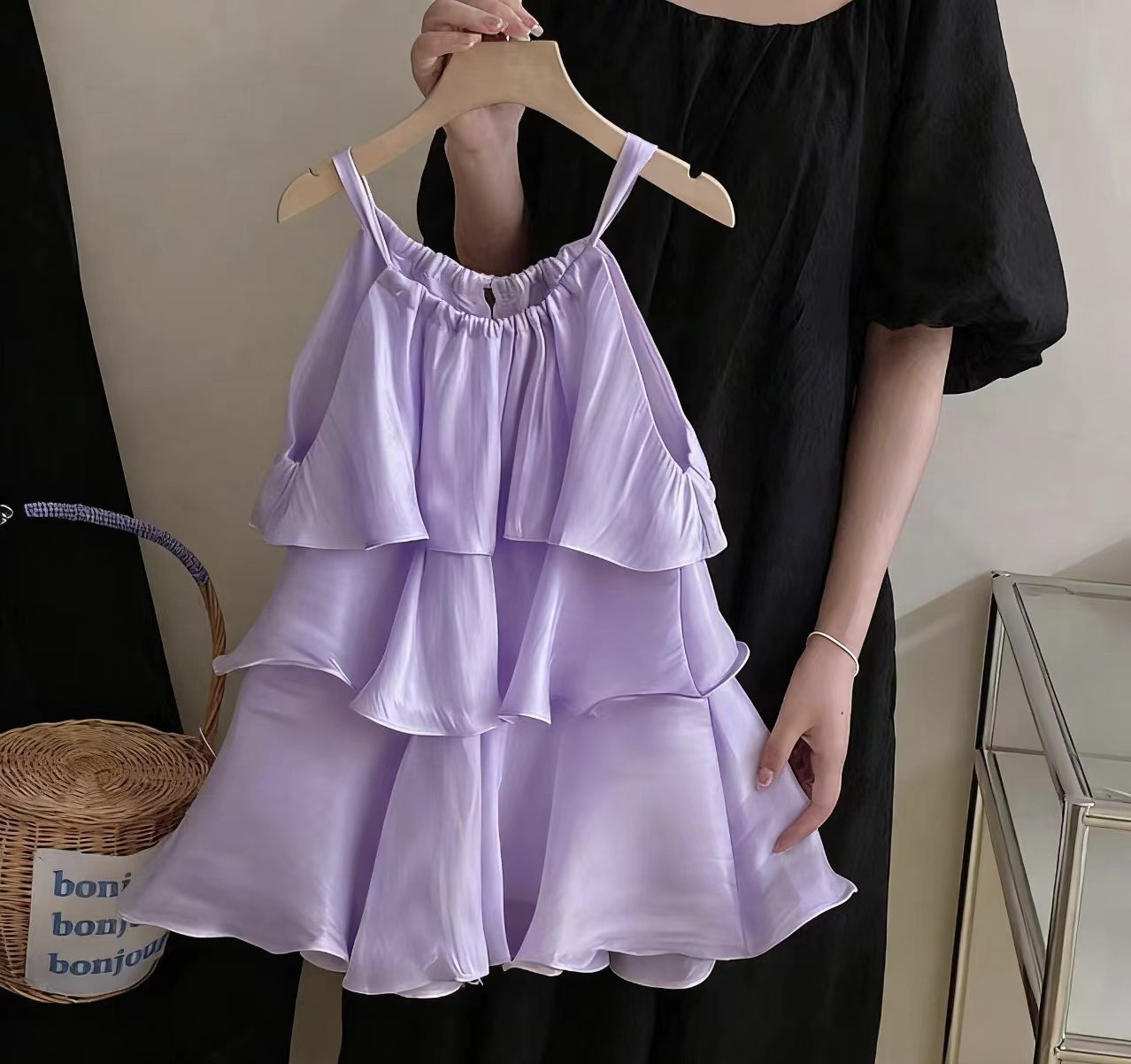소녀 서양식 원피스 2024 여름 고급 어린이 서스펜더 스커트 홀리데이 스타일 달콤한 기질 케이크 스커트 패션스토어 가기