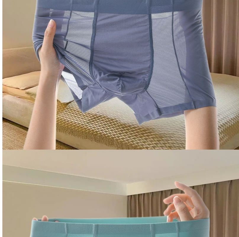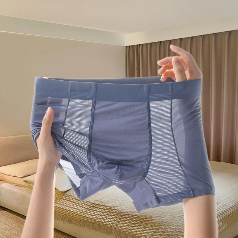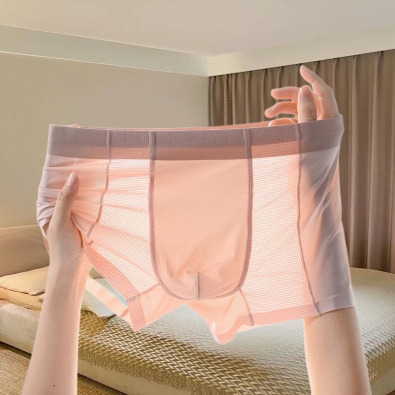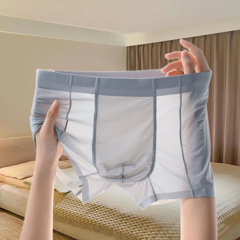 레이스 남성 속옷 아이스 실크 원활한 투명 복서 2023 새로운 남성 섹시한 복서 여름 바지스토어 가기