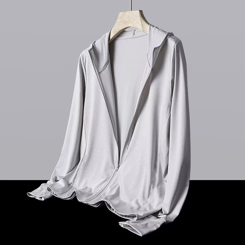 한국식 캐주얼 디자인 후드 스킨 코트 남성과 여성 지퍼 단색 스포츠 패션 도시 코트 태양 보호 의류