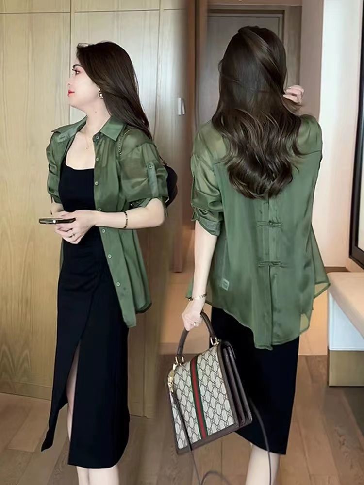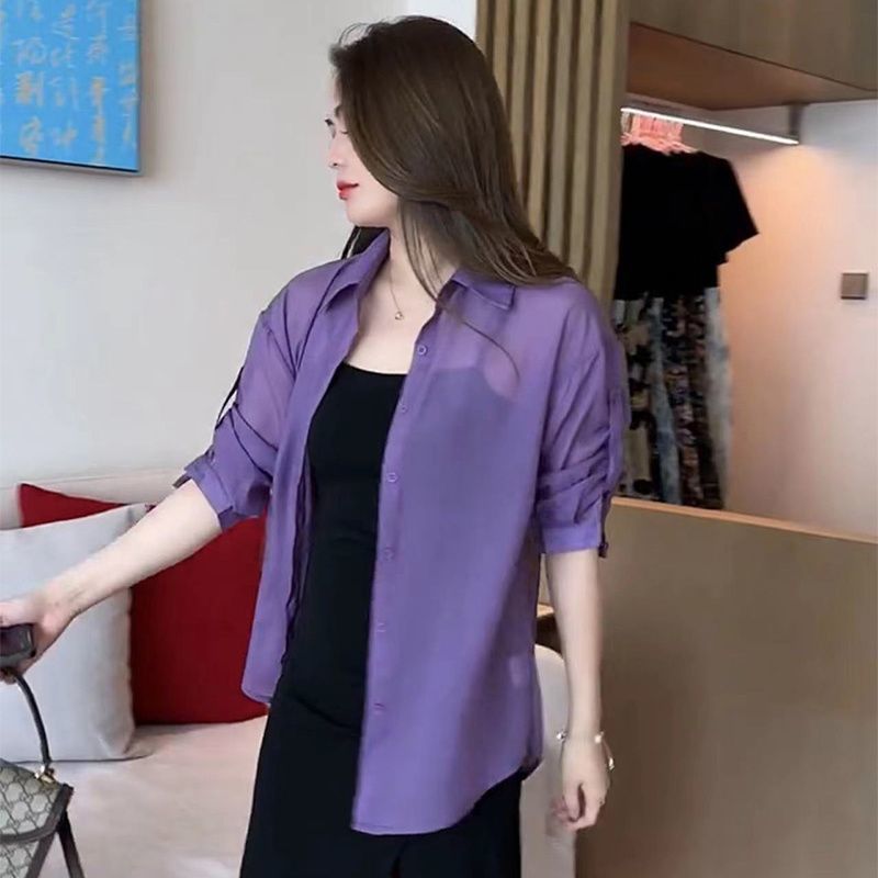 여름 틈새 디자인 감각 플러스 사이즈 태양 보호 셔츠 여성의 여름 얇은 코트 셔츠 2024 새로운 쉬폰 탑스토어 가기