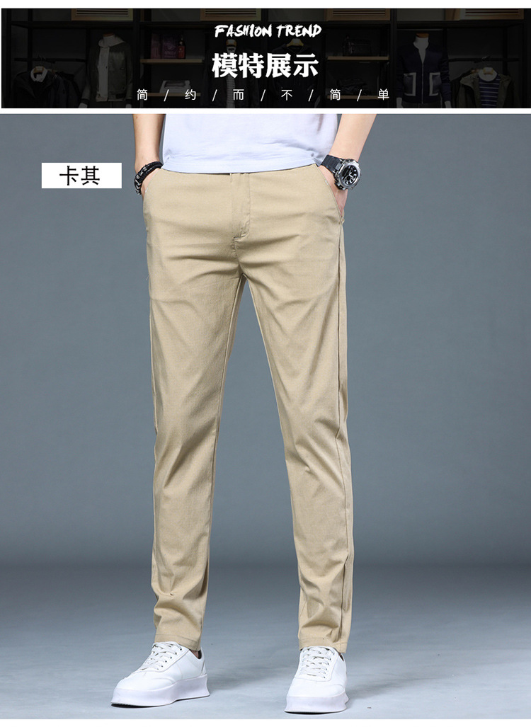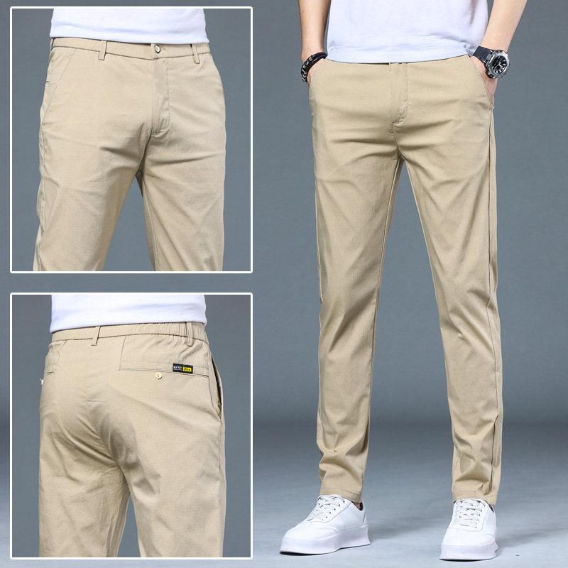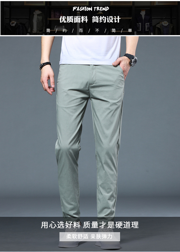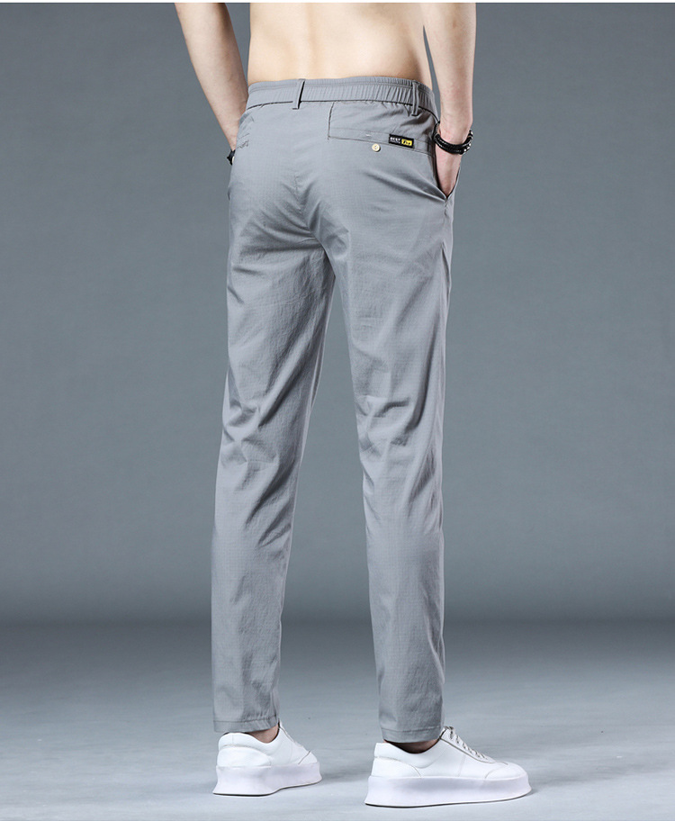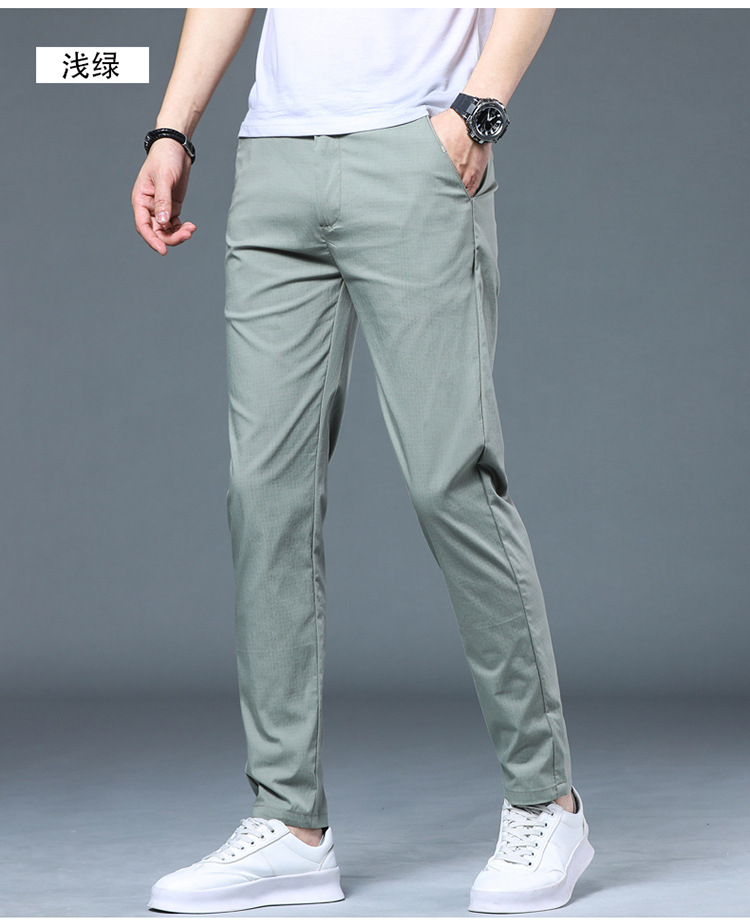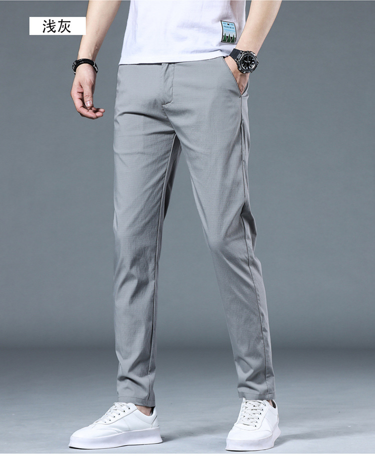 봄 가을 신상 남성 캐주얼 팬츠 슬림핏 스트레이트 통기성 신축성 아이스 실크 만능 트렌디 남성 바지 도매 시원한 착용감스토어 가기