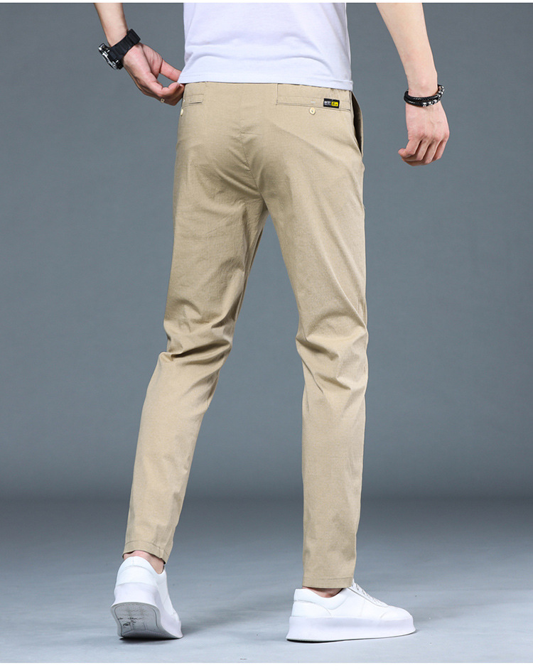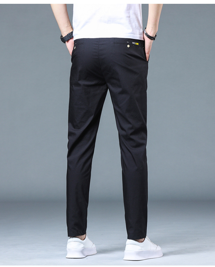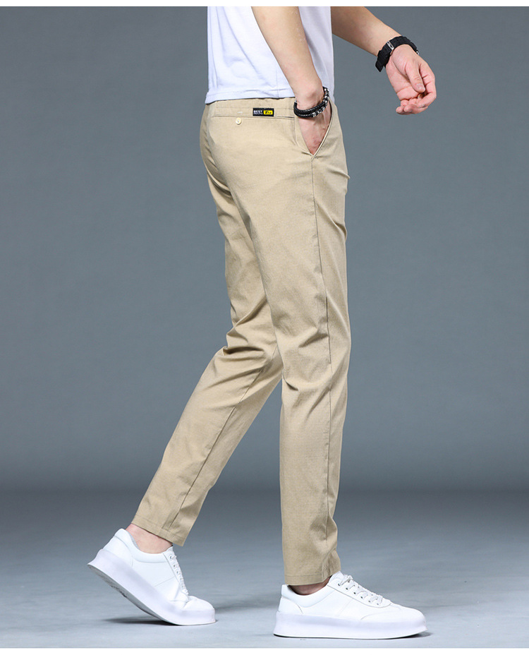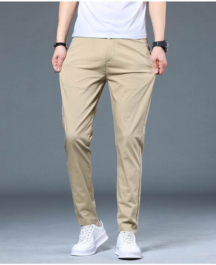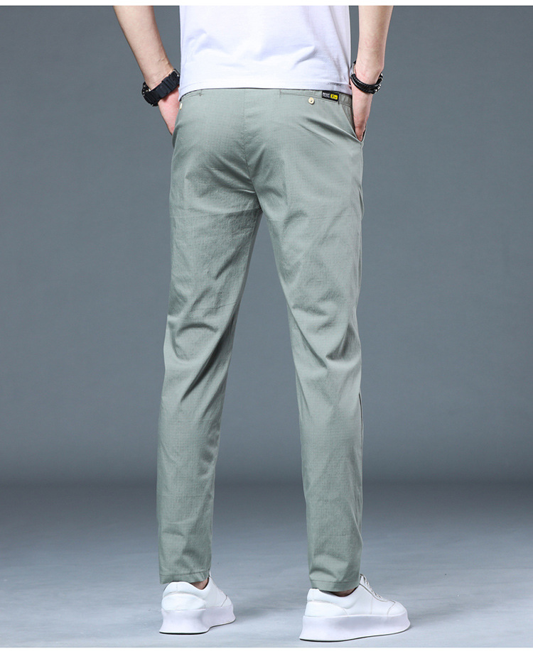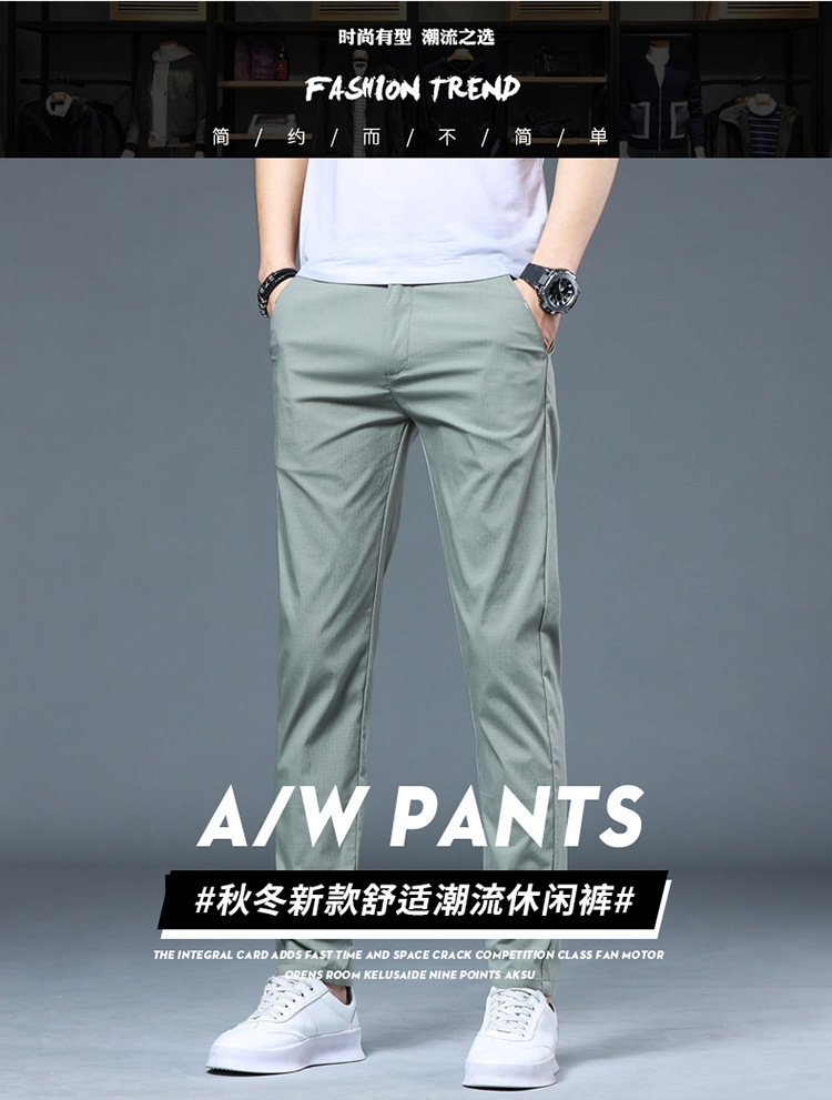 봄 가을 신상 남성 캐주얼 팬츠 슬림핏 스트레이트 통기성 신축성 아이스 실크 만능 트렌디 남성 바지 도매 시원한 착용감스토어 가기