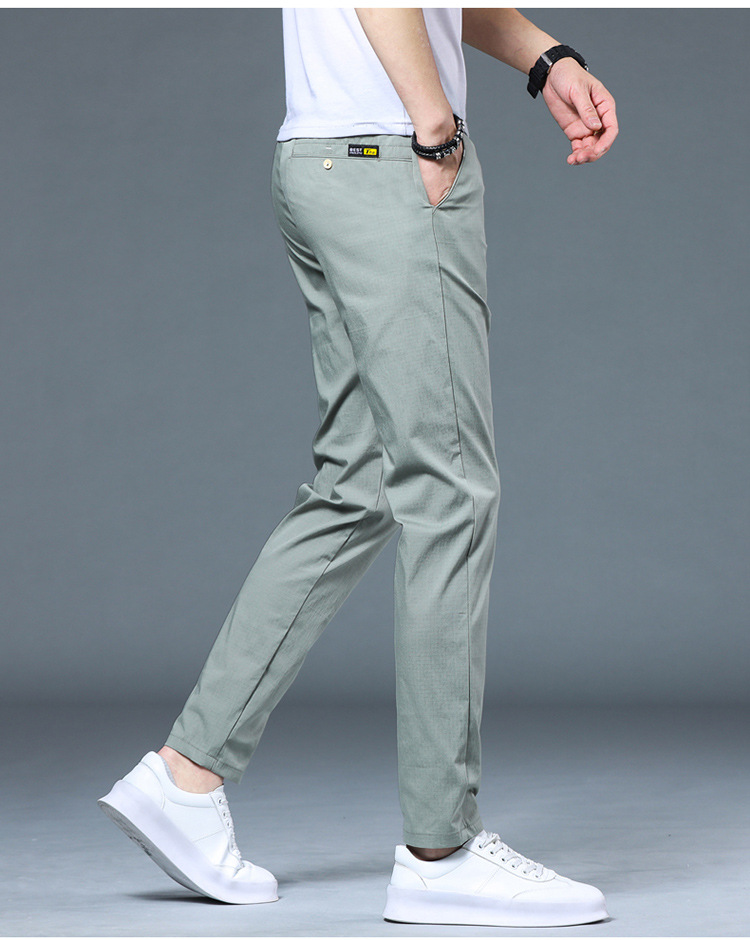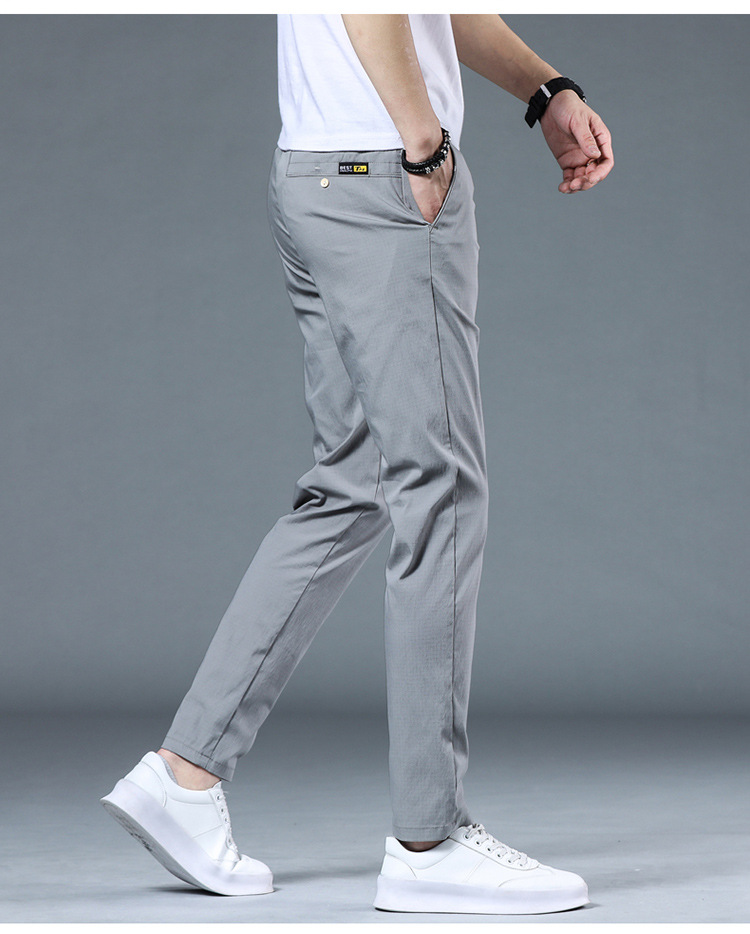 봄 가을 신상 남성 캐주얼 팬츠 슬림핏 스트레이트 통기성 신축성 아이스 실크 만능 트렌디 남성 바지 도매 시원한 착용감