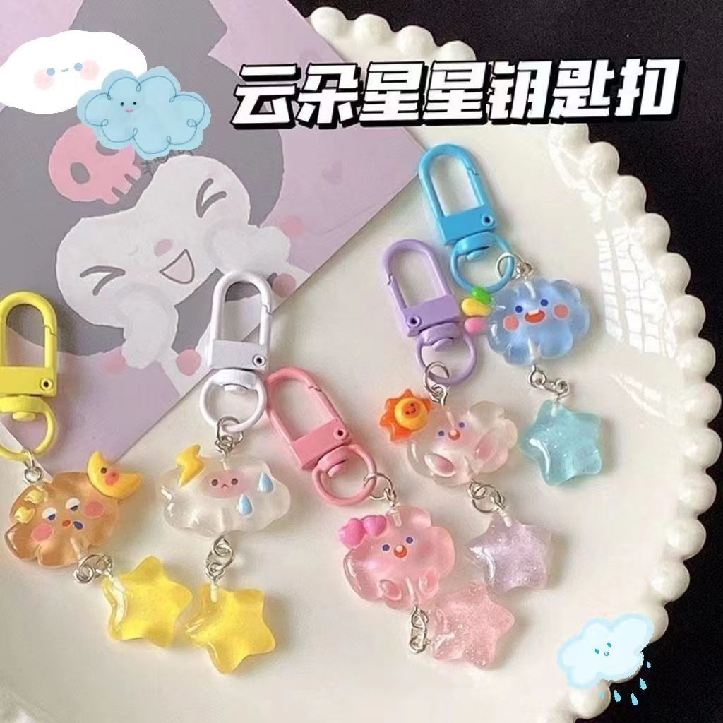 만화 소녀 학생 여자 친구 책가방 장식품에 빛나는 구름 키 체인 장식 별 고급 플래시스토어 가기