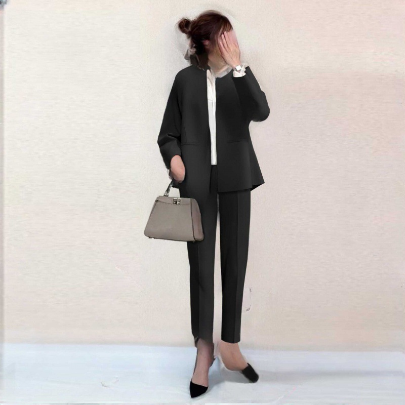 재고 있음, 좋은 품질, 2026 일본 스타일 캐주얼 작업복, 비즈니스 정장, 라운드넥 가디건, 투피스 수트 재킷