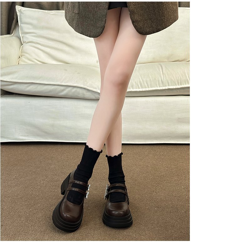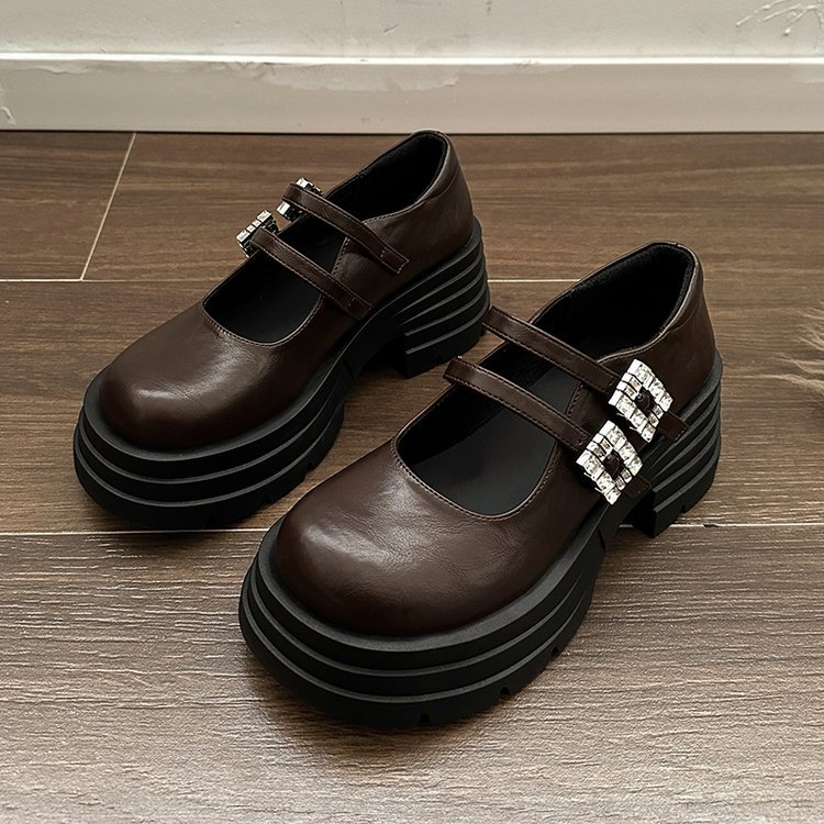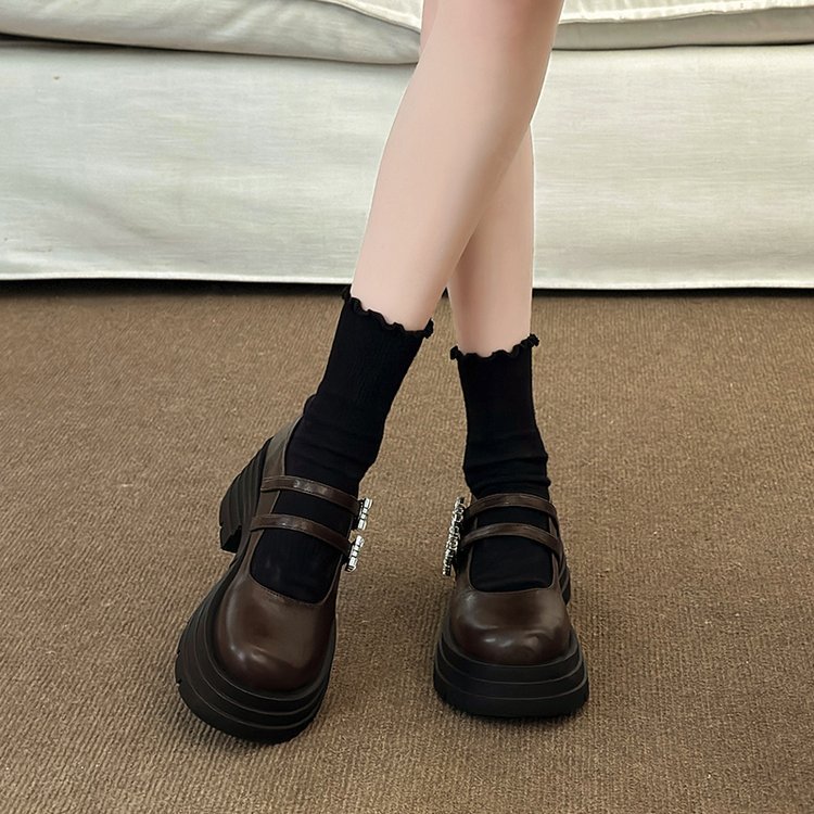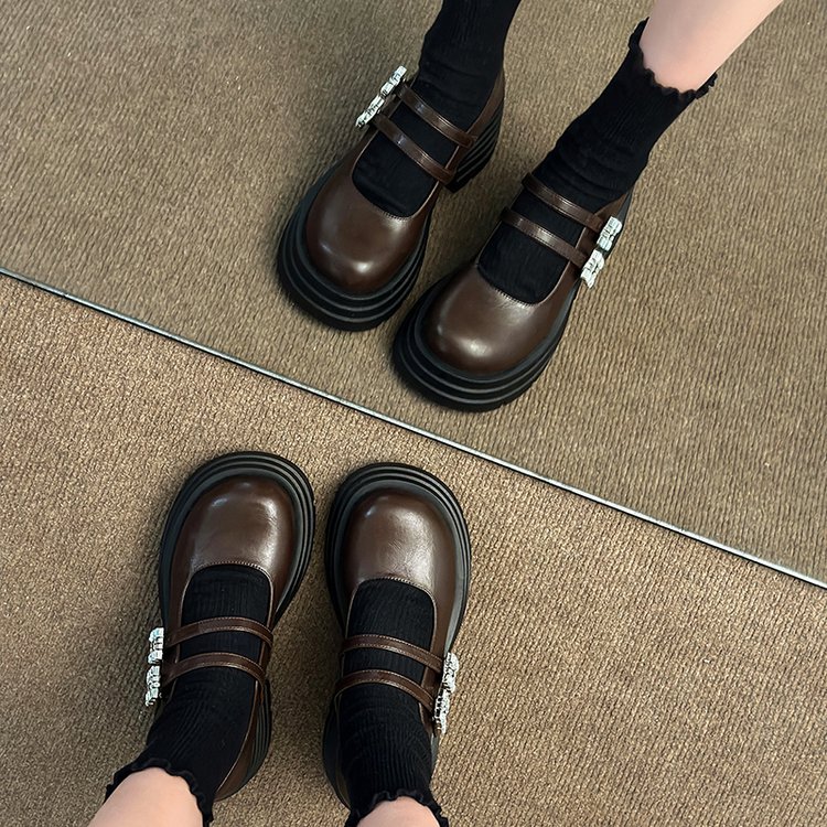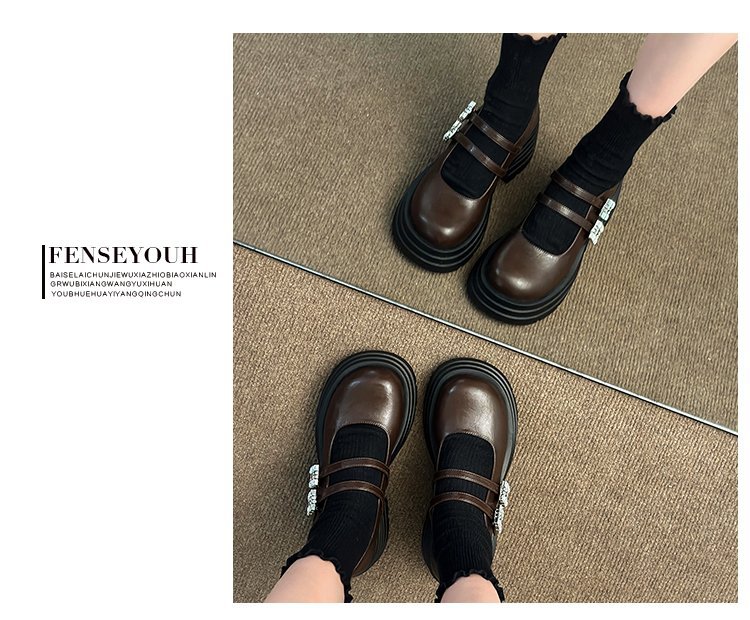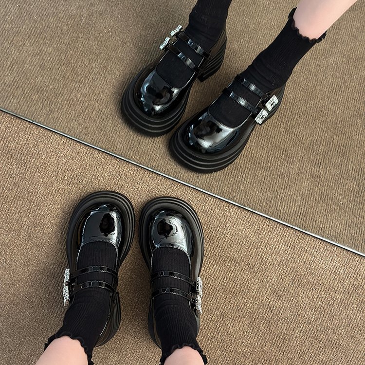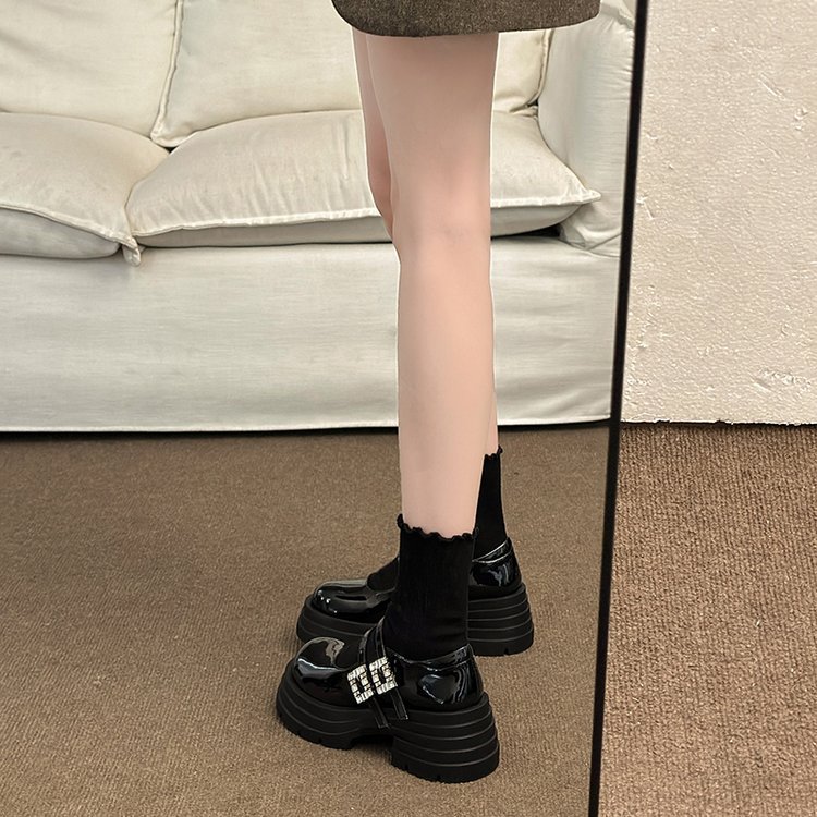 높이가 7cm, 2024 봄과 가을의 새로운 스타일, 작은 두꺼운 밑창 Mary Jane 로퍼