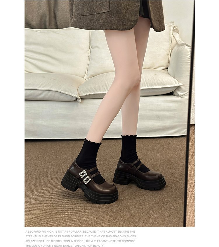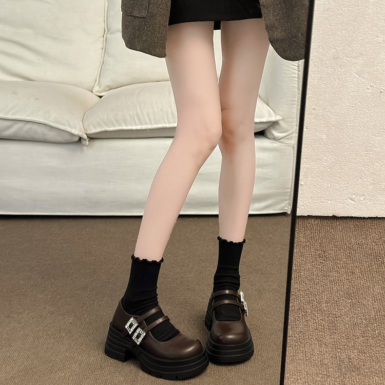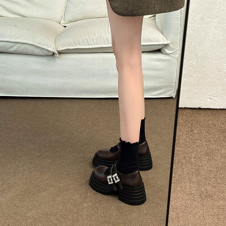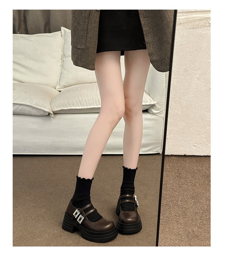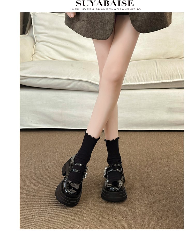 높이가 7cm, 2024 봄과 가을의 새로운 스타일, 작은 두꺼운 밑창 Mary Jane 로퍼스토어 가기