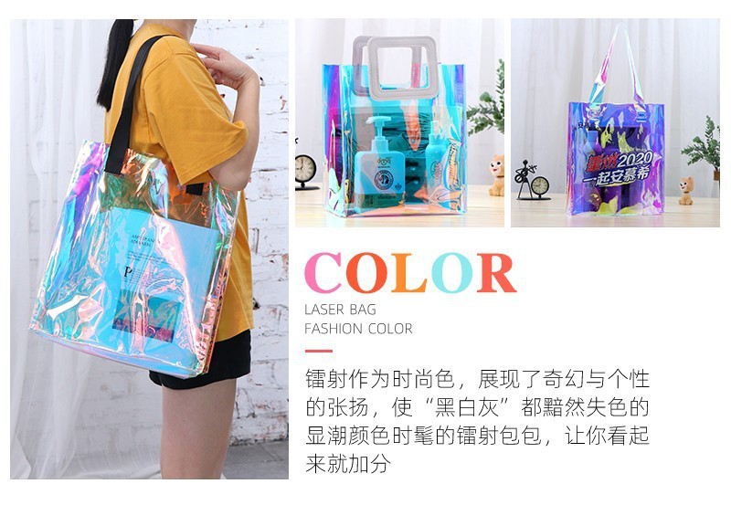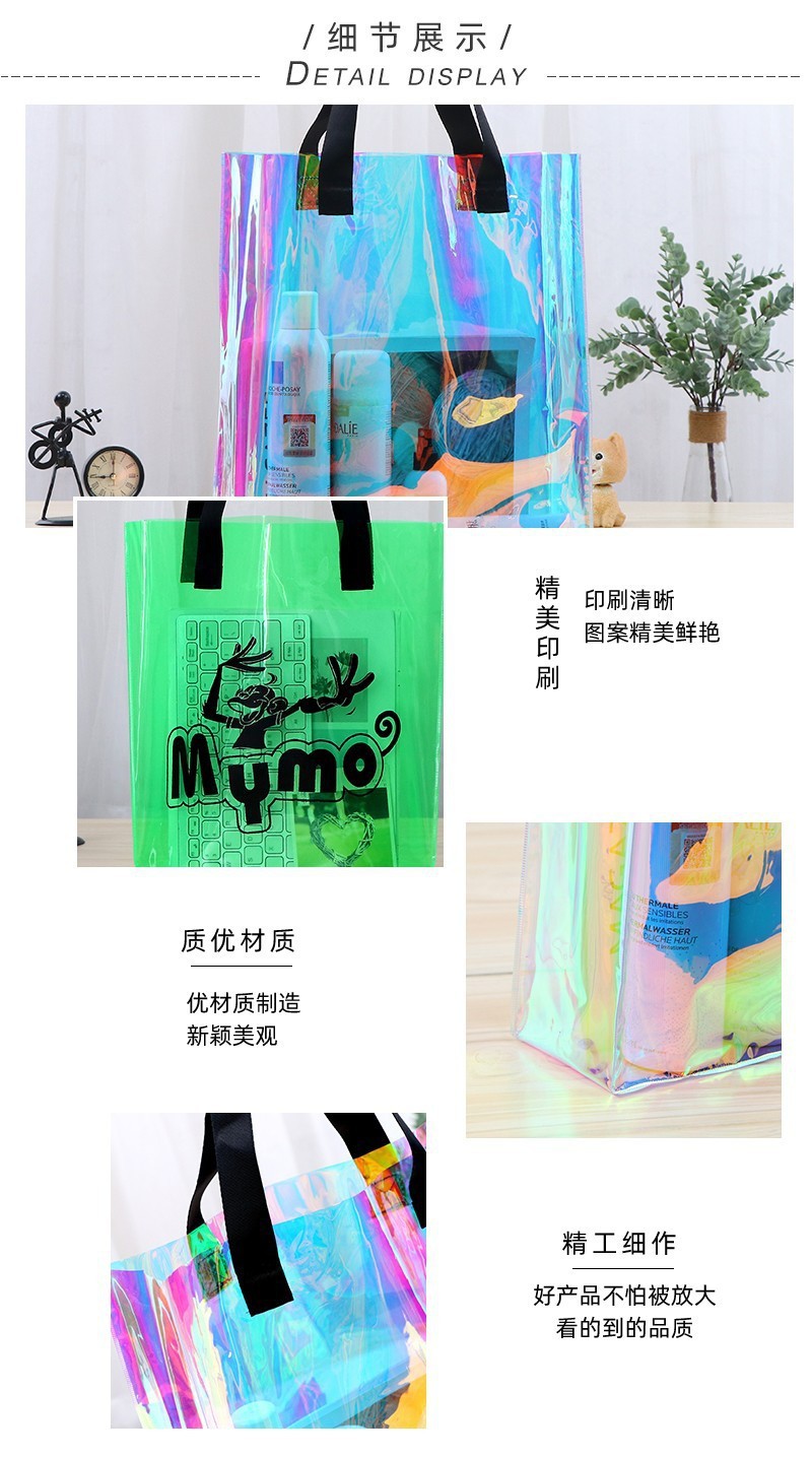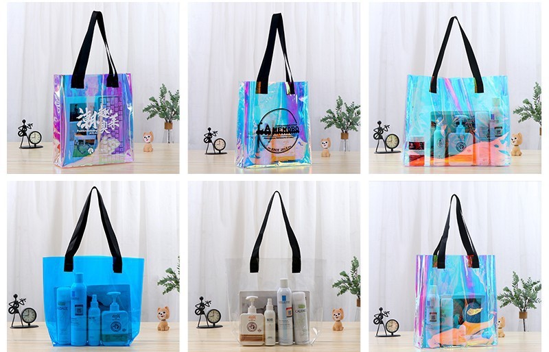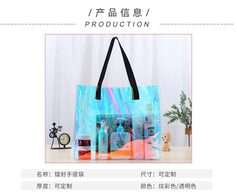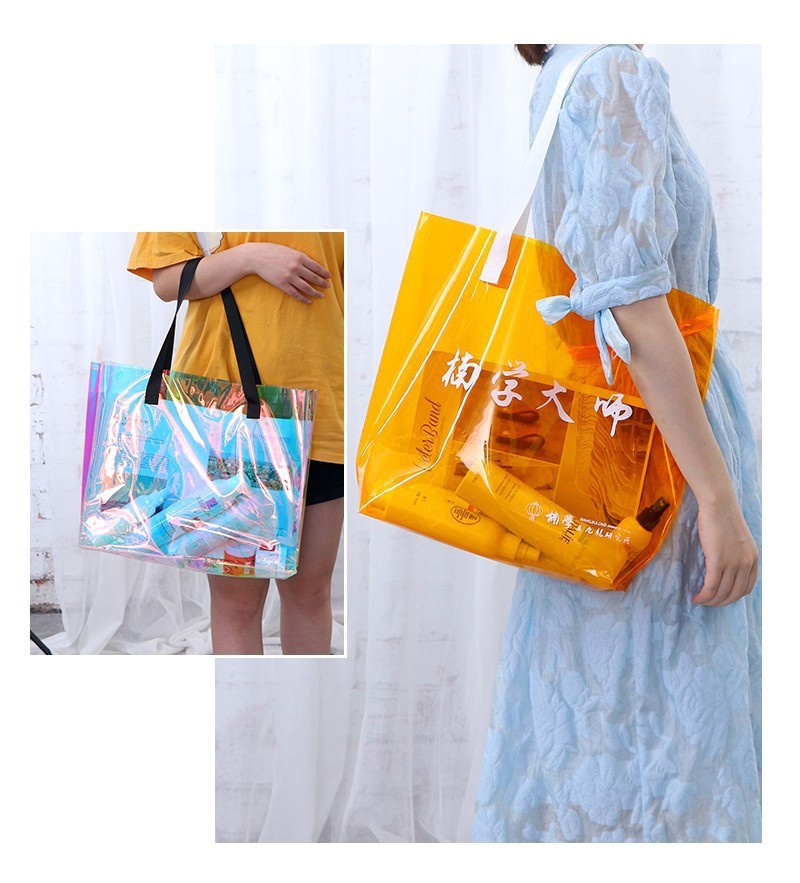 레이저 다채로운 선물 플라스틱 쇼핑 PVC 핸드백 선물 젤리 투명 손을 들고 의류 광고 가방