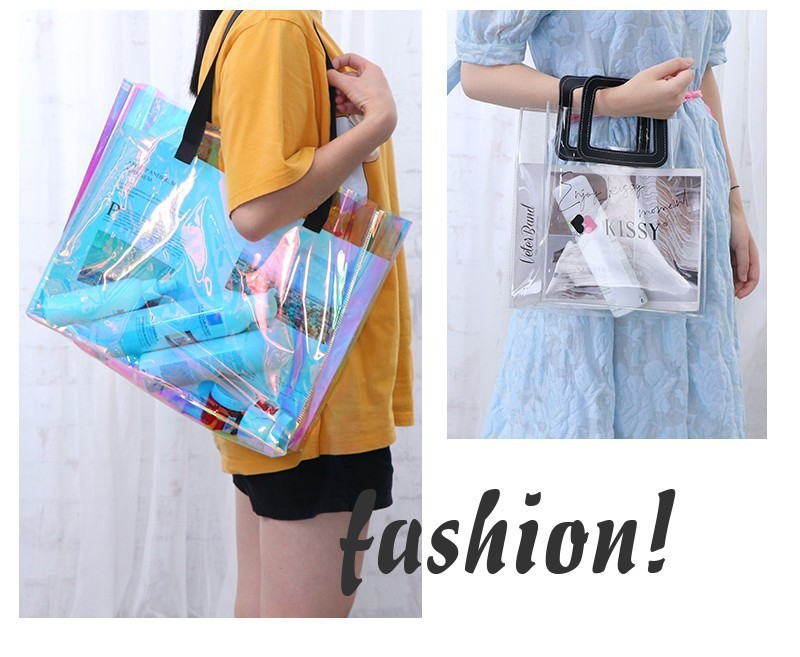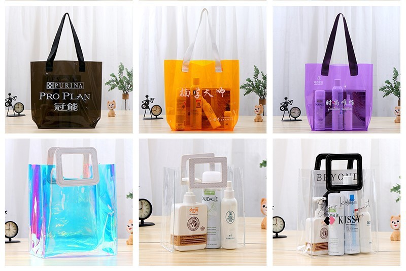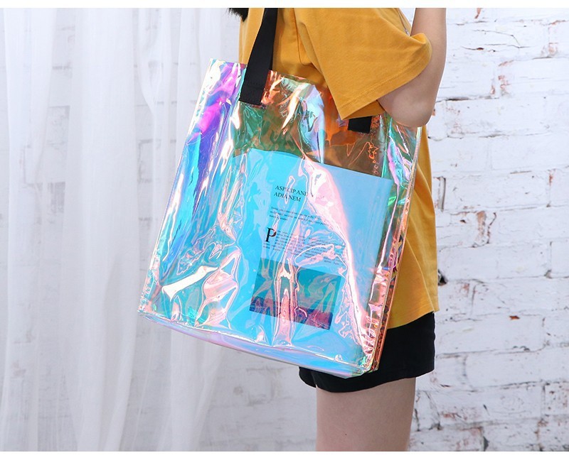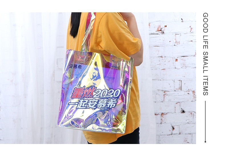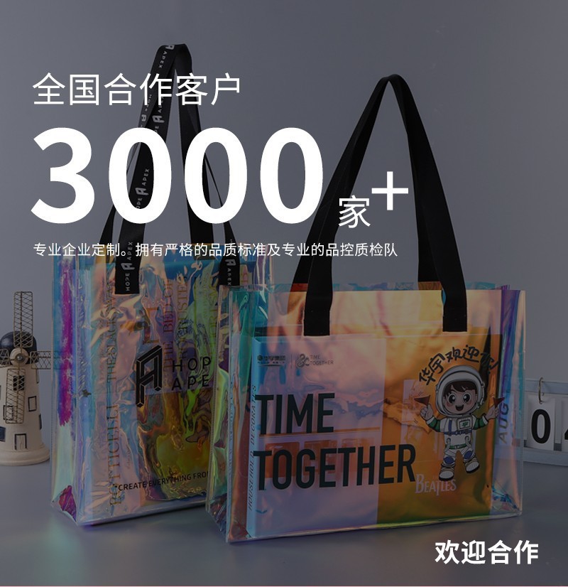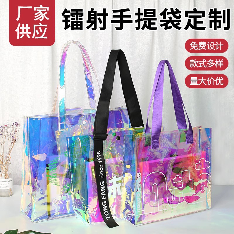 레이저 다채로운 선물 플라스틱 쇼핑 PVC 핸드백 선물 젤리 투명 손을 들고 의류 광고 가방