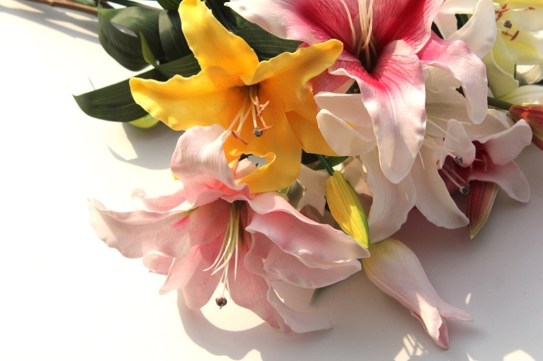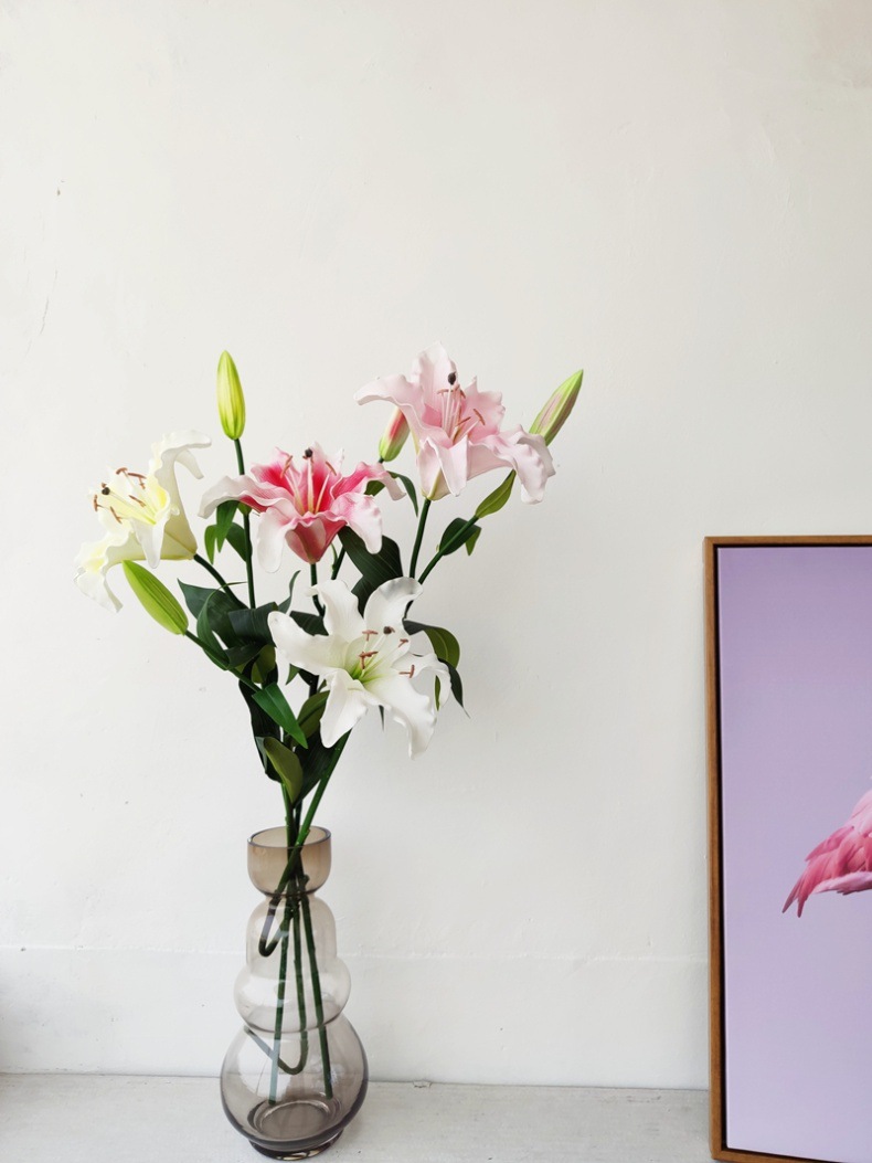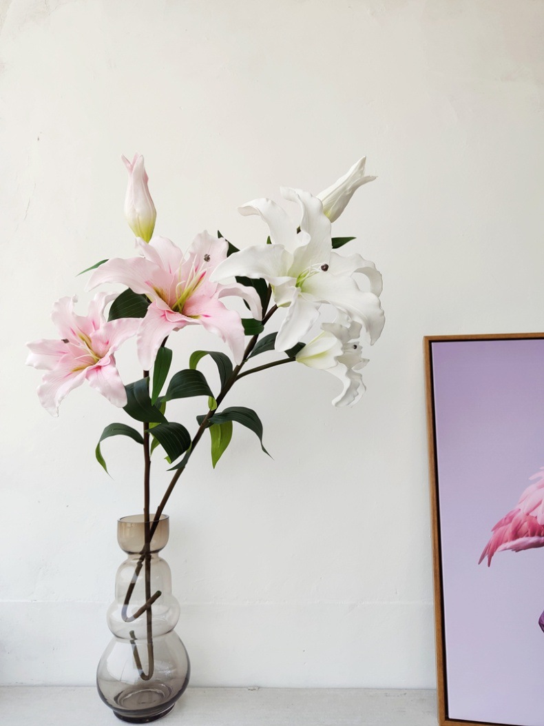 인공 백합 꽃다발 PU 보습 느낌 집 거실 TV 옆에 인공 꽃 냄비 장식 장식품스토어 가기
