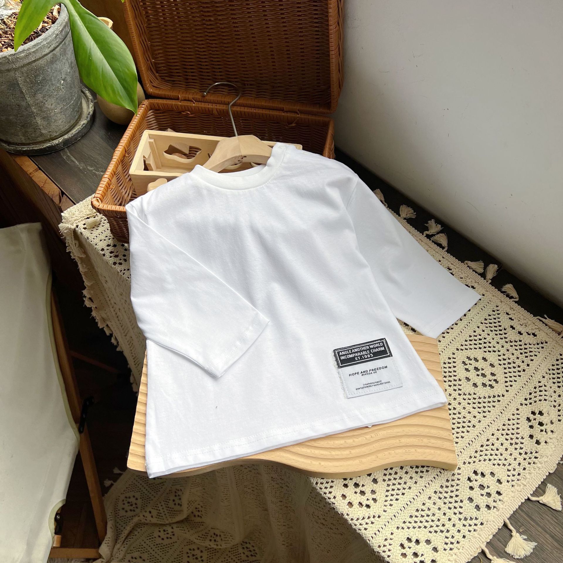 어린이 긴팔 티셔츠 2024 봄 새 어린이 흰색 바닥 셔츠 어린이 티셔츠 봄 올 매치스토어 가기