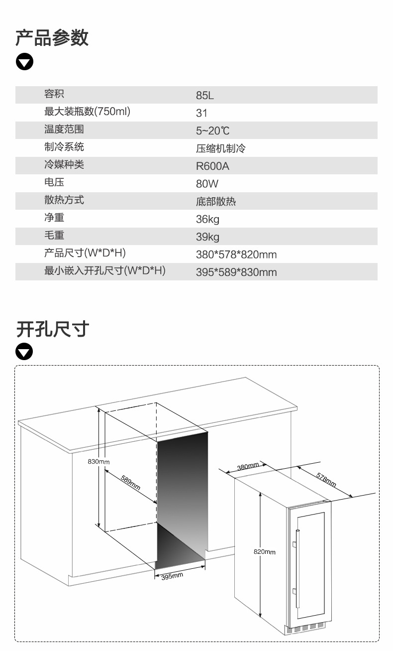 • 언더카운터 내장 80L 블랙 모델 폭 450mm