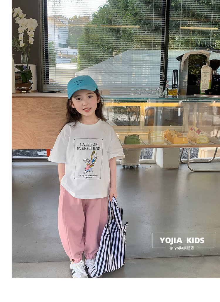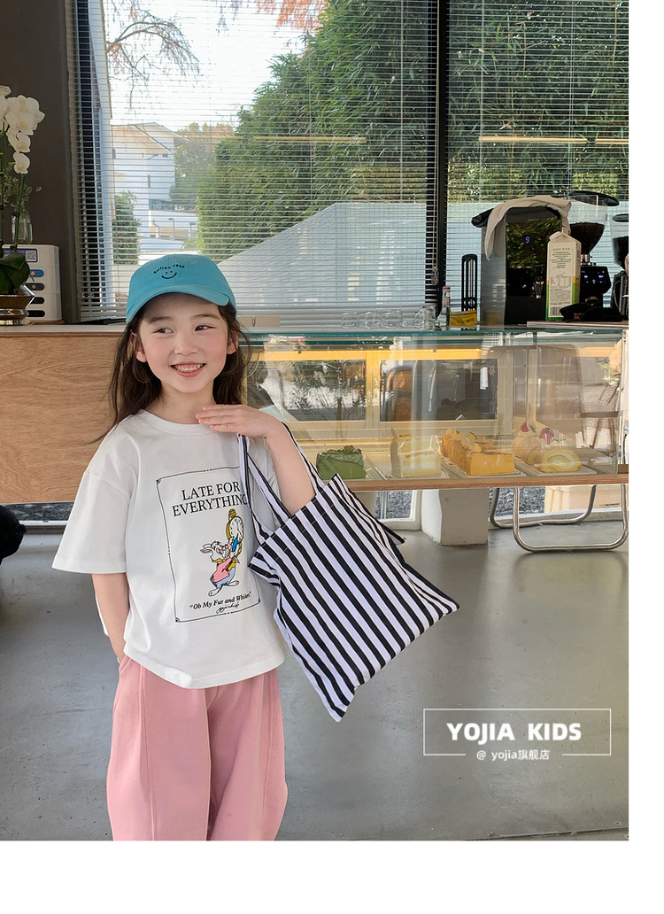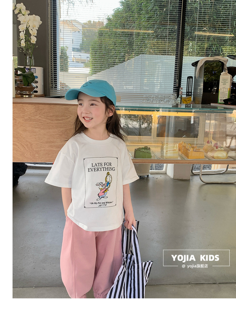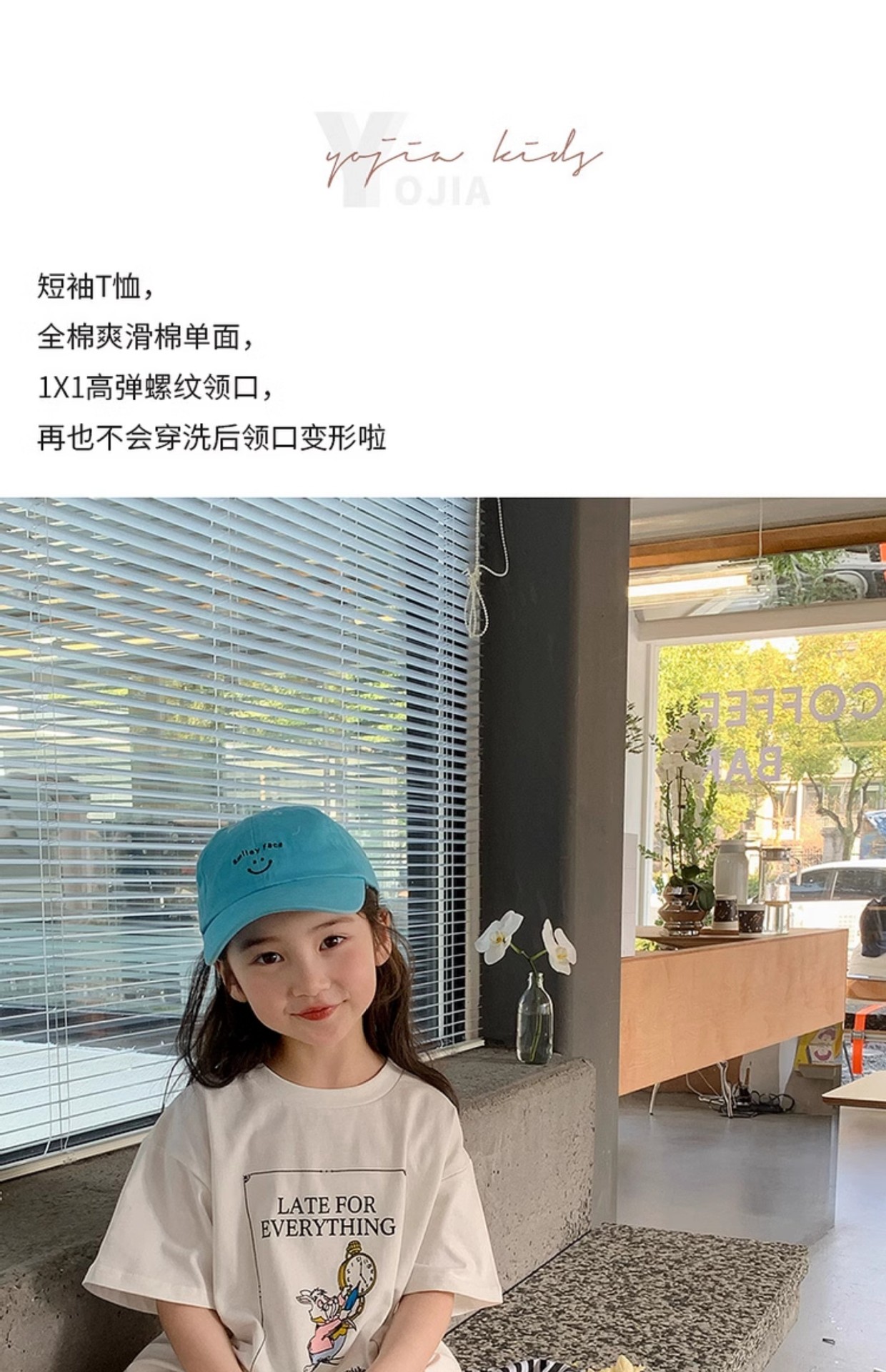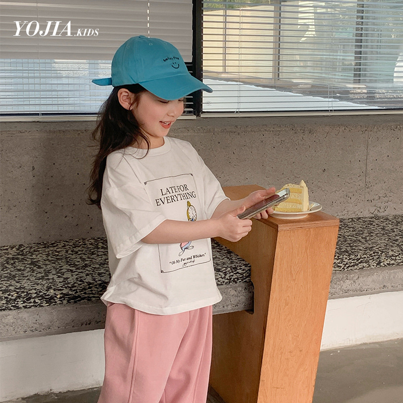 YOJIA 소녀 봄과 여름 코튼 반팔 티셔츠 2024 새로운 스타일 한국 스타일 느슨한 아동베이스 셔츠 여름 착용스토어 가기