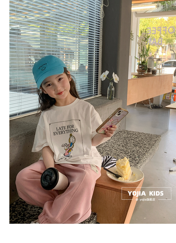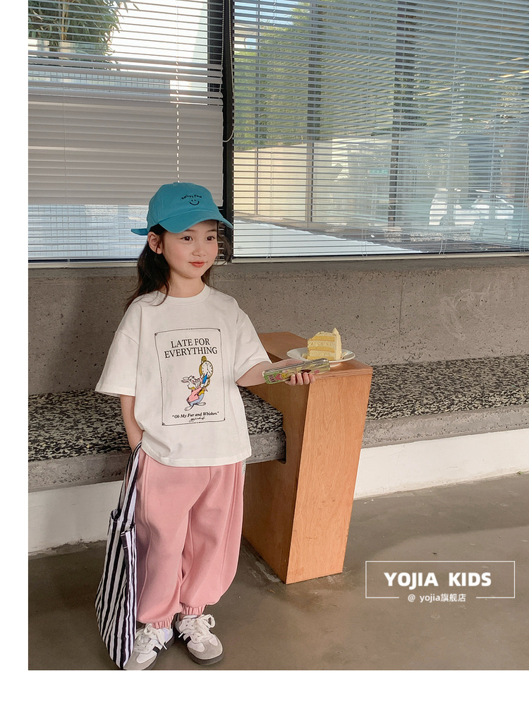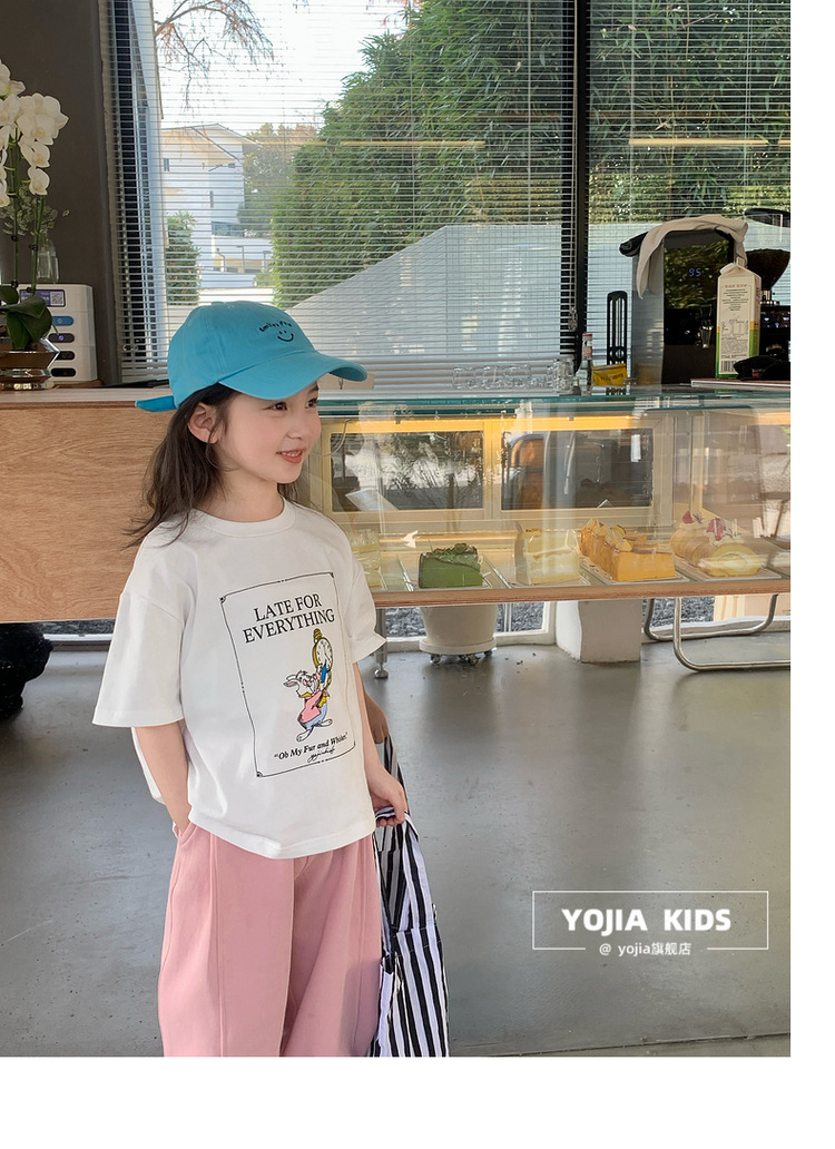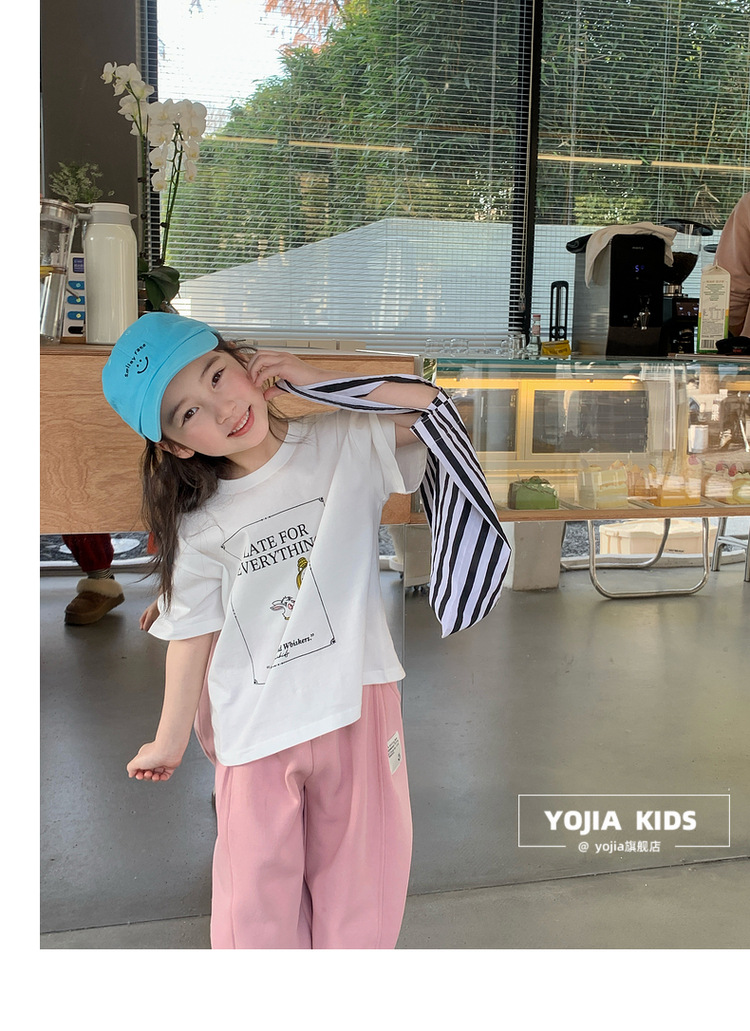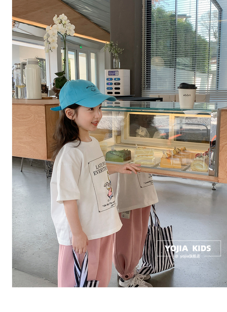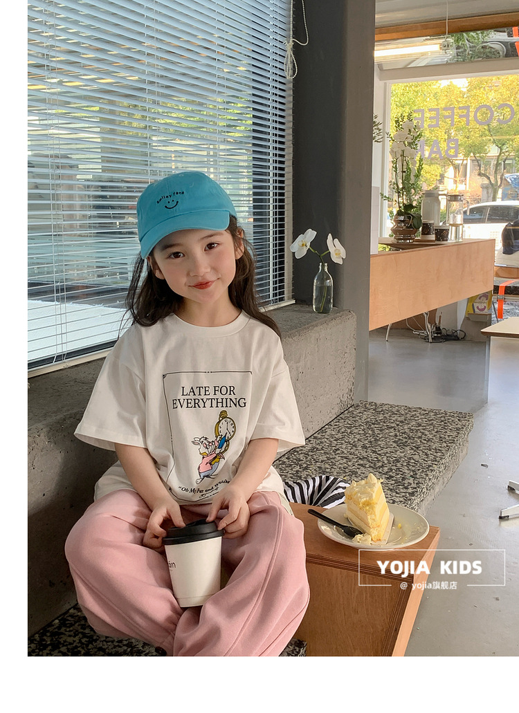 YOJIA 소녀 봄과 여름 코튼 반팔 티셔츠 2024 새로운 스타일 한국 스타일 느슨한 아동베이스 셔츠 여름 착용스토어 가기