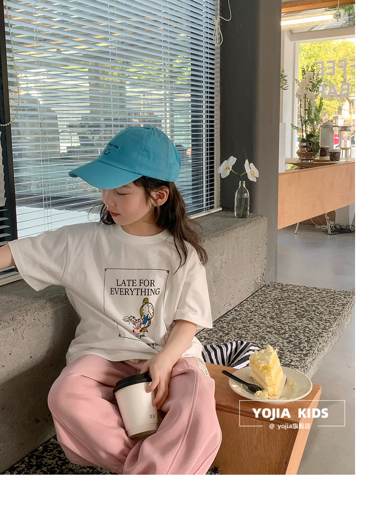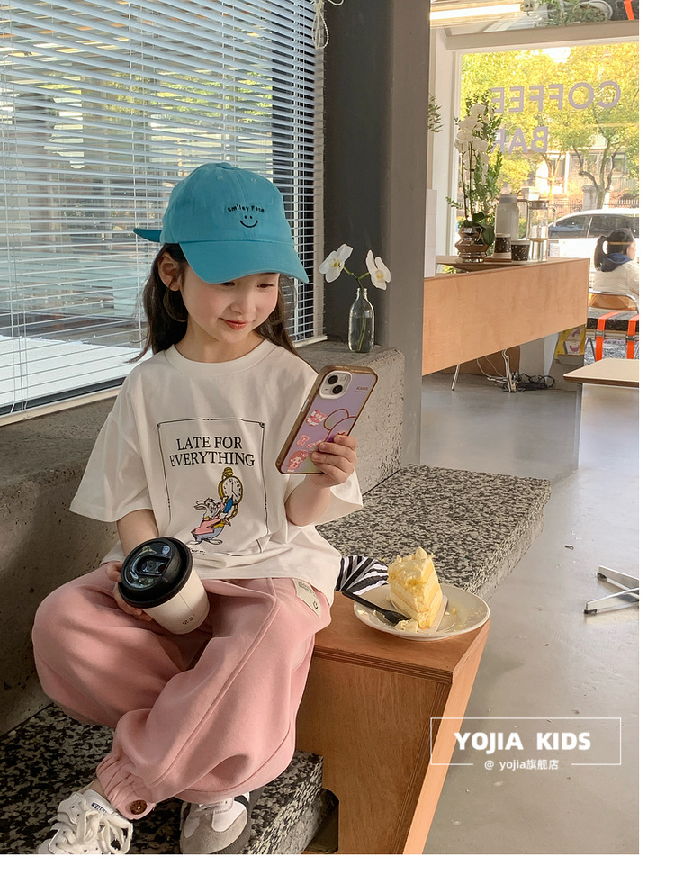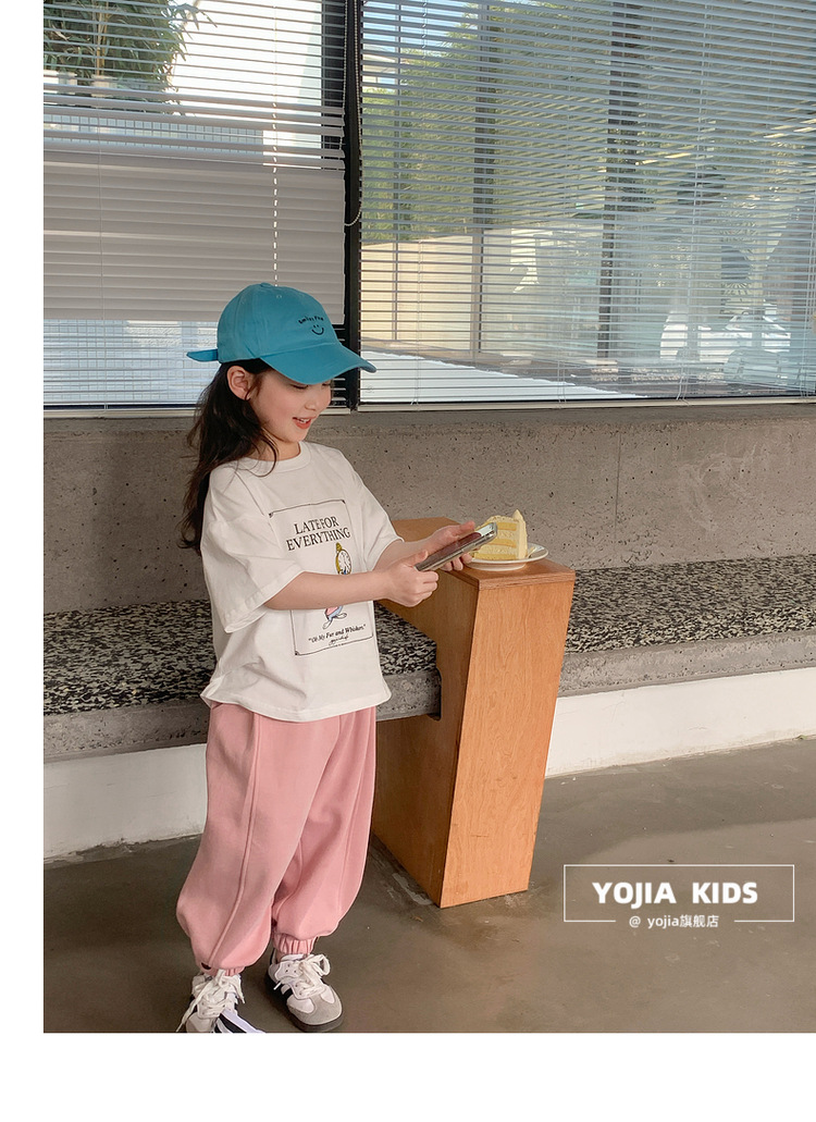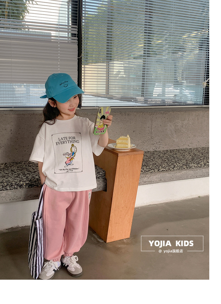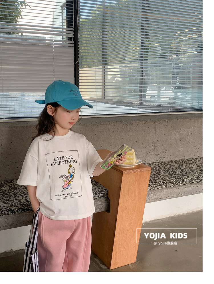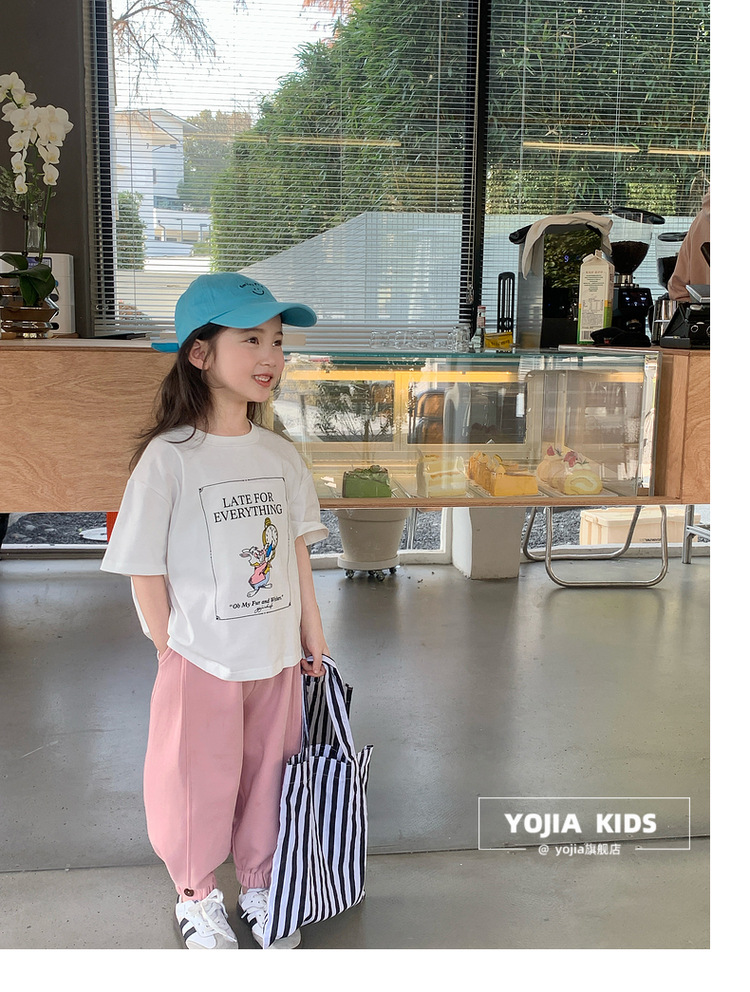 YOJIA 소녀 봄과 여름 코튼 반팔 티셔츠 2024 새로운 스타일 한국 스타일 느슨한 아동베이스 셔츠 여름 착용스토어 가기