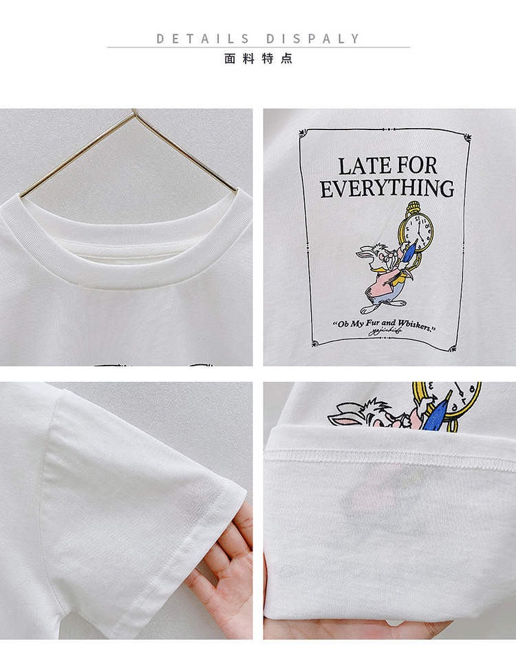 YOJIA 소녀 봄과 여름 코튼 반팔 티셔츠 2024 새로운 스타일 한국 스타일 느슨한 아동베이스 셔츠 여름 착용