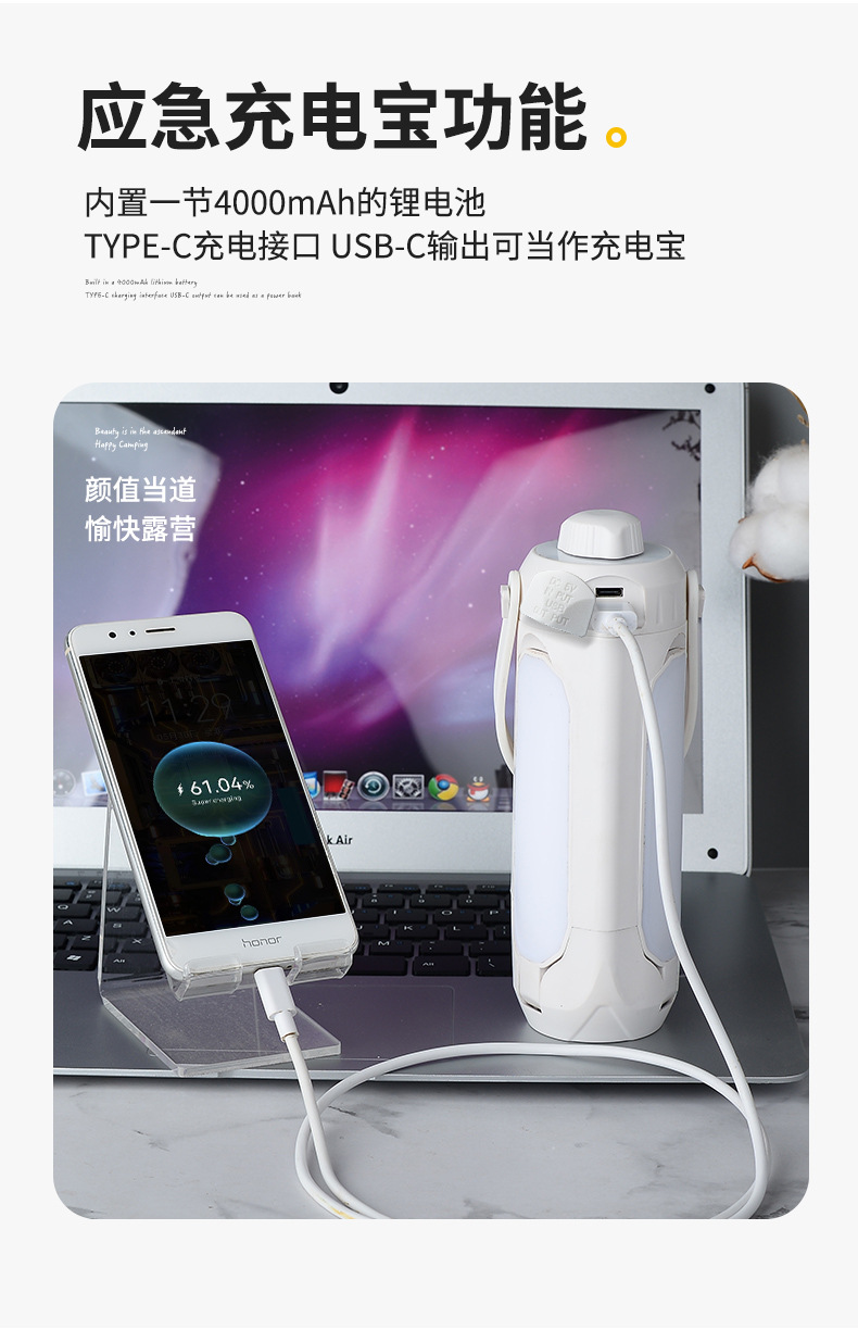국경 간 새로운 분위기 LED 캠핑 라이트 USB 충전 야외 텐트 360 도 파노라마 조명 초점 다기능스토어 가기