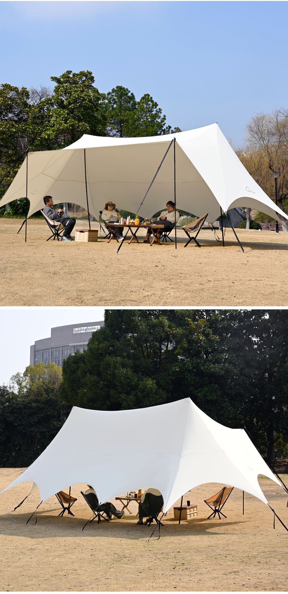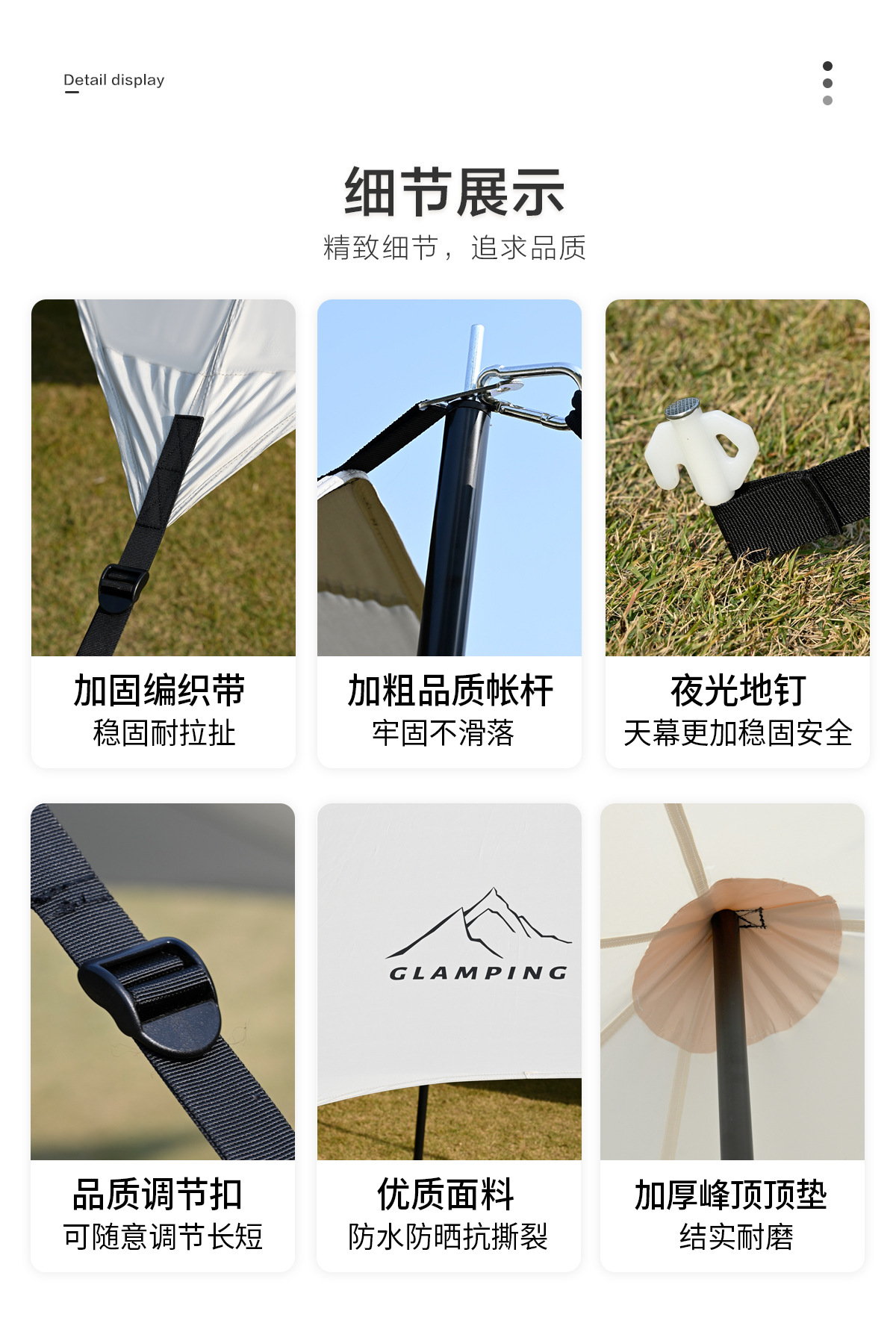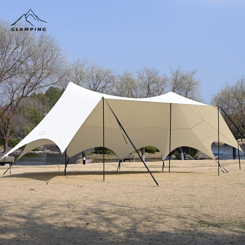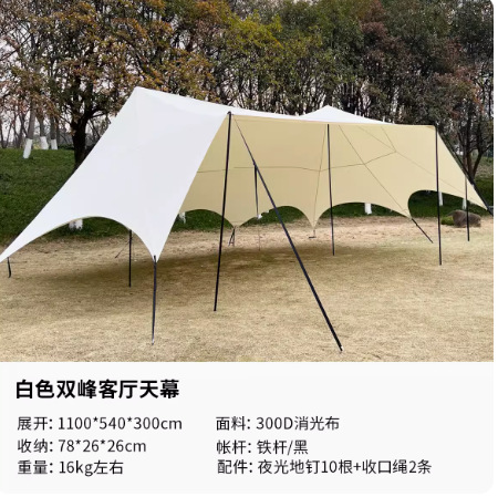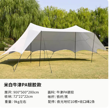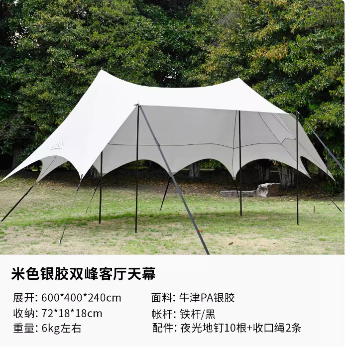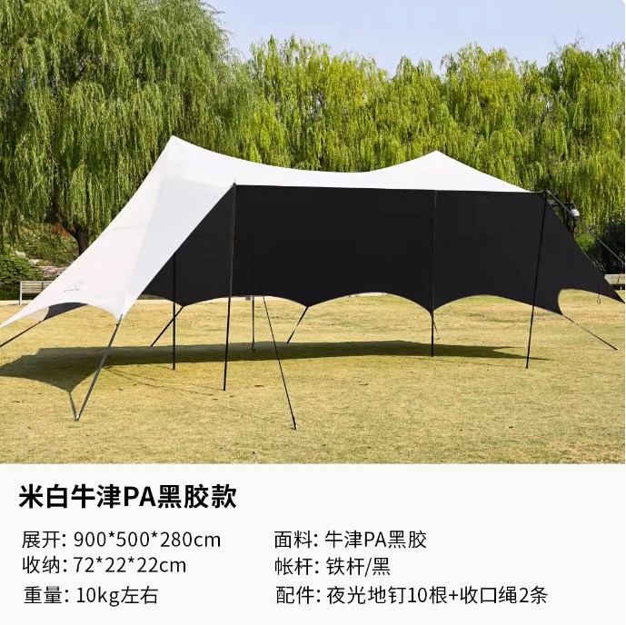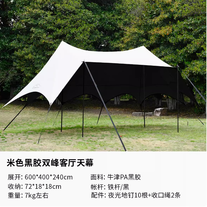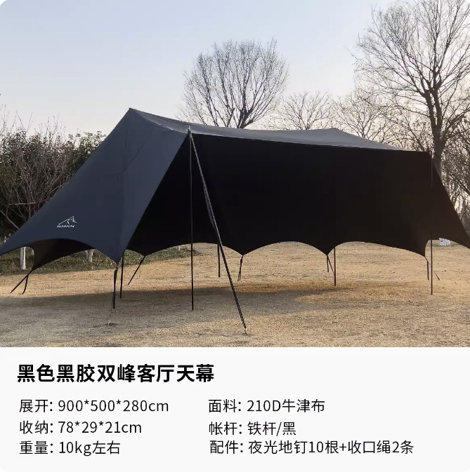 RX 야외 대형 타워 거실 더블 피크 돔 캐노피 텐트 캠프 블랙 접착제 태양 보호 캐노피 차양